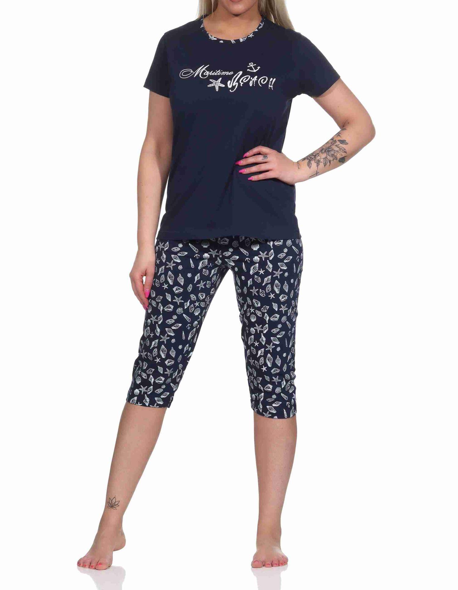 Damen Capri Schlafanzug kurzarm Pyjama im maritimen Look - 122 204 10 753