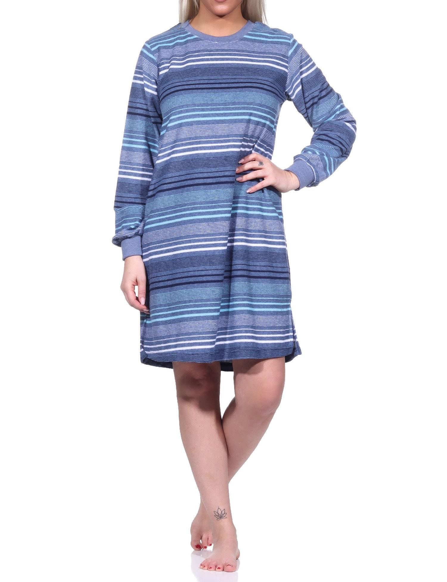Damen Frottee Nachthemd langarm mit Bündchen in Streifendesign - auch in Übergrössen
