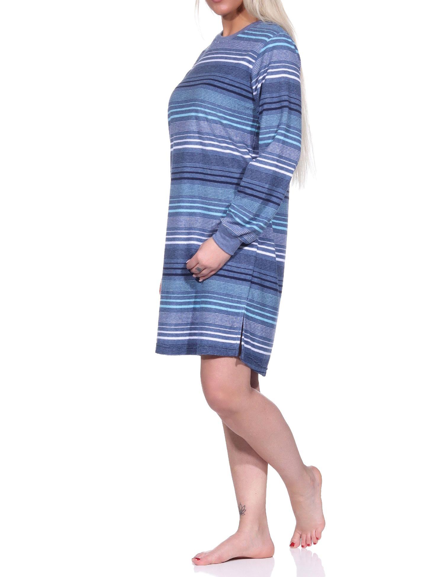 Damen Frottee Nachthemd langarm mit Bündchen in Streifendesign - auch in Übergrössen - 222 213 93 235