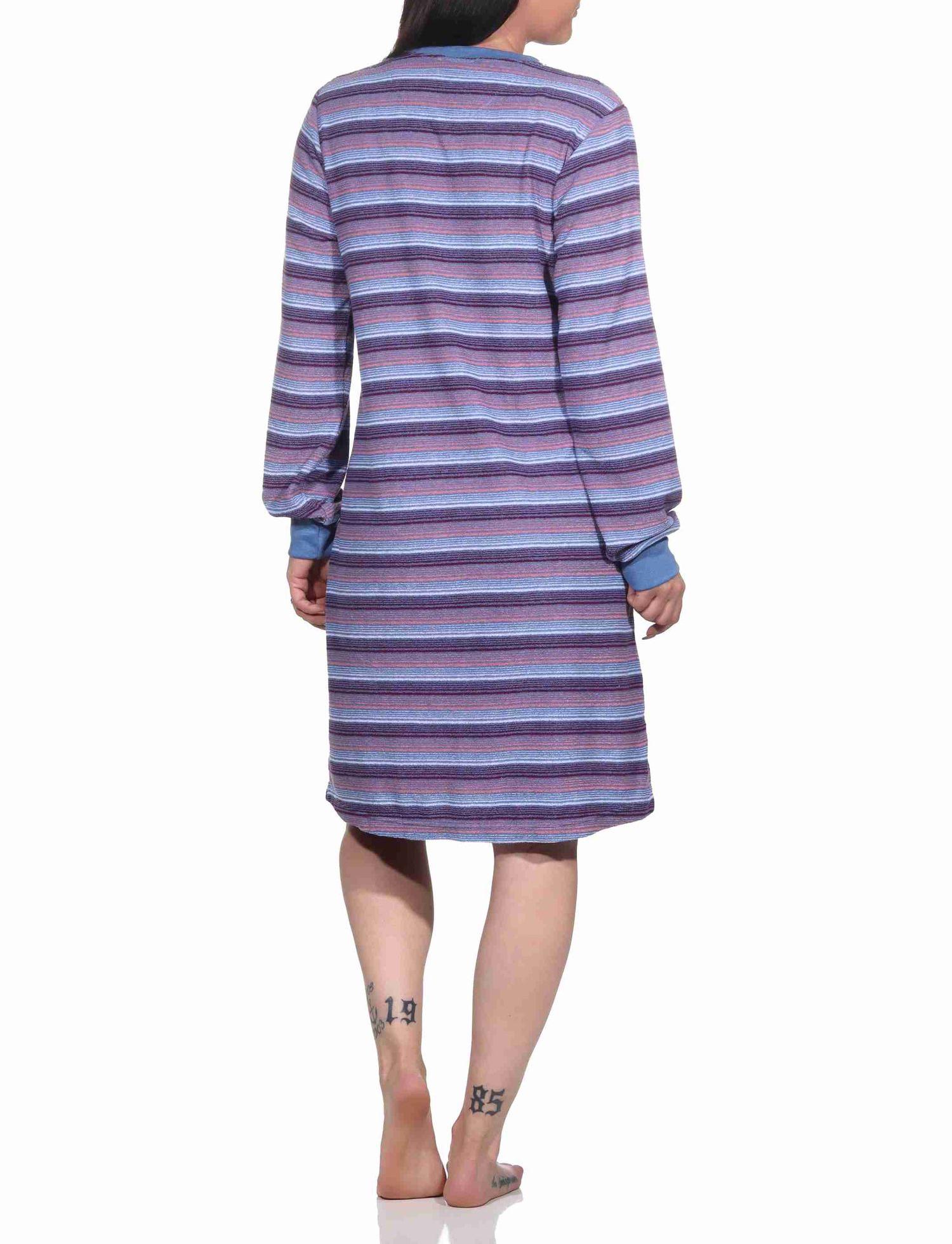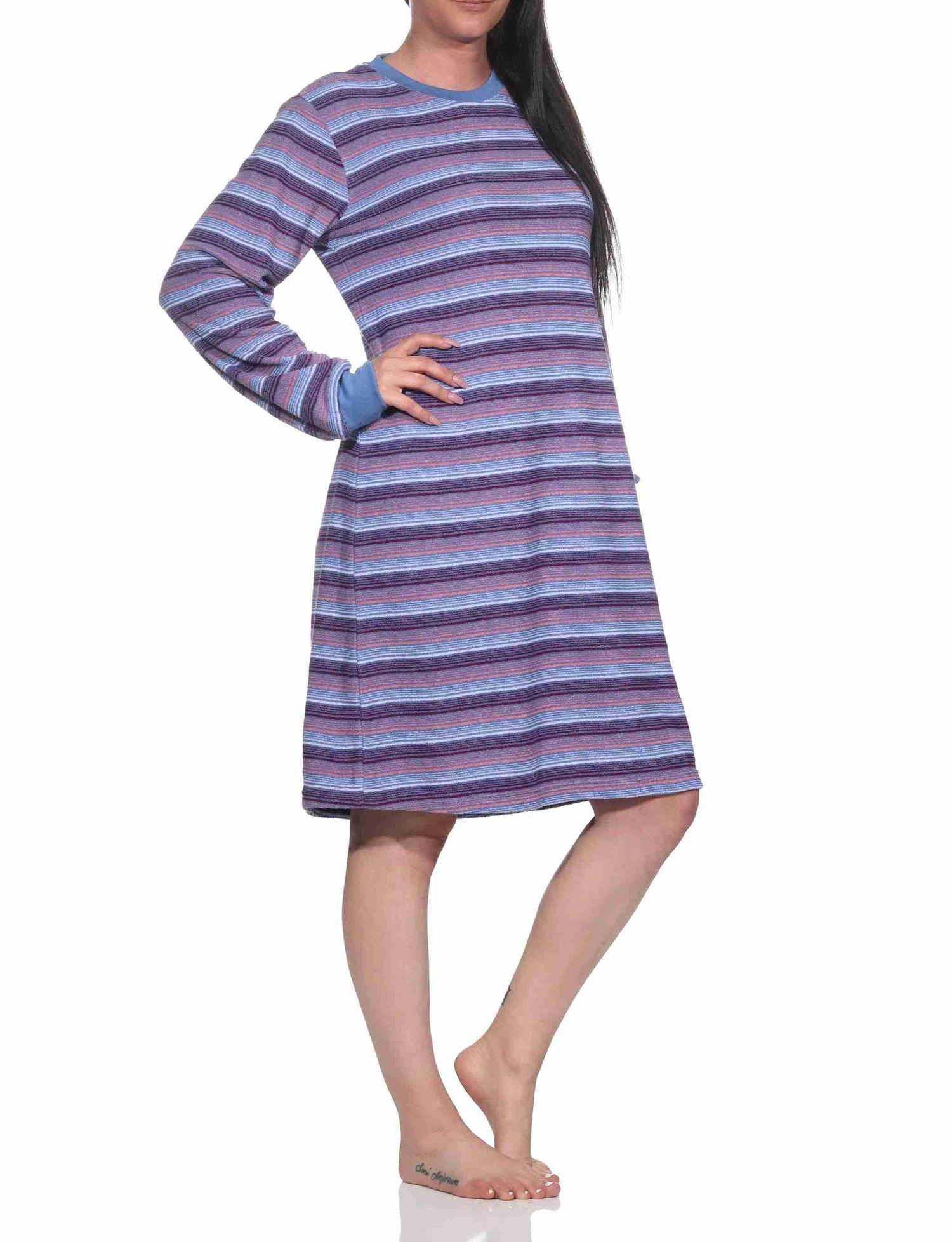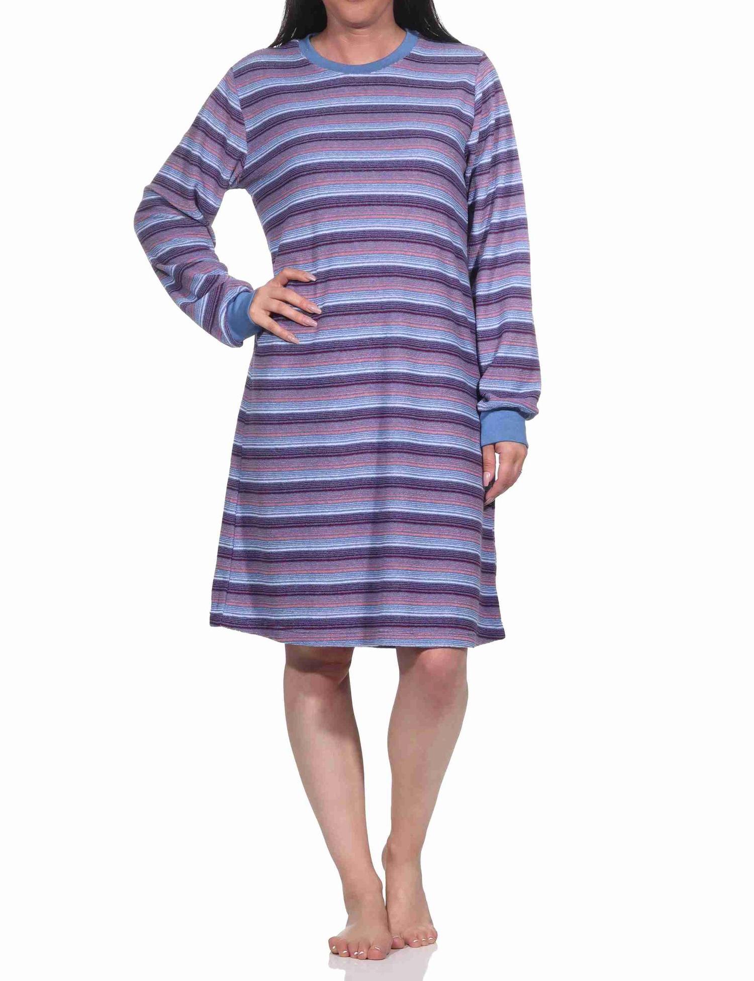 Damen Frottee Nachthemd langarm mit Bündchen in Streifendesign - auch in Übergrössen