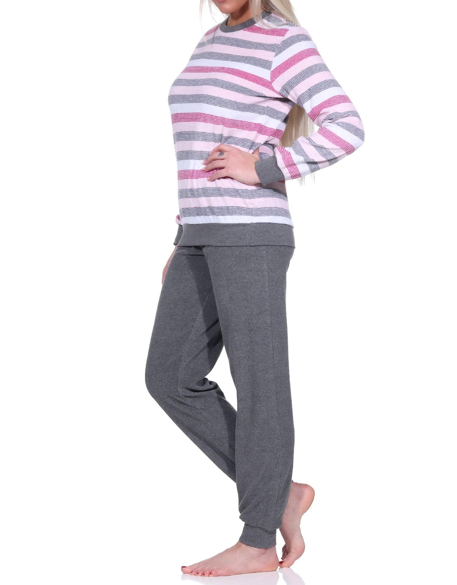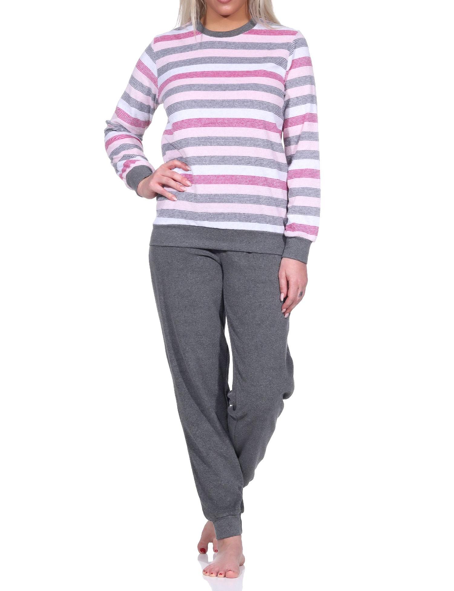 Damen Frottee Pyjama langarm mit Bündchen in Blockstreifenoptik - auch in Übergrößen - 222 201 93 102