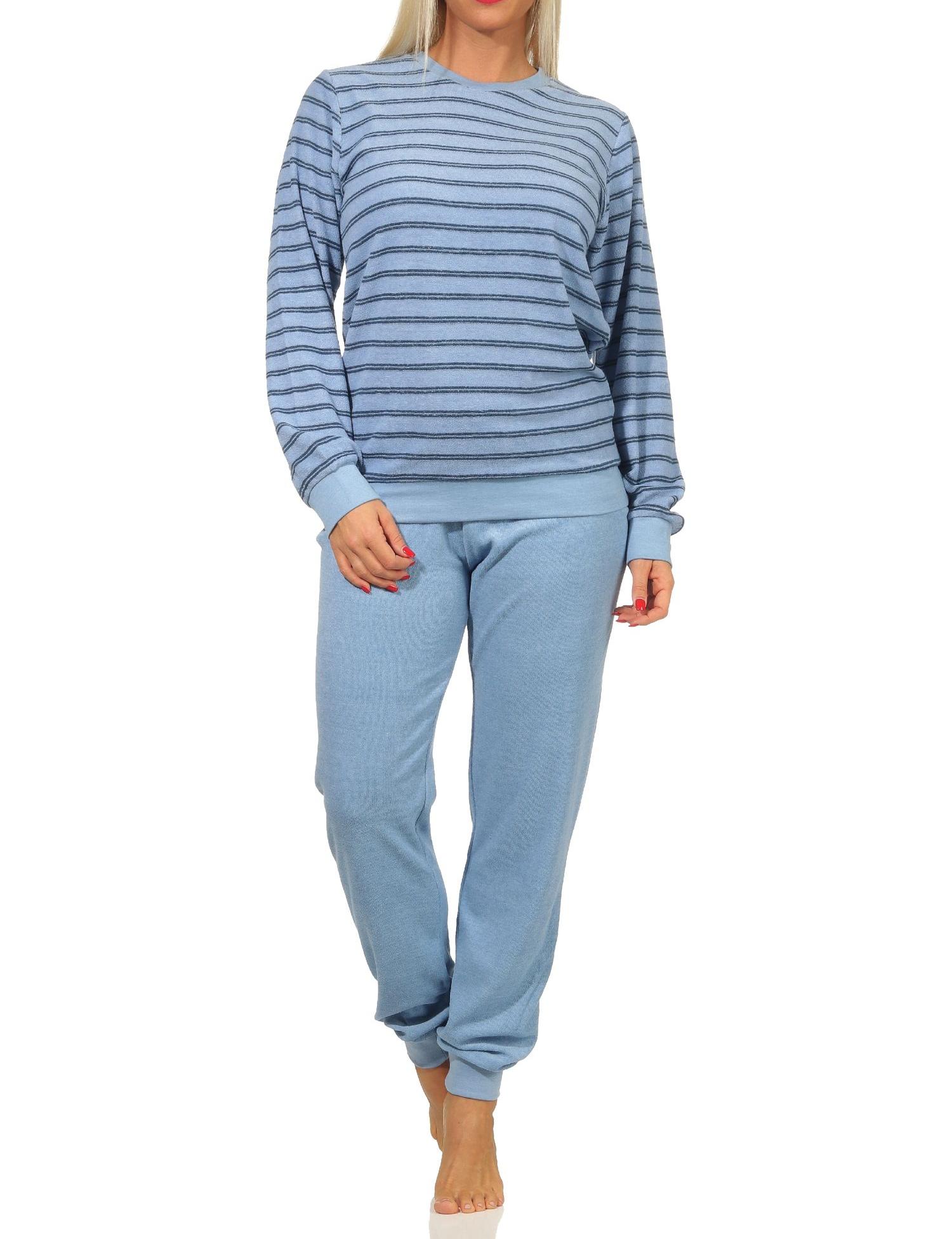 Damen Frottee Pyjama langarm Schlafanzug mit Bündchen - 212 201 90 801