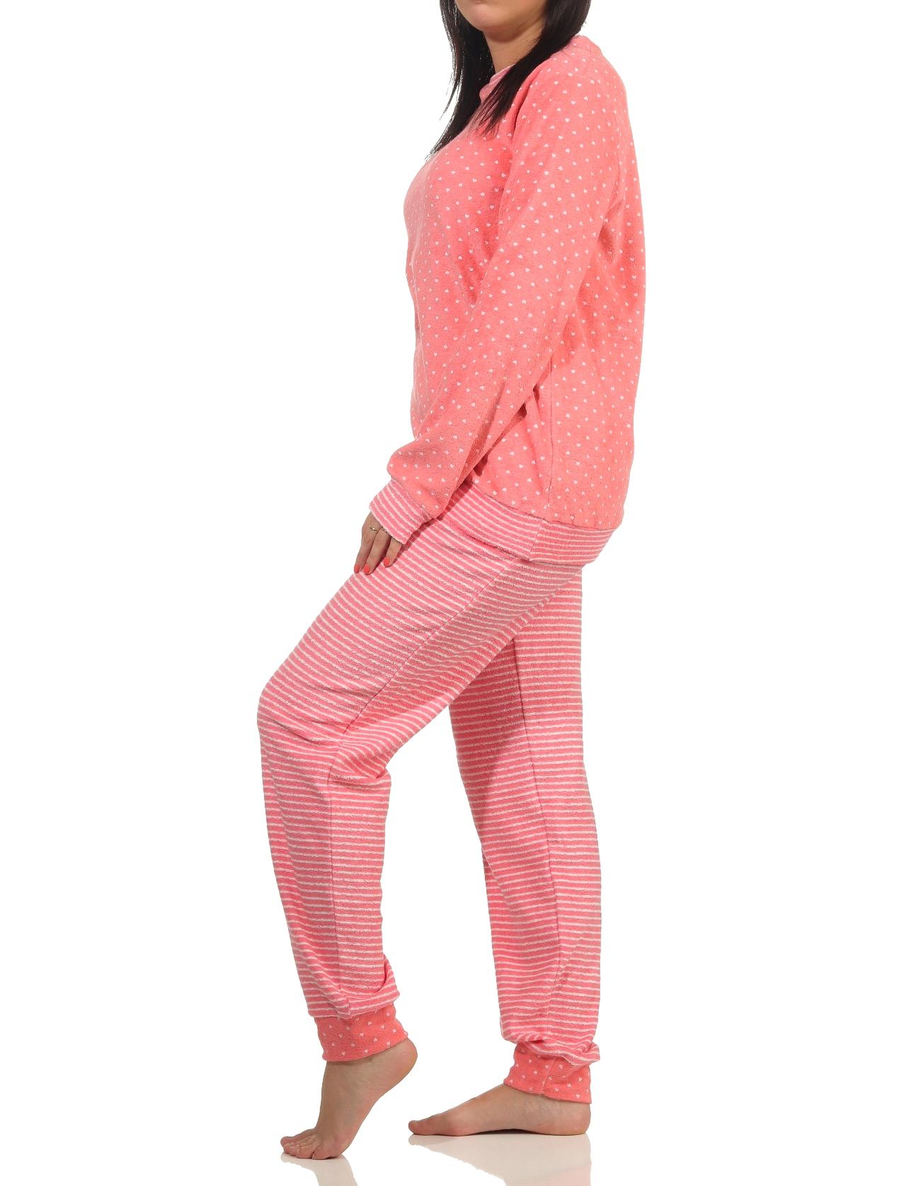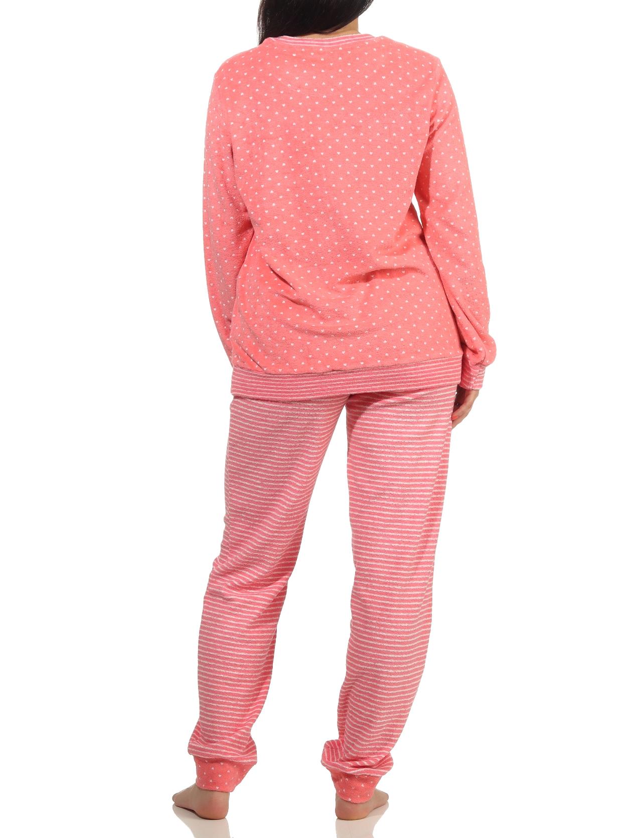 Damen Frottee Pyjama mit Bündchen in Herz-Tupfen Streifenoptik - auch in Übergrössen - 202 201 93 198