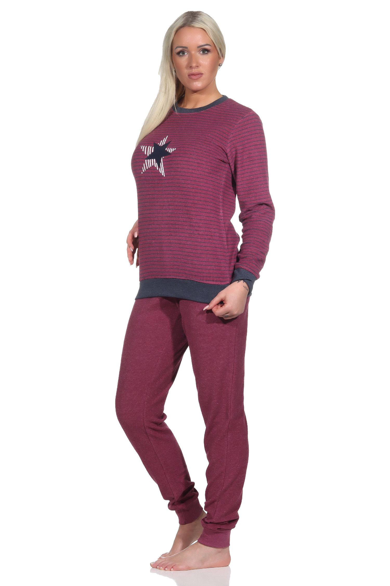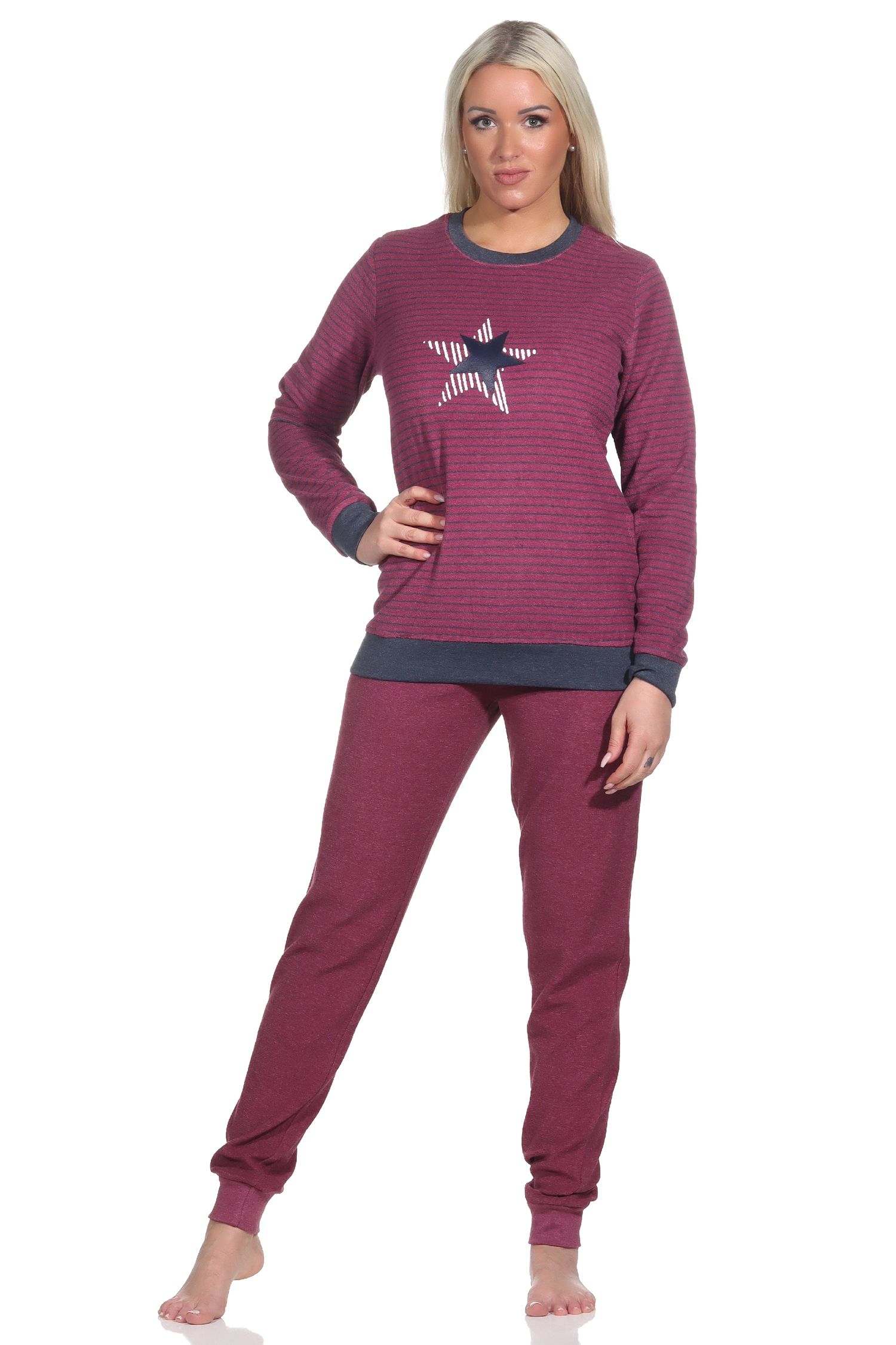 Damen Frottee Pyjama mit Bündchen in Streifenoptik und Sternenmotiv - auch in Übergrössen - 222 201 93 237