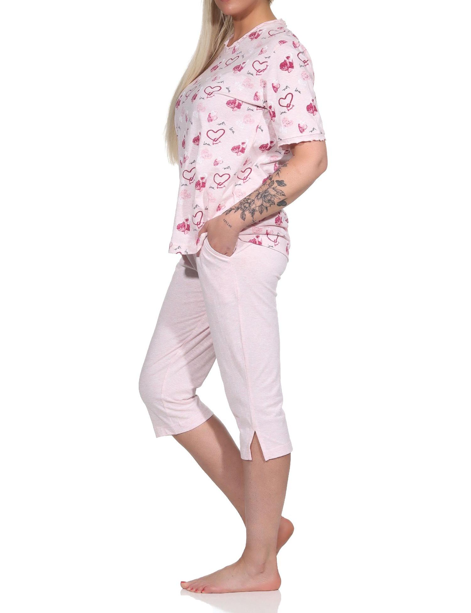 Damen kurzarm Capri Schlafanzug in Herz Motiv Optik - auch in Übergrössen - 122 204 815