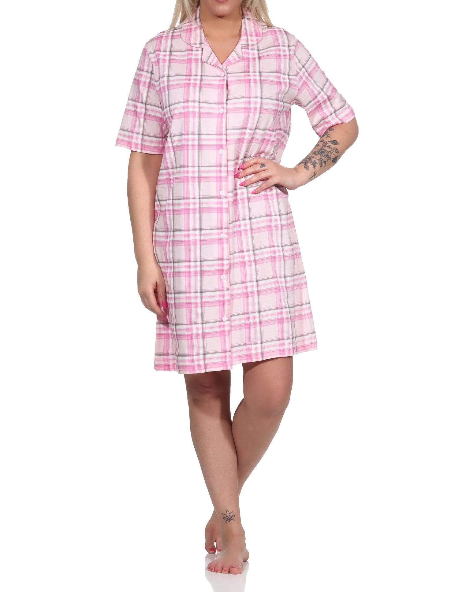 Damen kurzarm Nachthemd aus Jersey zum durchknöpfen in Karo-Optik - auch in Übergrössen - 122 214 90 446