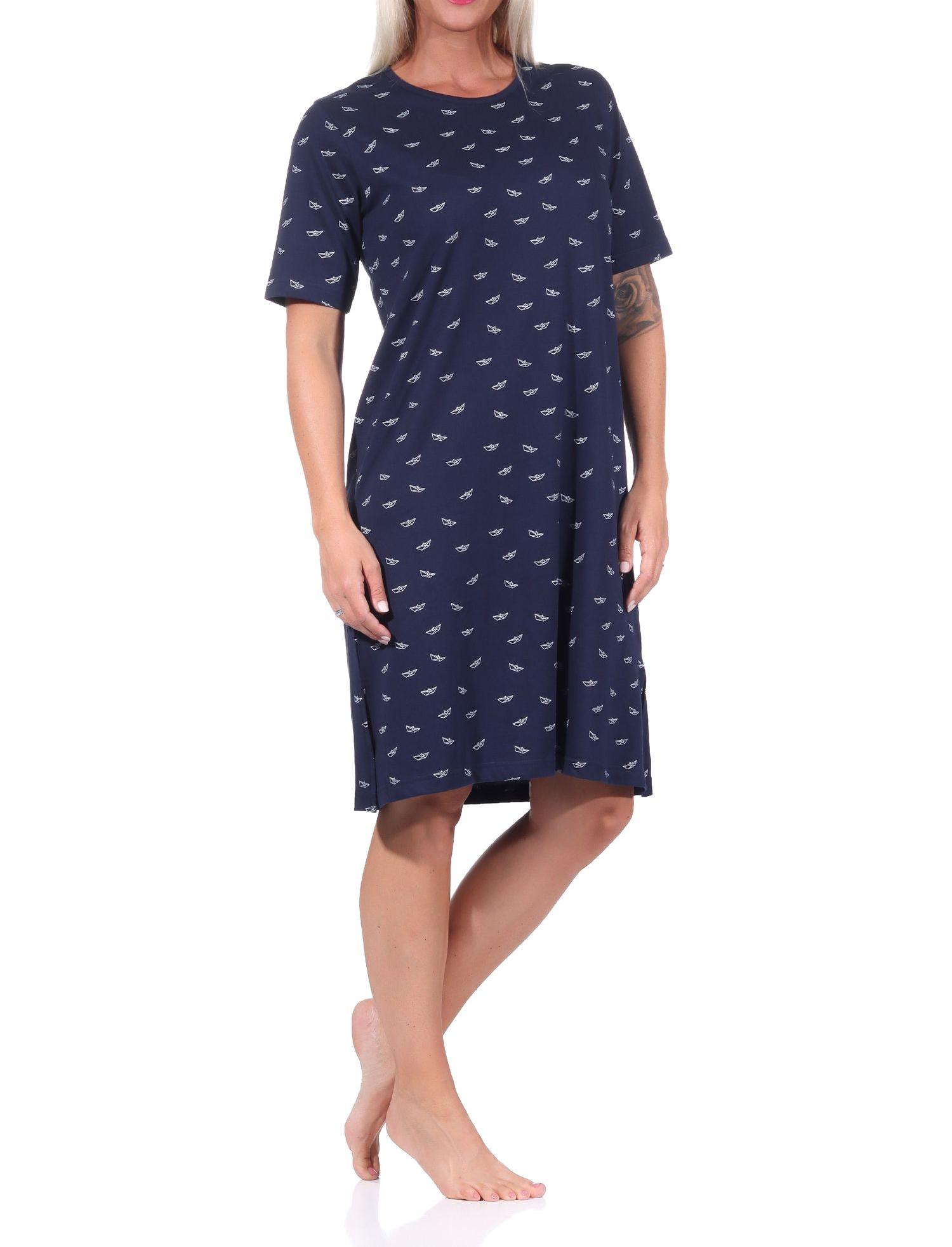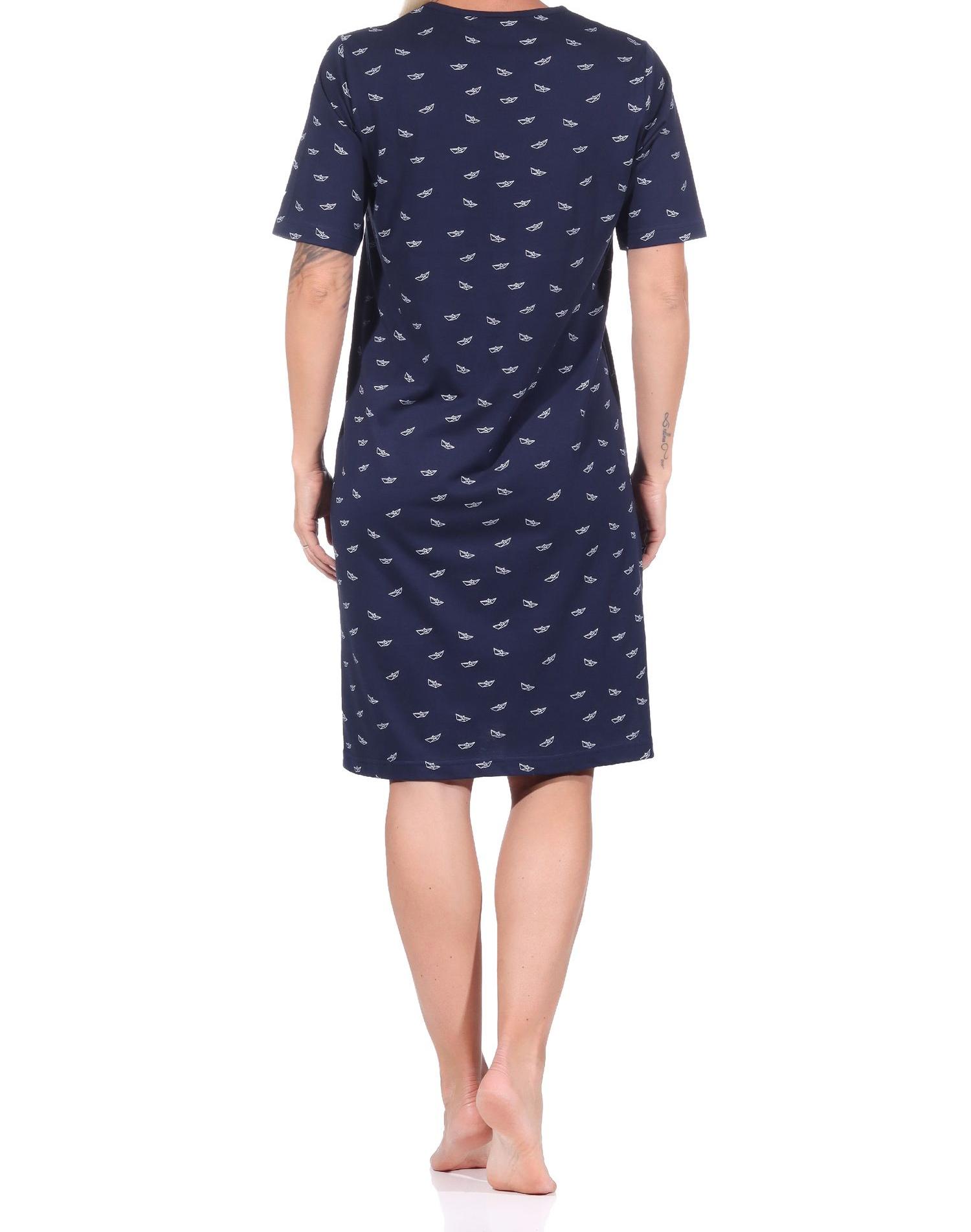 - Damen kurzarm Nachthemd in maritimen Farben und mit maritimen Alloverdruck