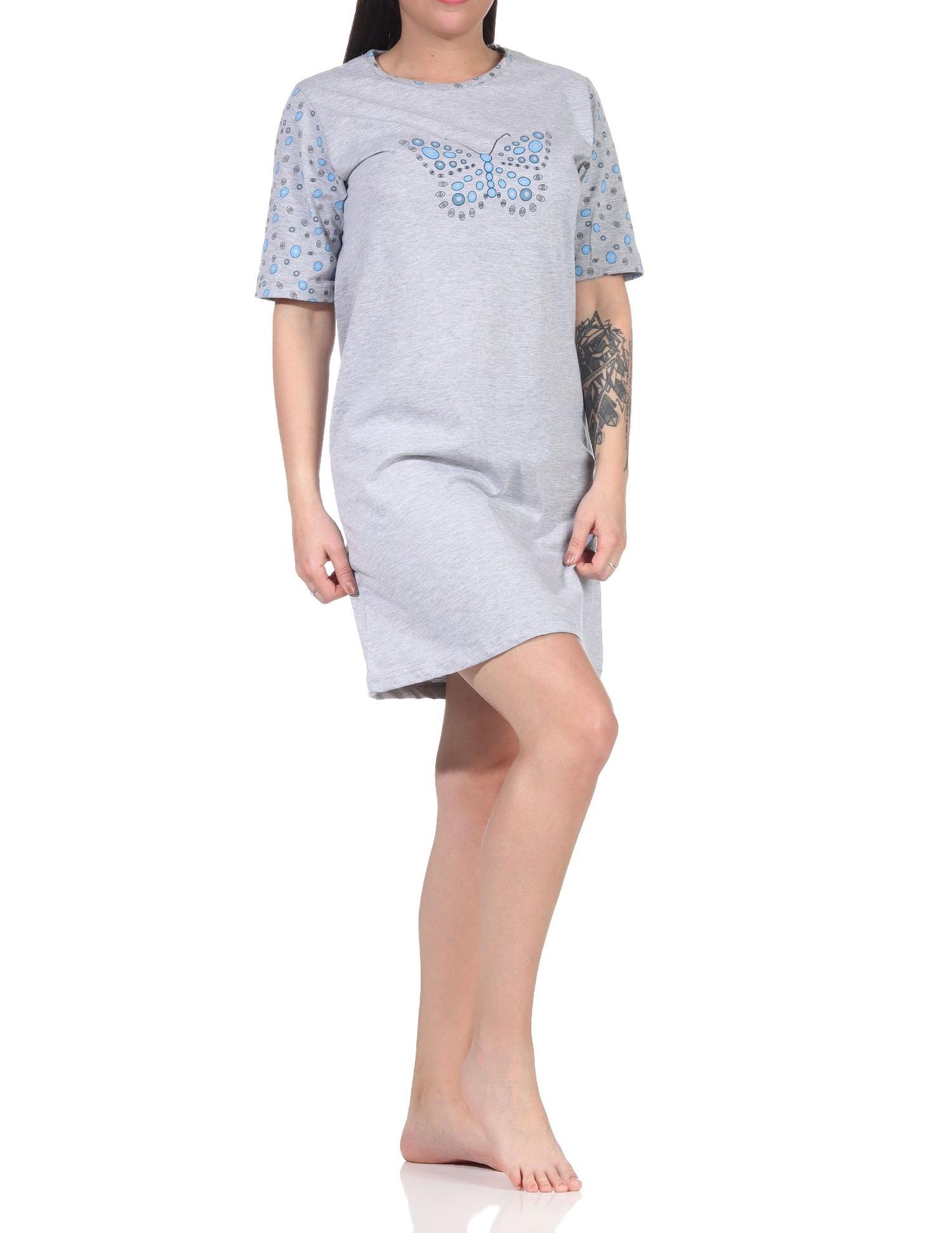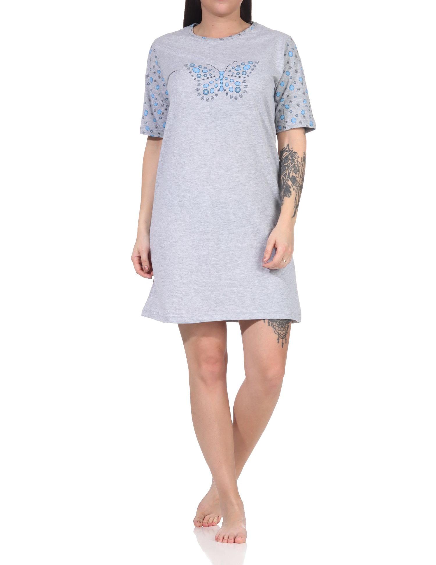 Damen kurzarm Nachthemd mit Schmetterling als Motiv - 112 214 10 714