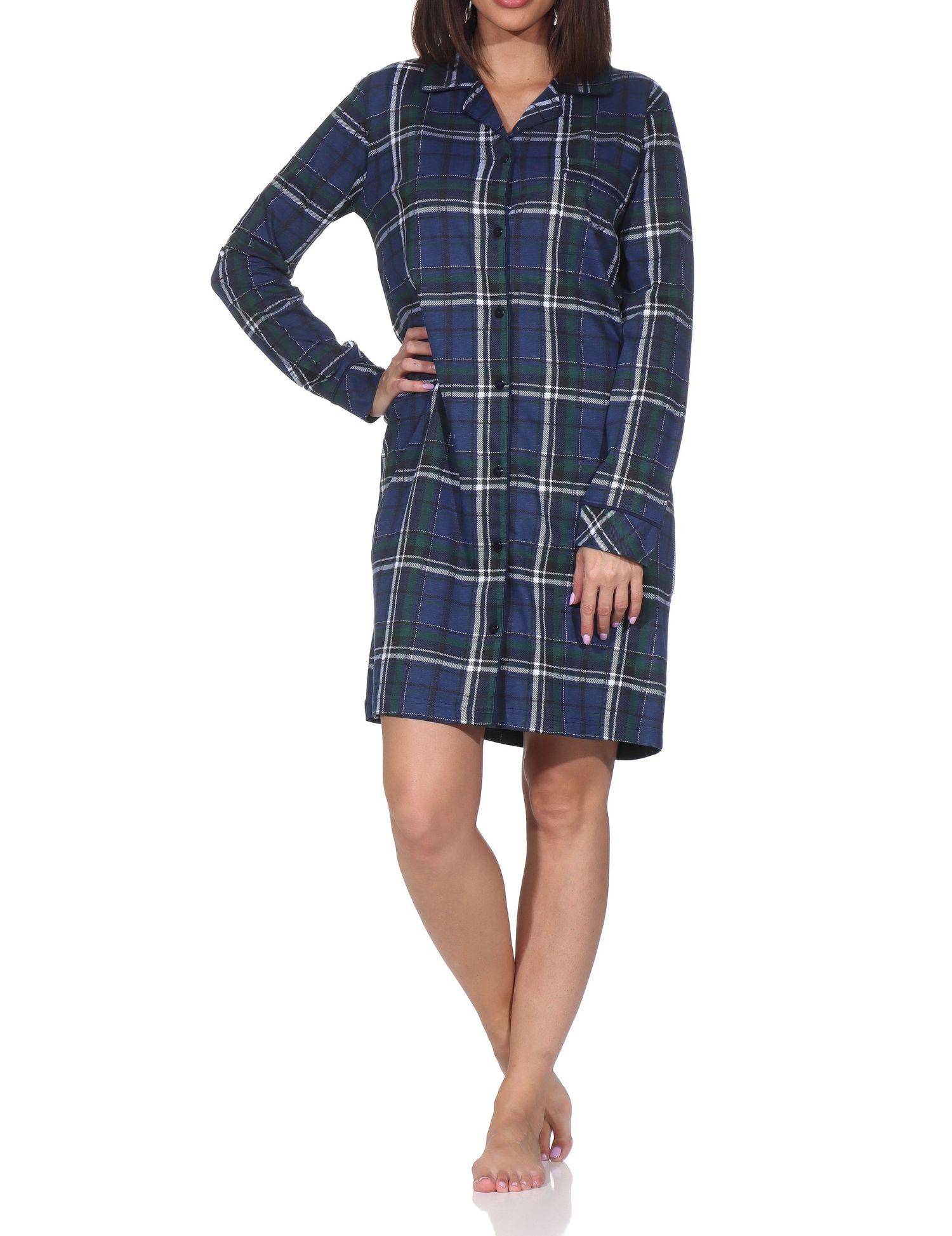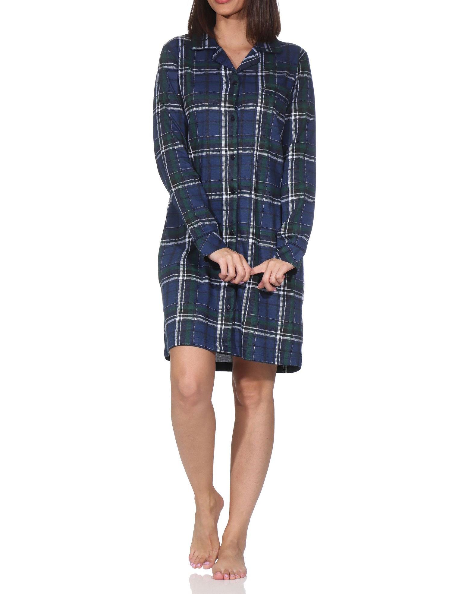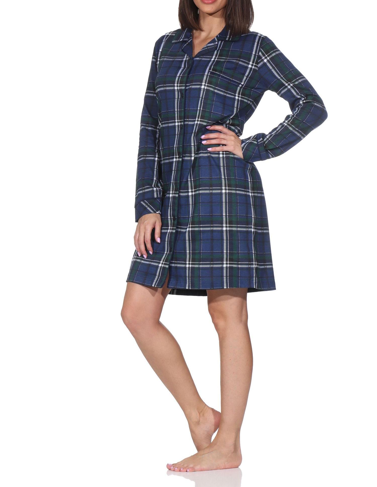 Damen langarm Nachthemd kariert zum durchknöpfen in Jersey Qualität - auch in Übergröße
