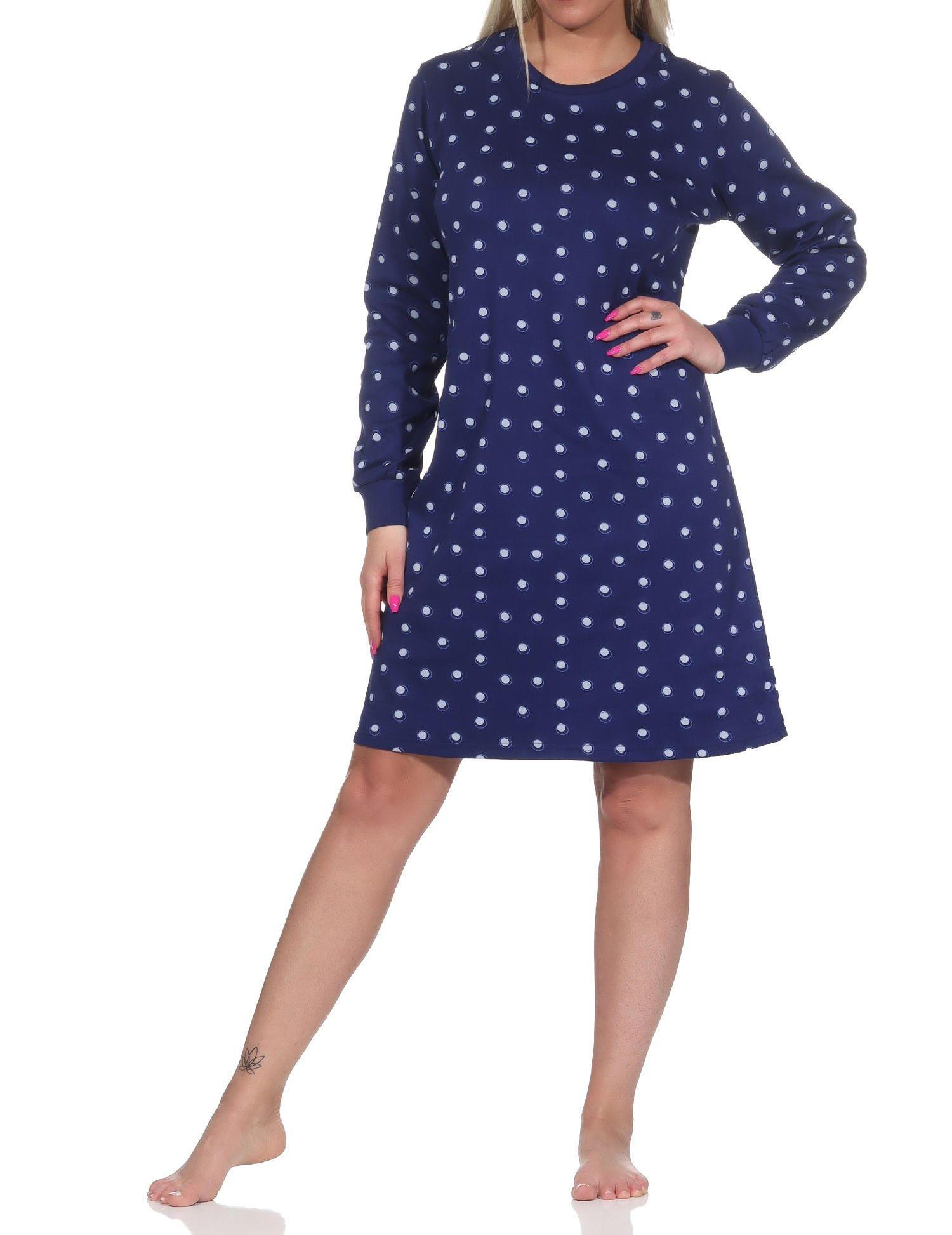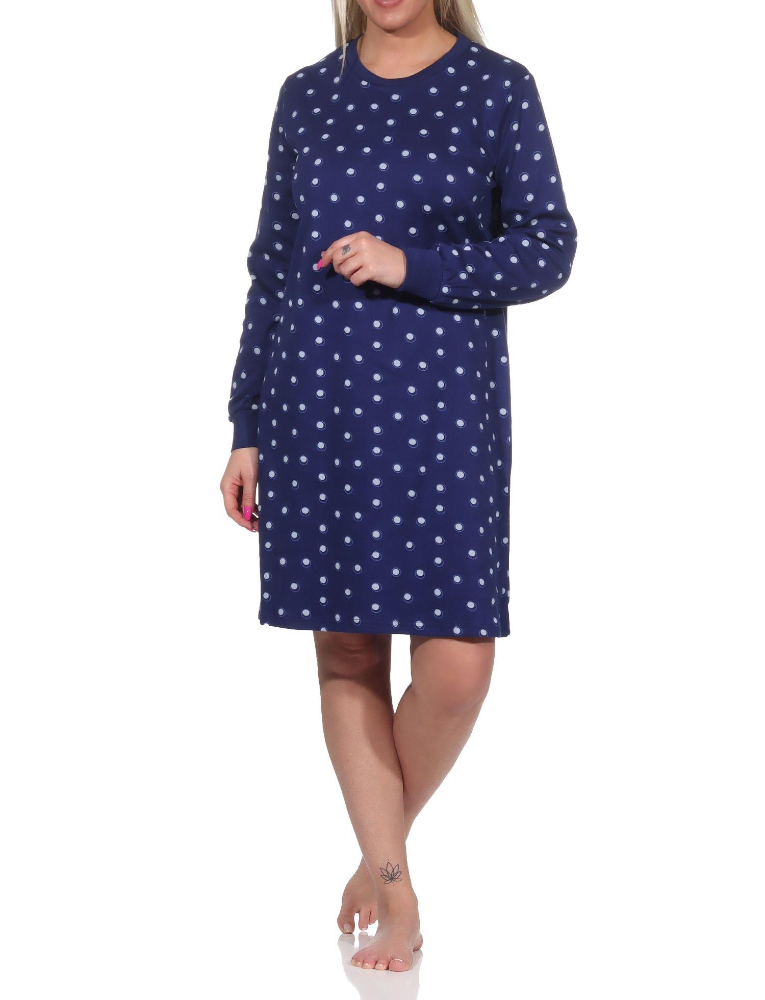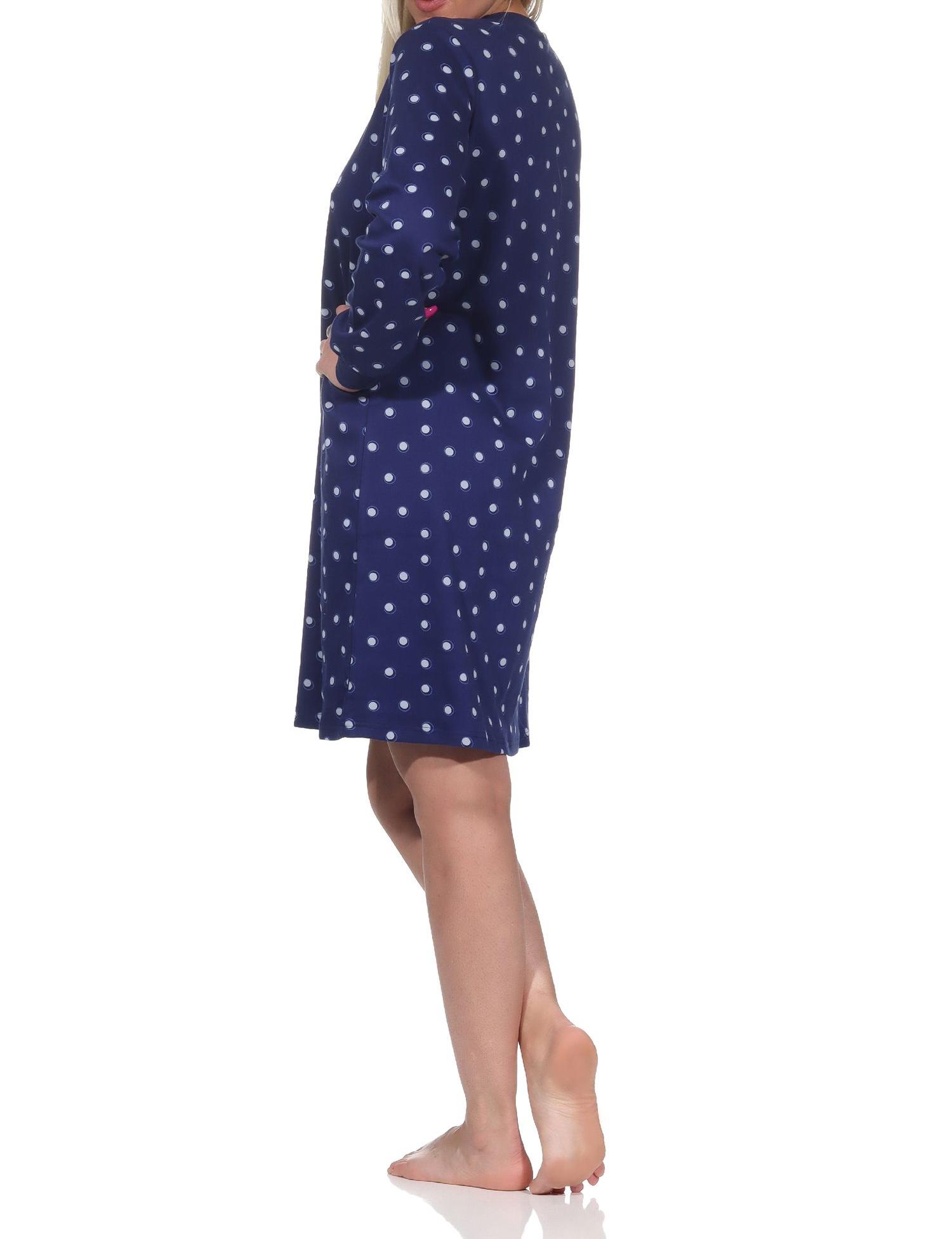 Damen langarm Nachthemd mit Bündchen in Kuschel Interlock Qualität in gepunkteter Optik