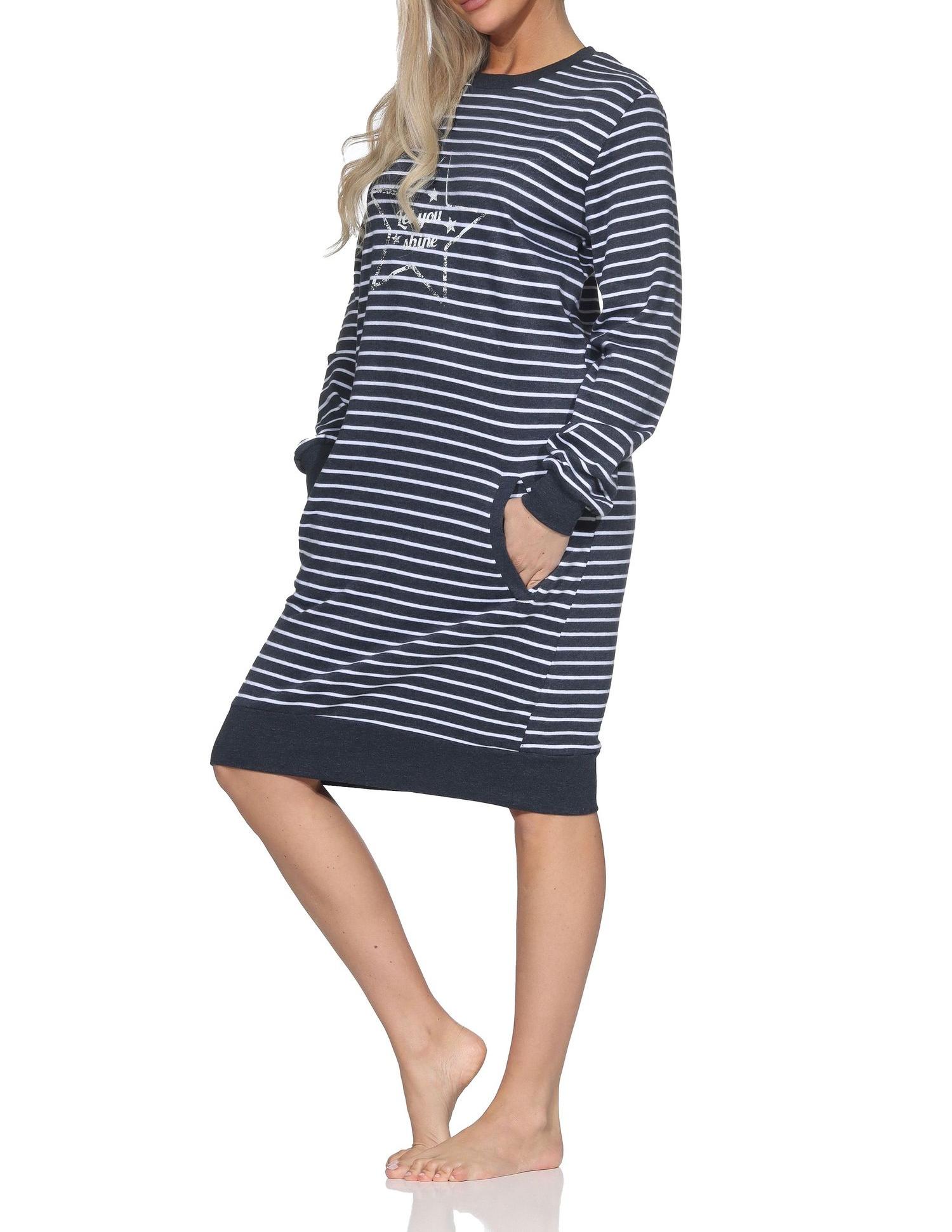 Damen langarm Nachthemd mit Stern-Motiv in Kuschel Interlock Qualität - auch in Übergröße