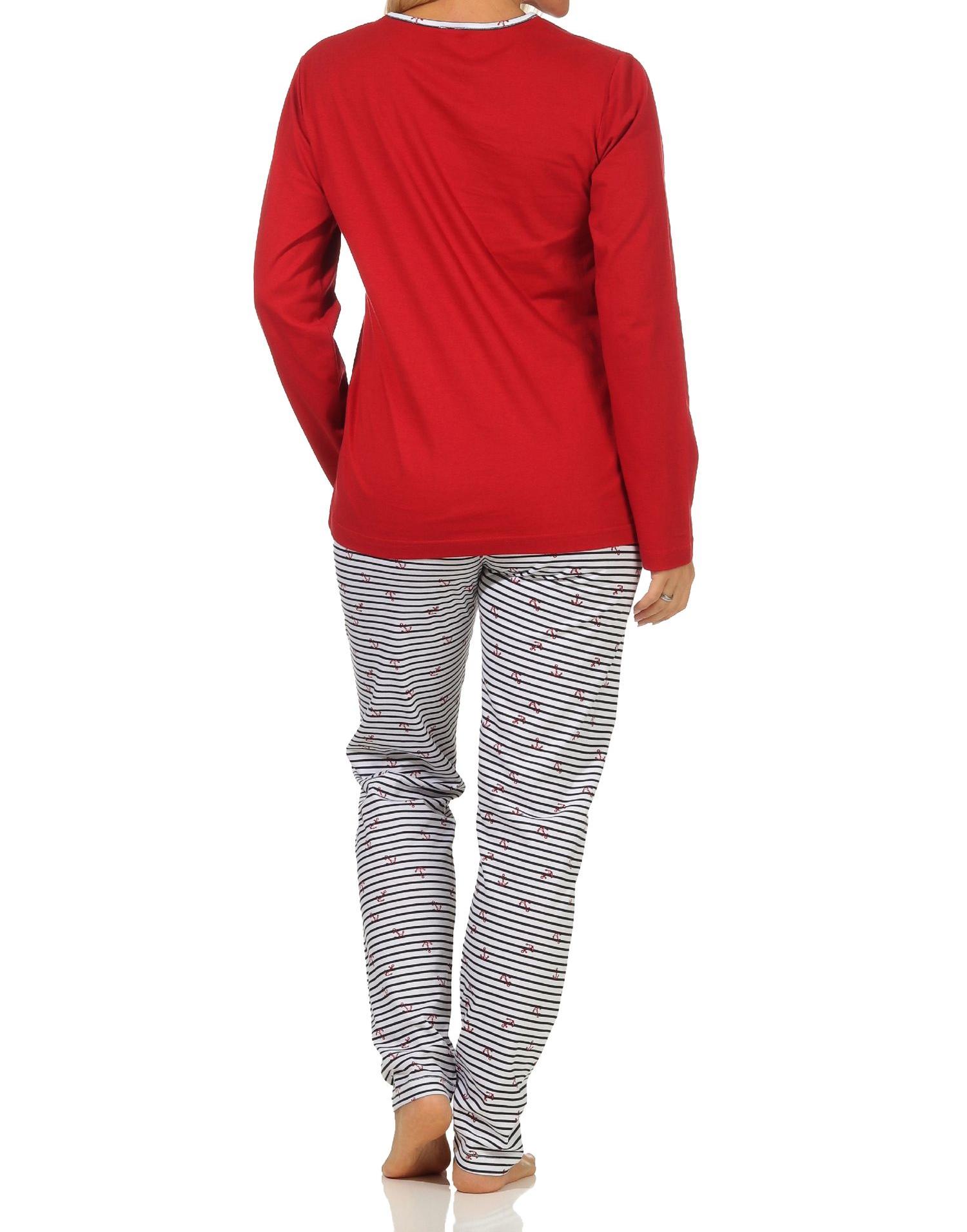 Damen langarm Schlafanzug Pyjama in maritimer Streifen Optik - 122 201 10 717