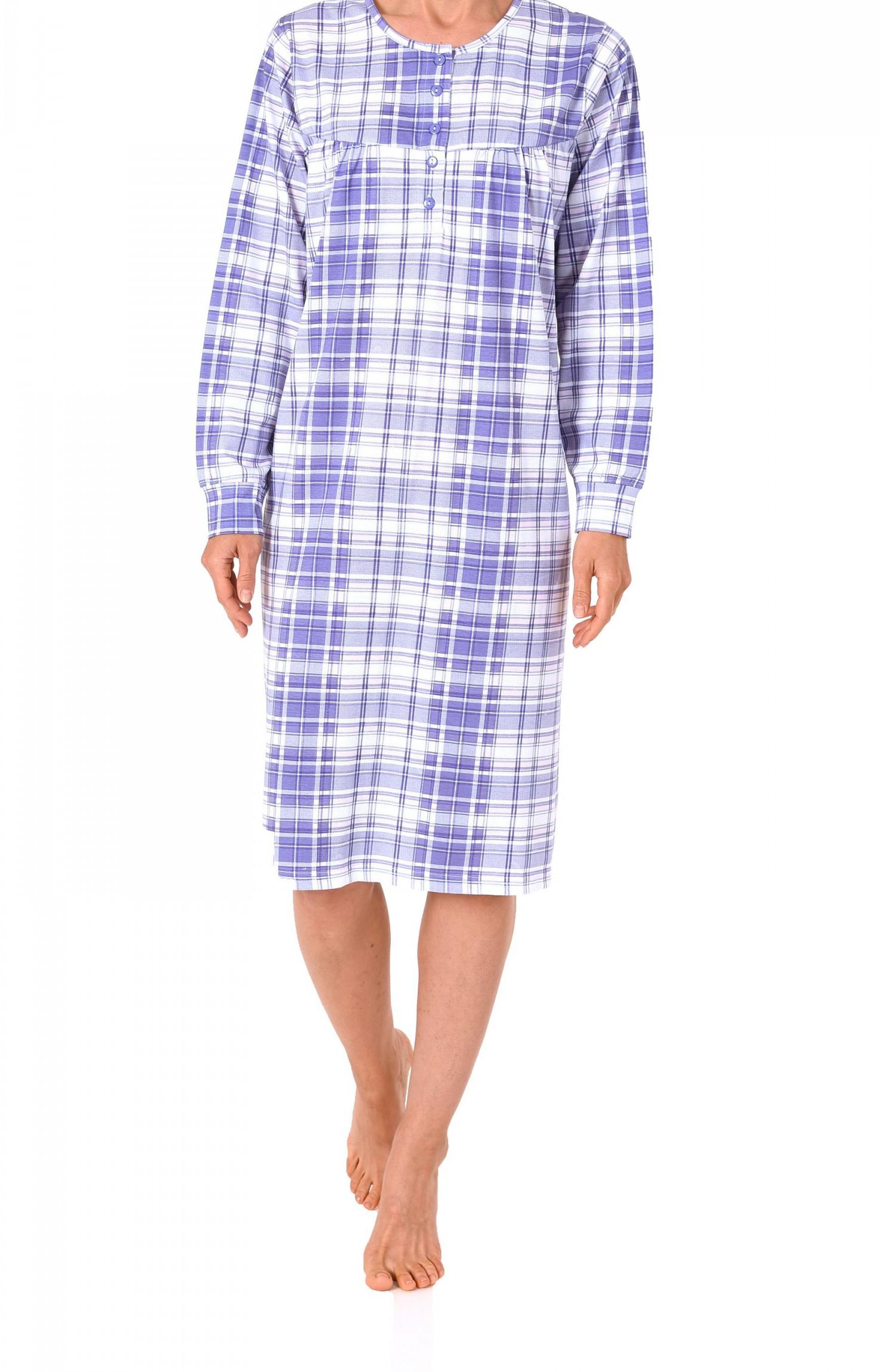 Damen Nachthemd langarm im Karodesign und mit Knopfleiste am Hals – 271 210 90 153