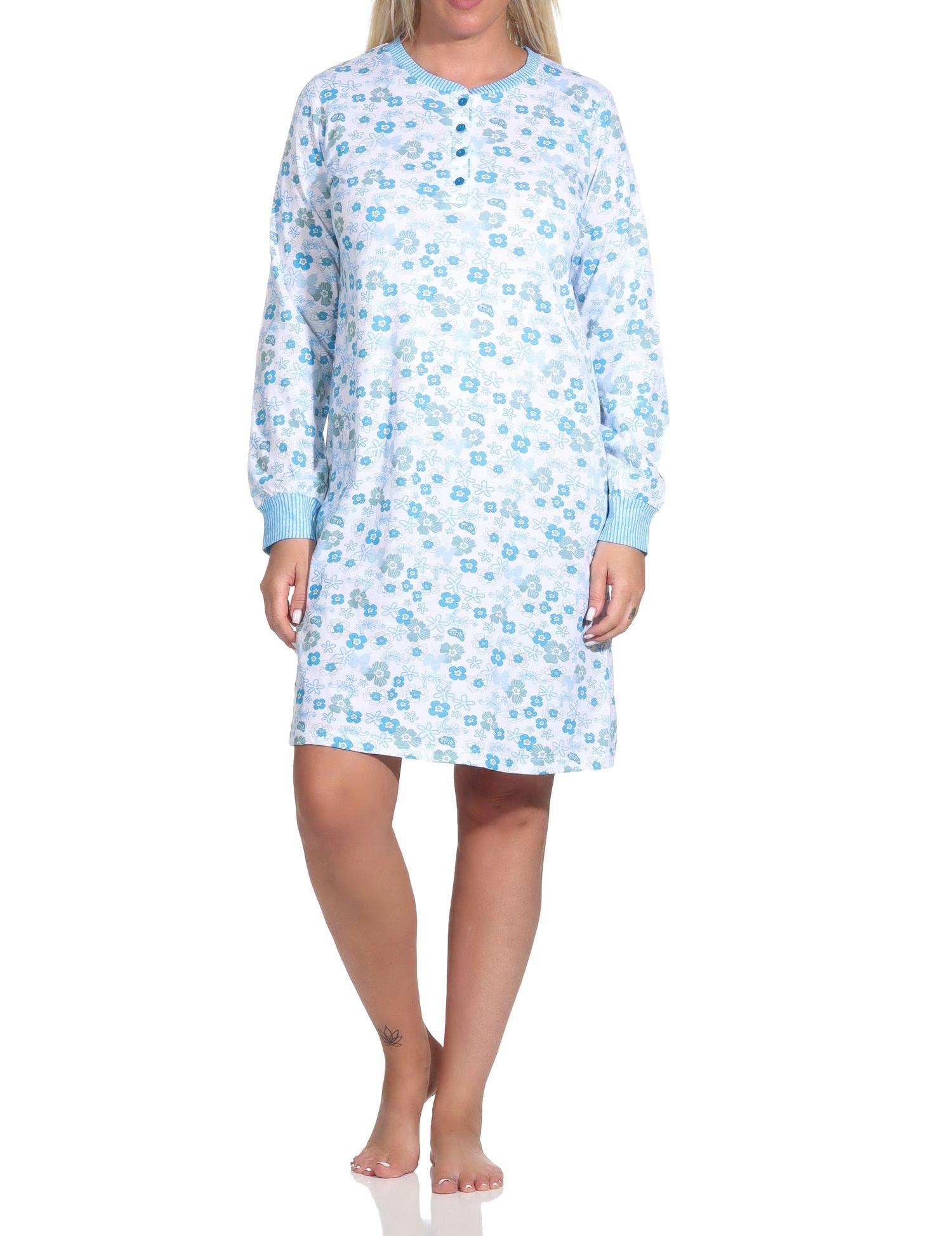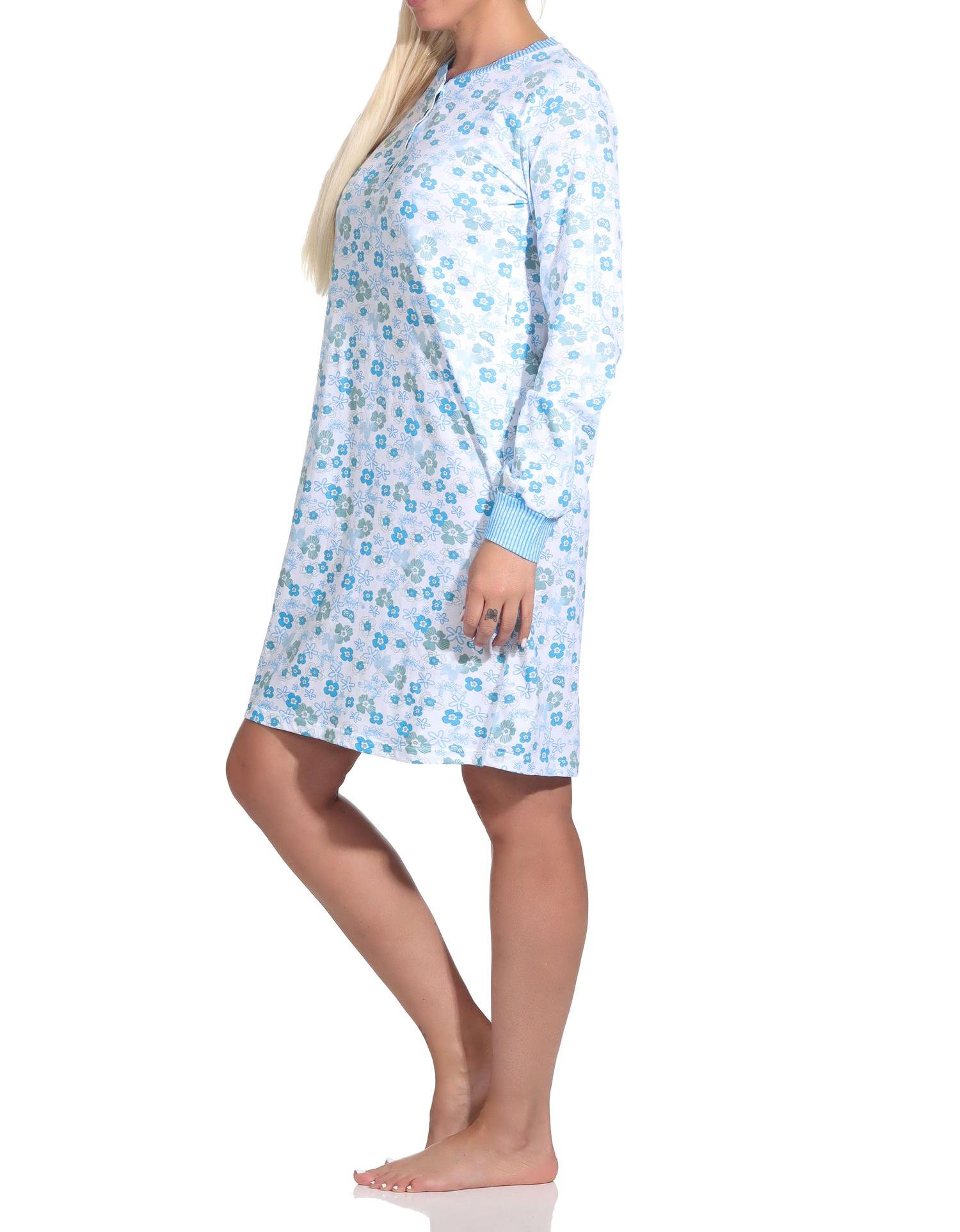 Damen Nachthemd langarm mit Bündchen an den Ärmeln in toller floraler Optik