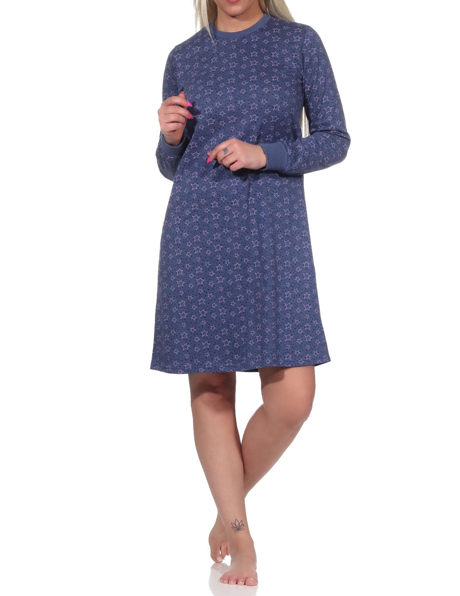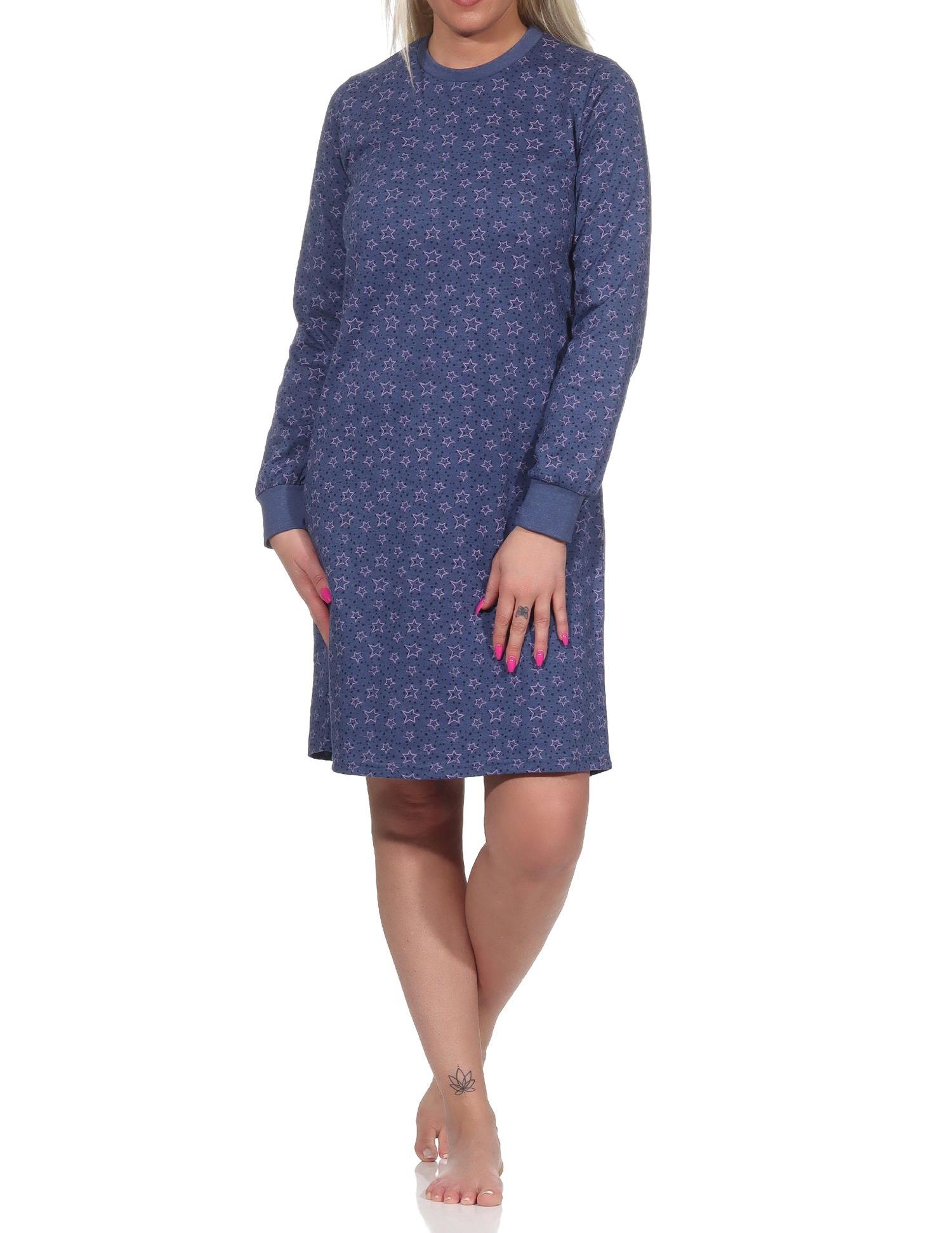 Damen Nachthemd langarm mit Bündchen in Sterne Optik - auch in Übergrößen - 222 213 90 170