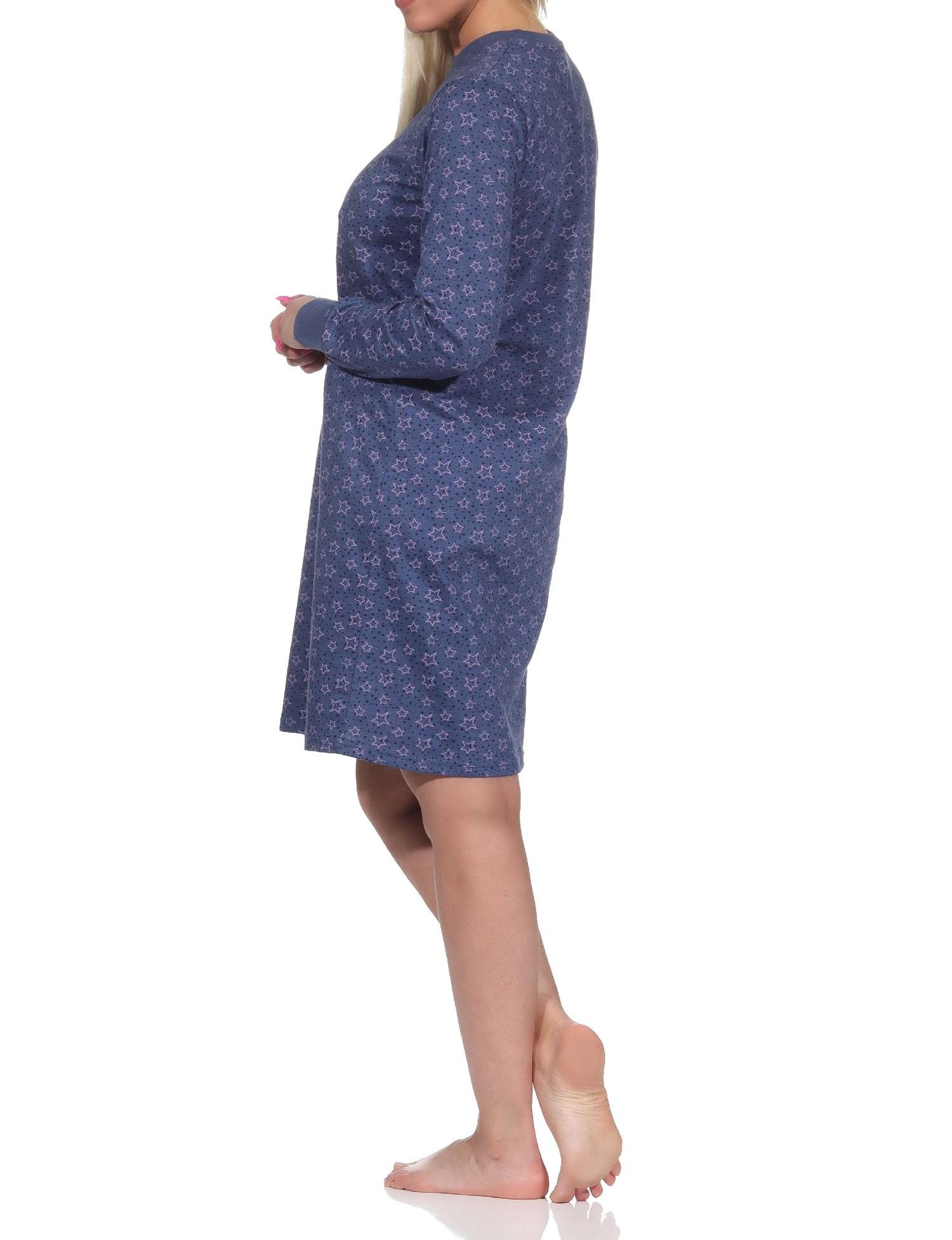 Damen Nachthemd langarm mit Bündchen in Sterne Optik - auch in Übergrößen