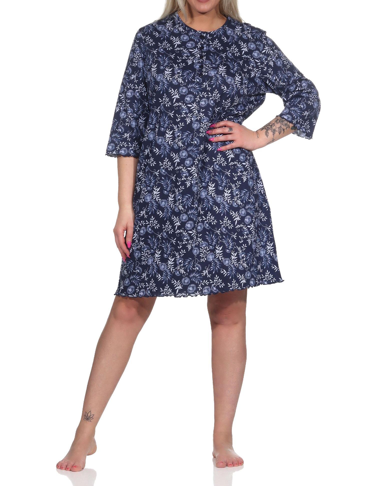 Damen Nachthemd mit 3/4-langen Ärmeln und mit Knopfleiste am Hals in floraler Optik