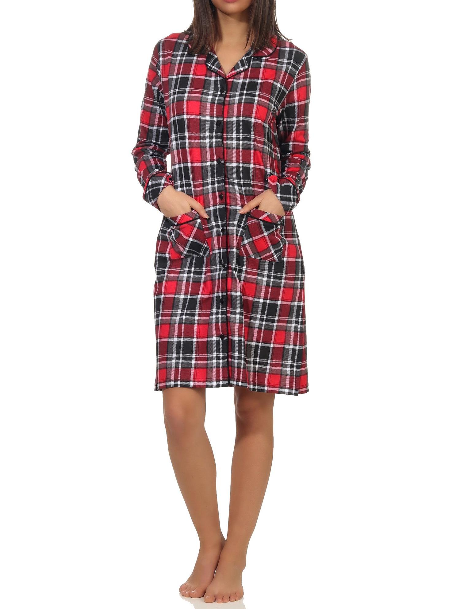 Elegantes Damen Nachthemd zum durchknöpfen im zeitlosen Karo Design aus einer bequemen Single Jersey Qualität. Durch Single Jersey ist der Stoff schön elastisch und lässt sich bequem tragen. Details wie die aufgesetzten Taschen runden den gelungenen Look ab.