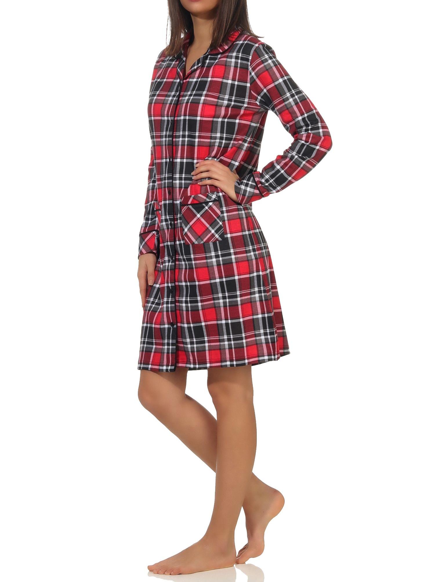 Damen Nachthemd zum durchknöpfen in Karo-Optik - Single Jersey - auch in Übergrössen