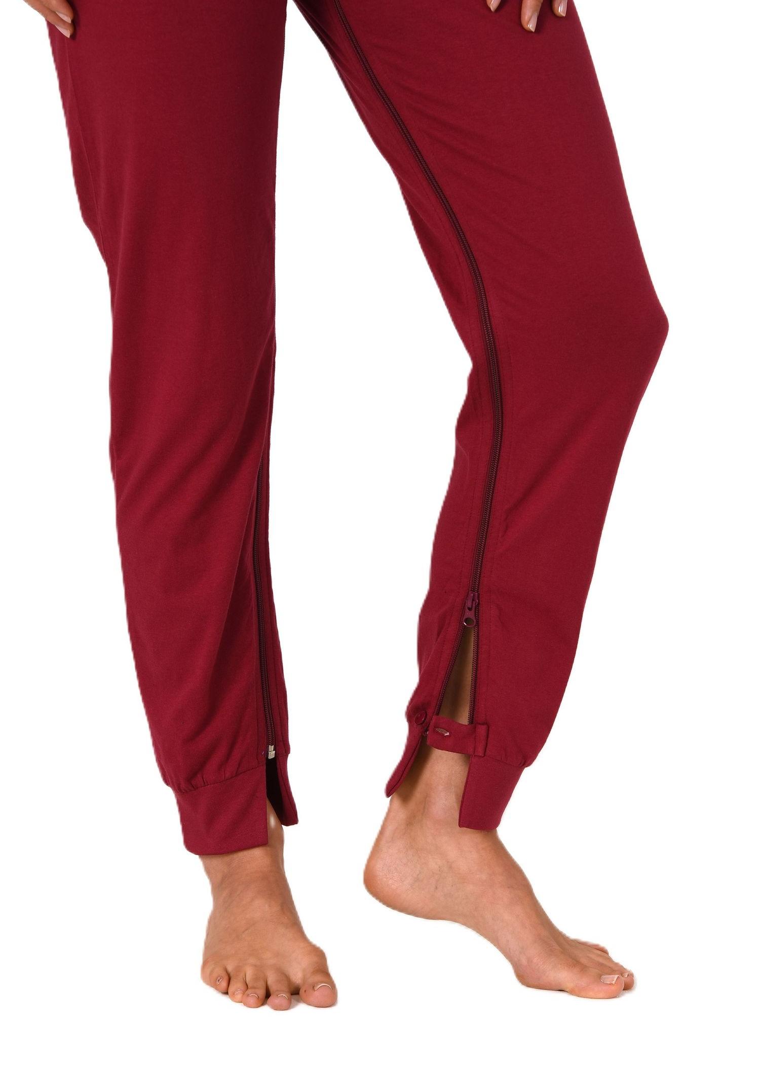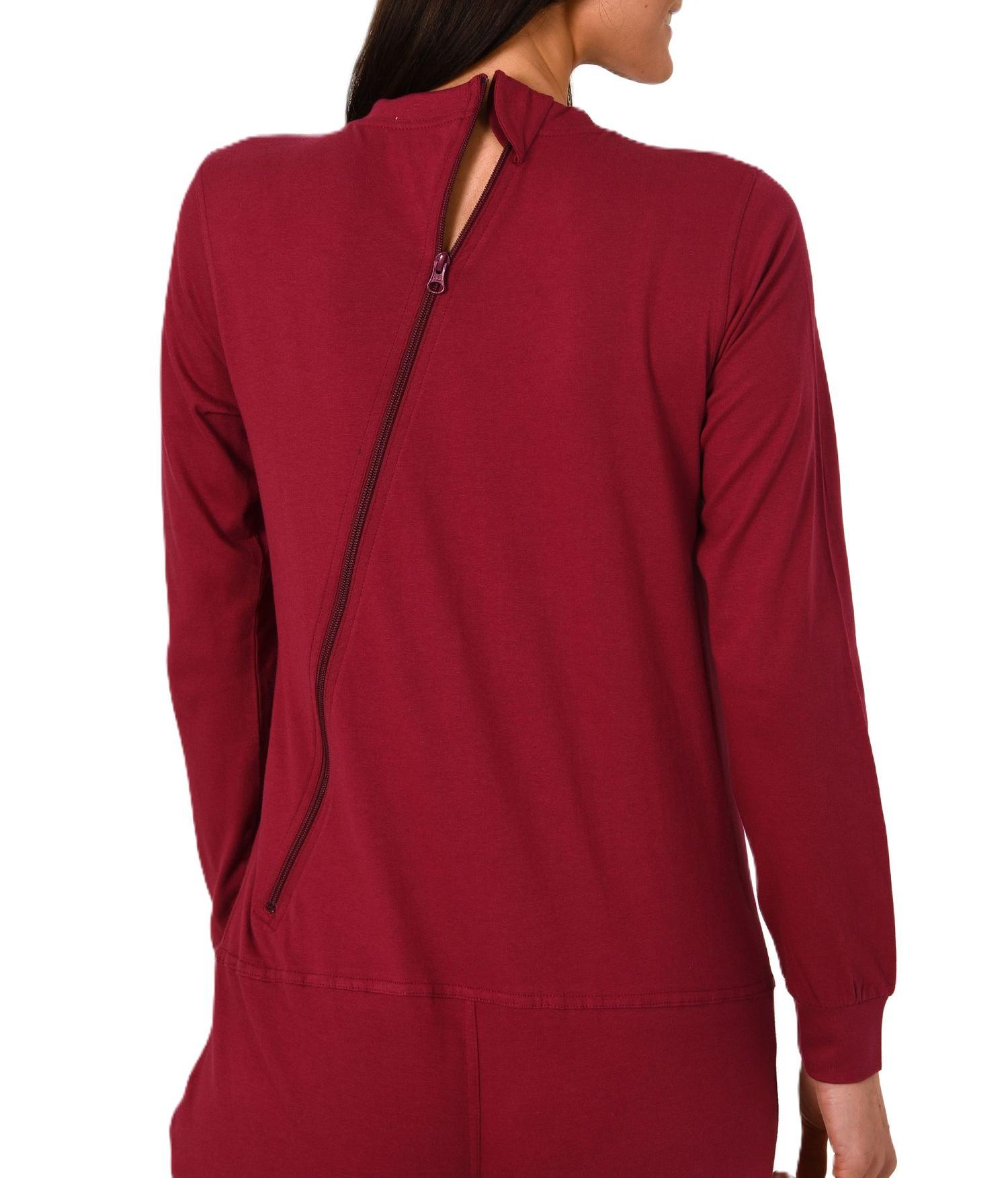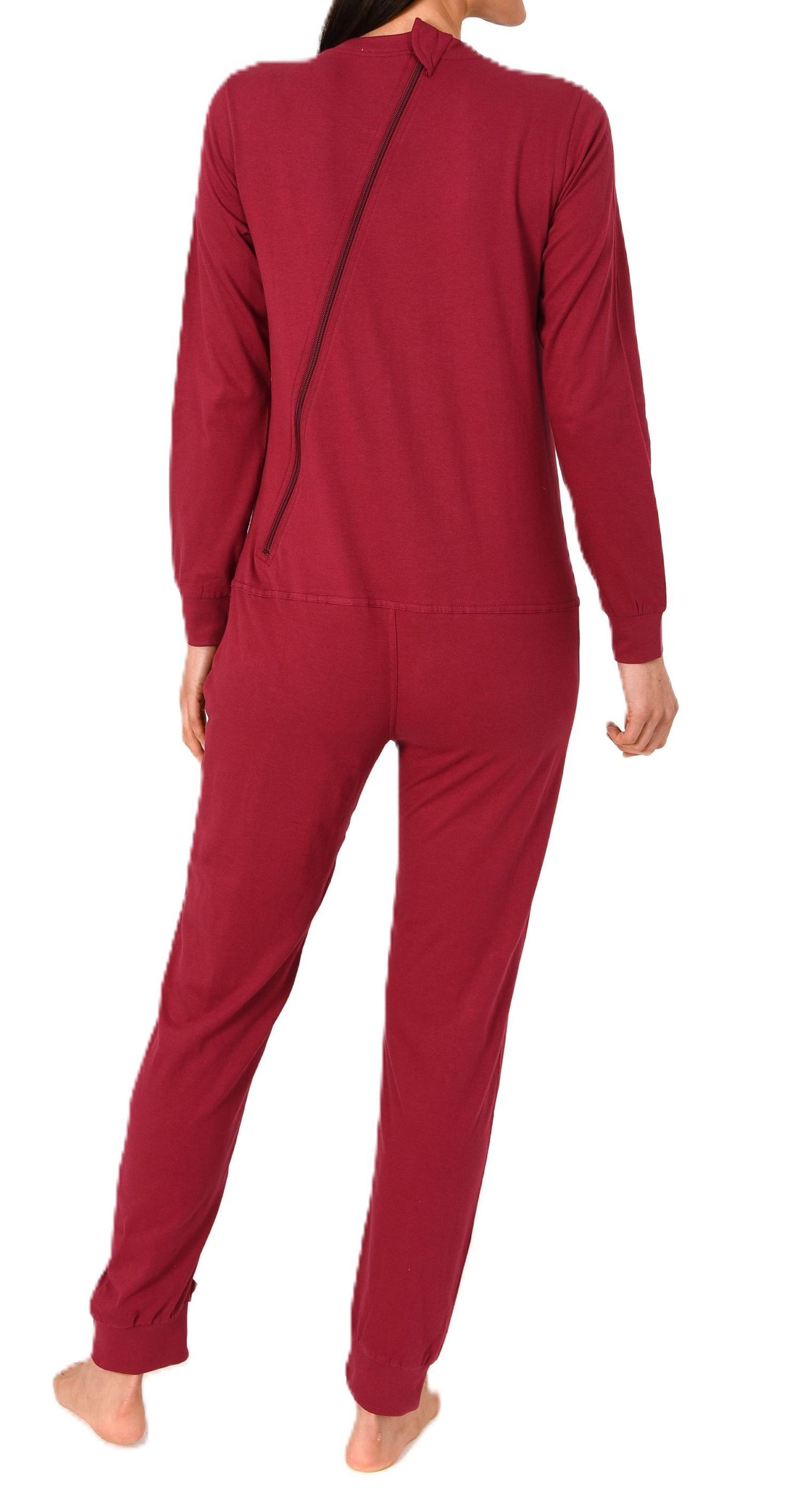 Damen Pflegeoverall langarm Einteiler Schlafanzug mit Reissverschluss am Rücken und Bein