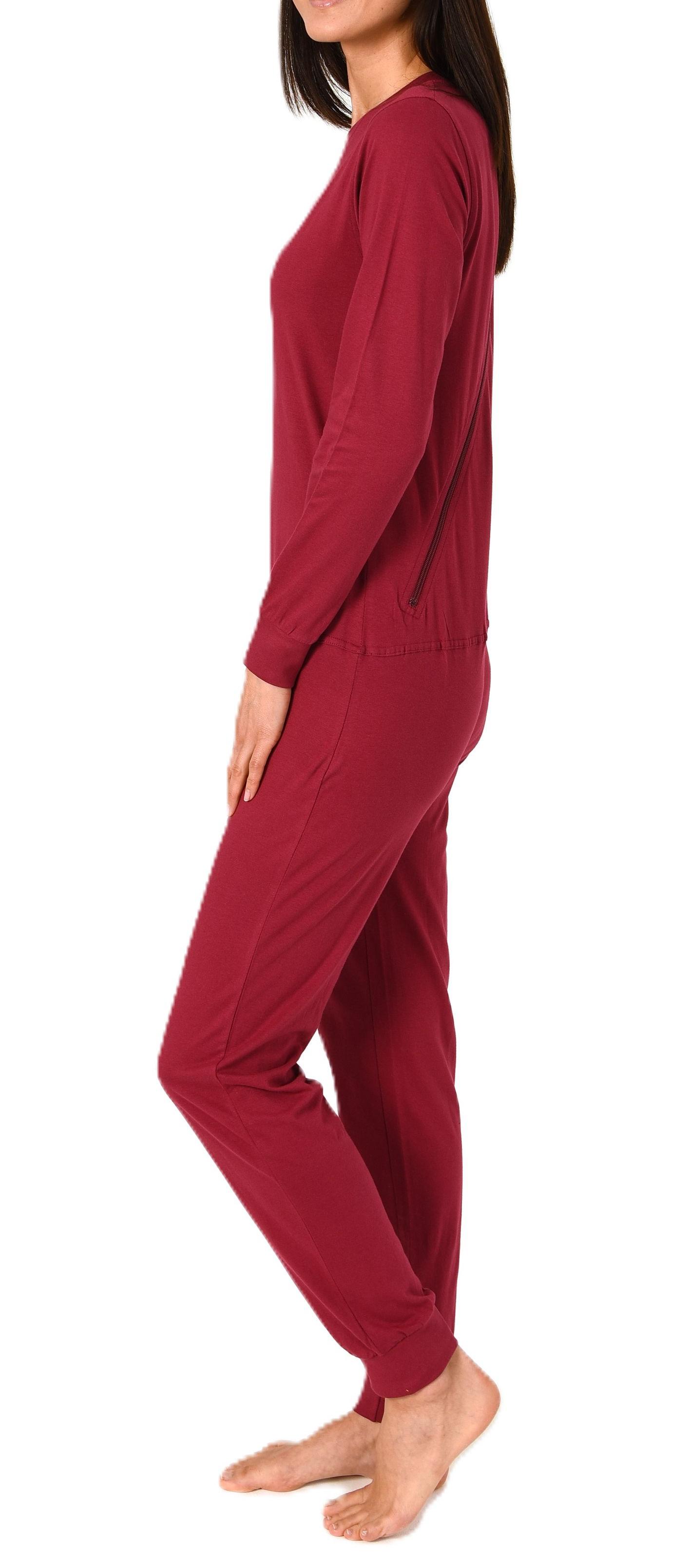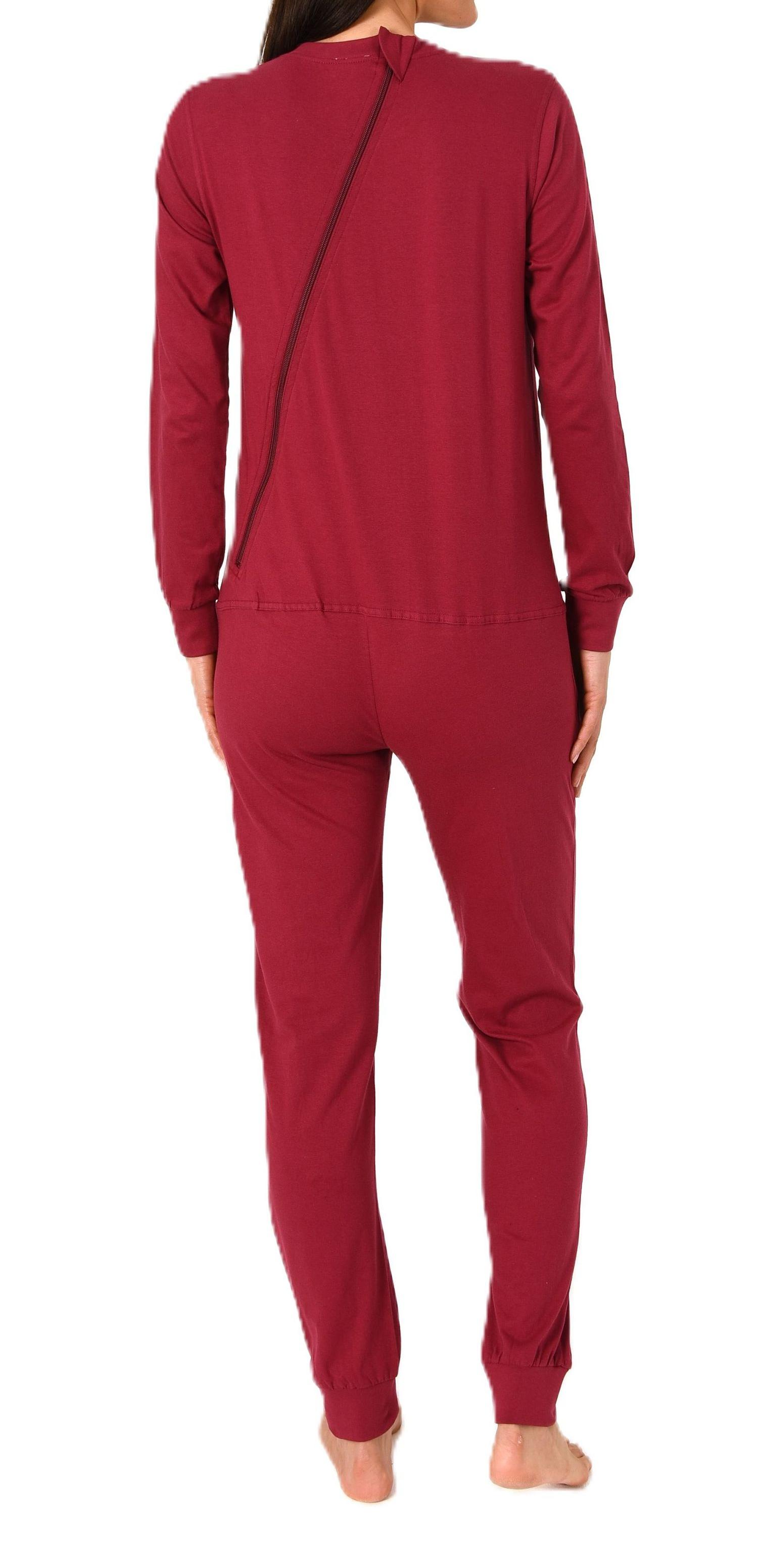 Damen Pflegeoverall langarm Einteiler Schlafanzug mit Reißverschluss am Rücken