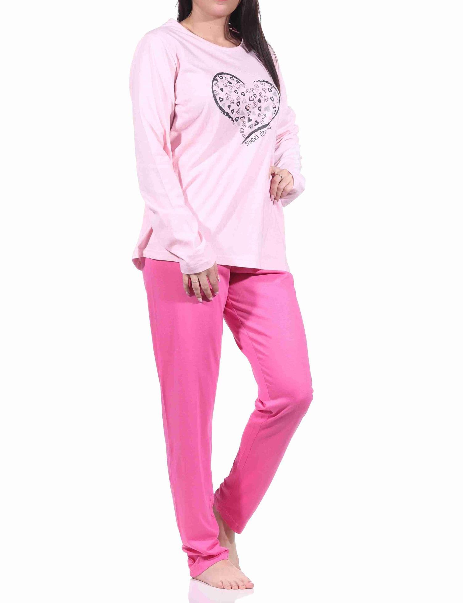 Damen Pyjama langarm Schlafanzug mit Herzmotiv - 212 201 10 904a