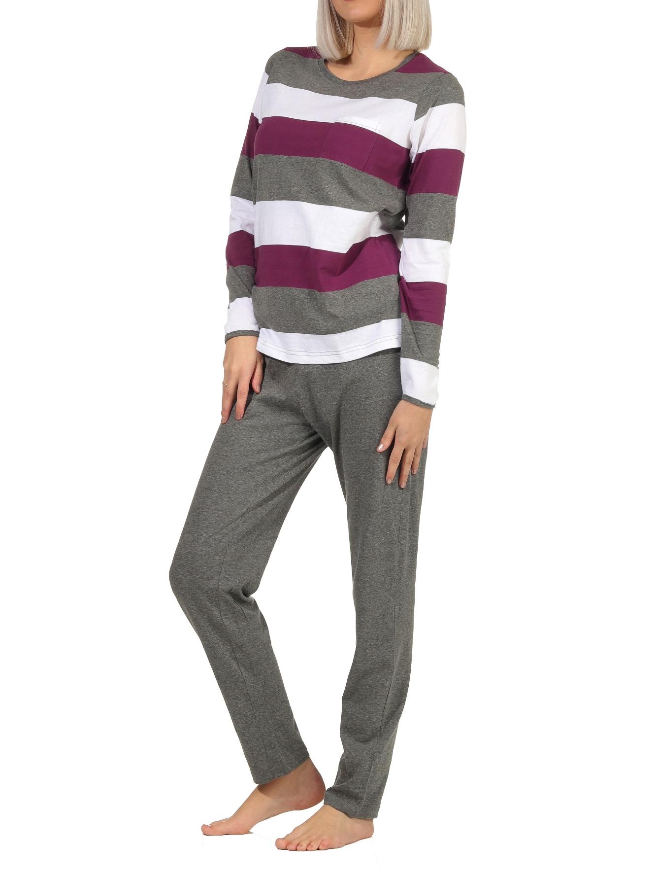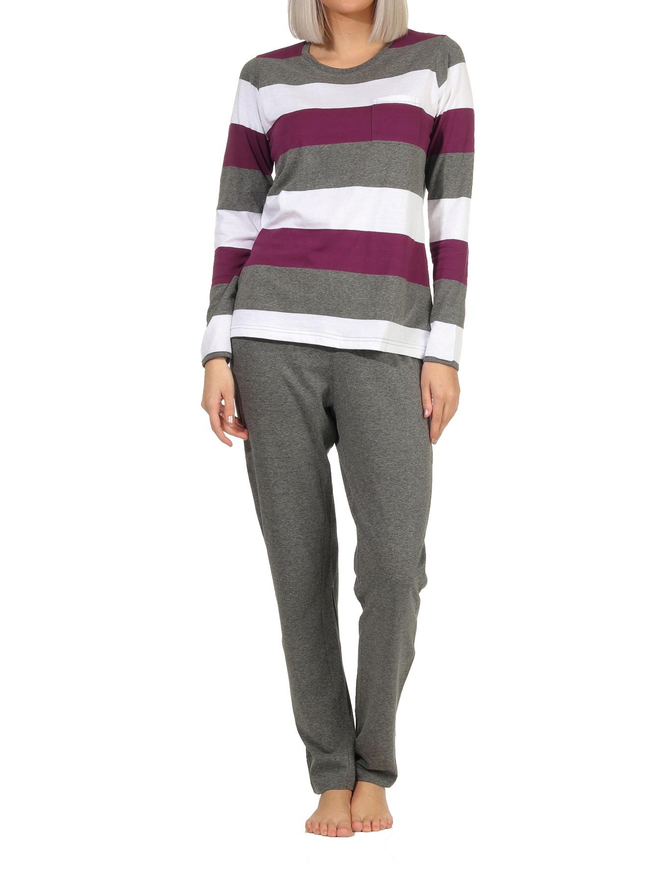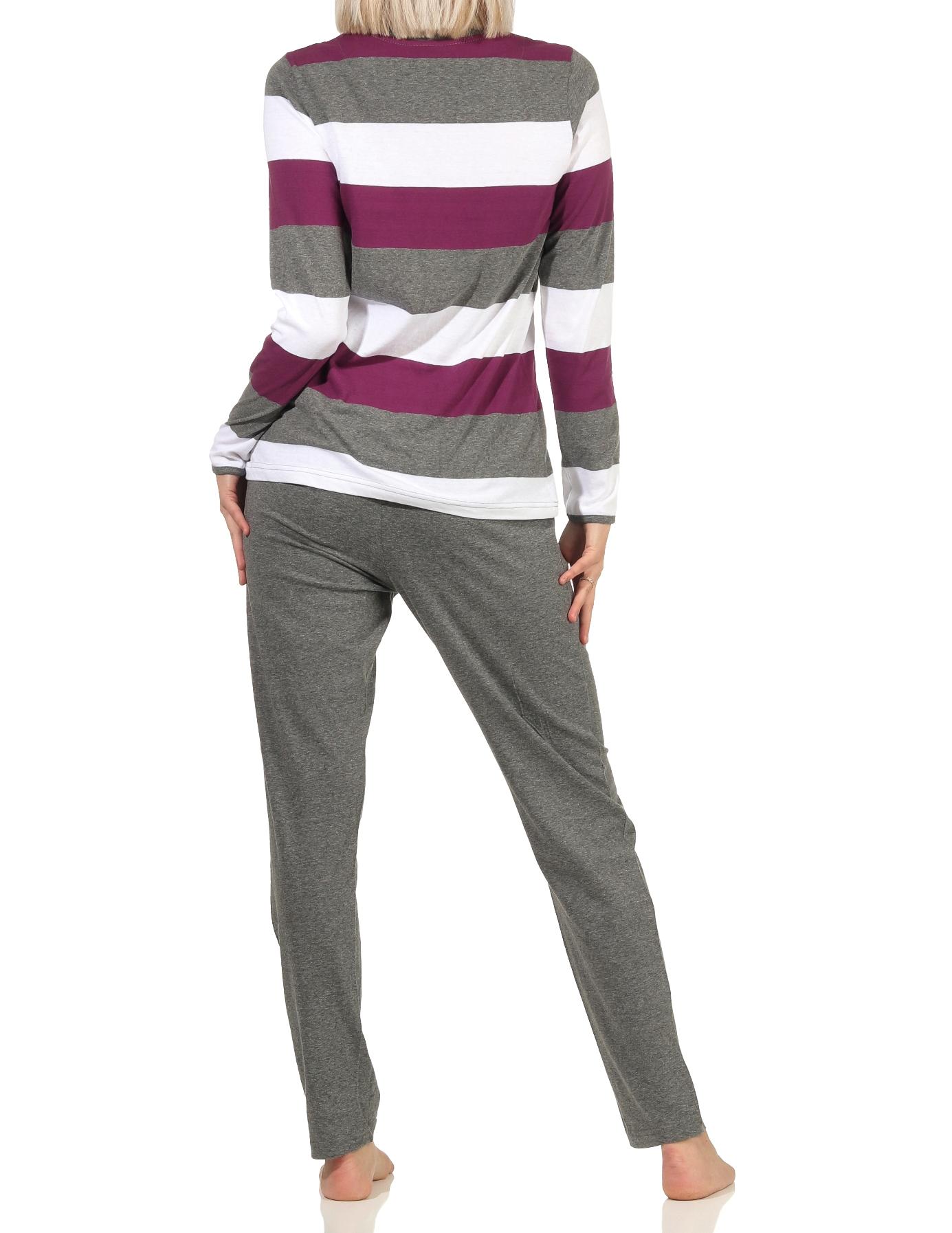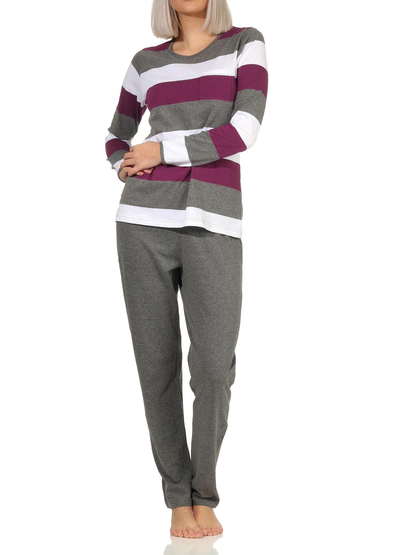 Damen Pyjama Schlafanzug langarm in wunderschöner Block Streifen Optik