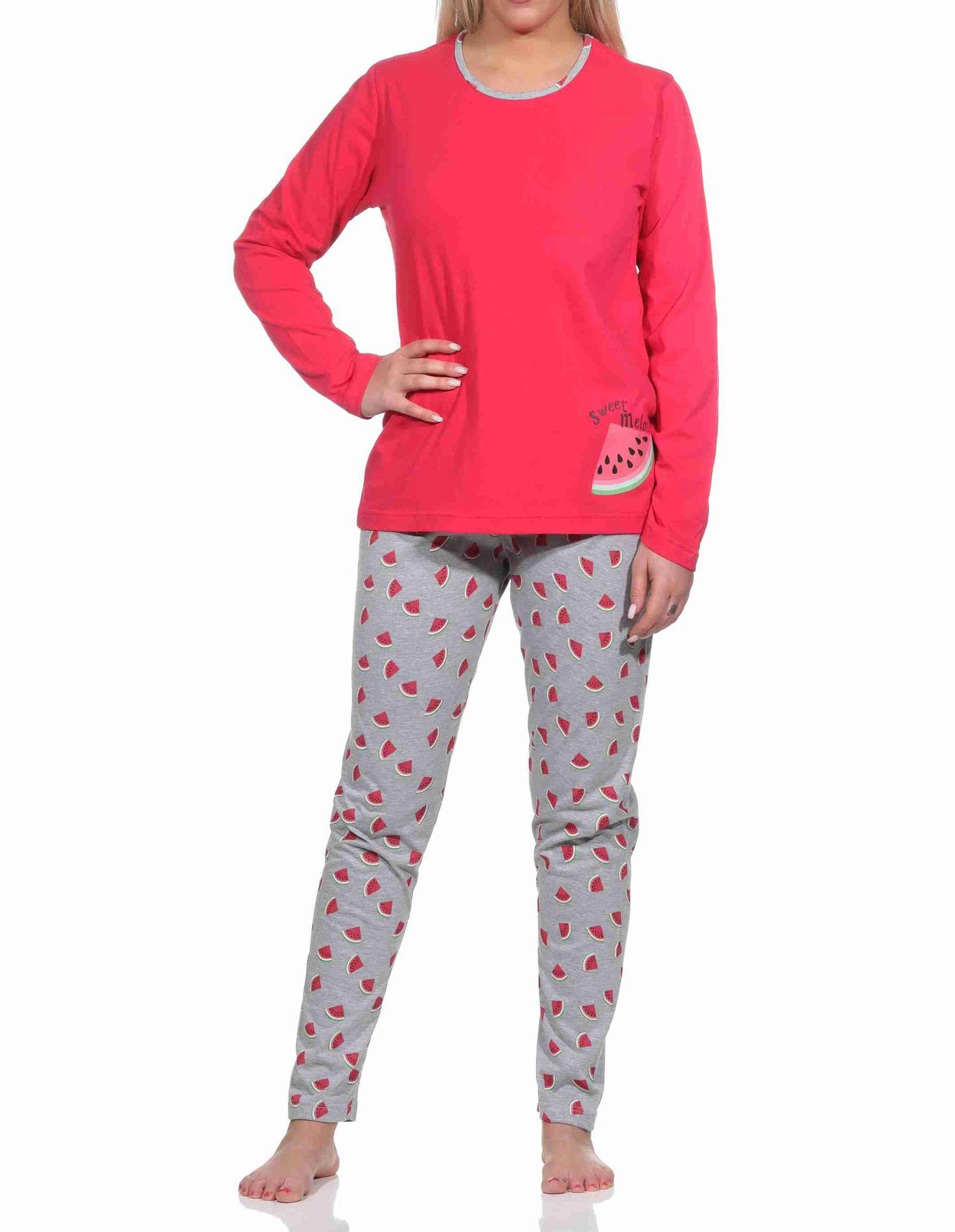 Damen Schlafanzug lang mit Melone als Motiv, Pyjamahose allover bedruckt