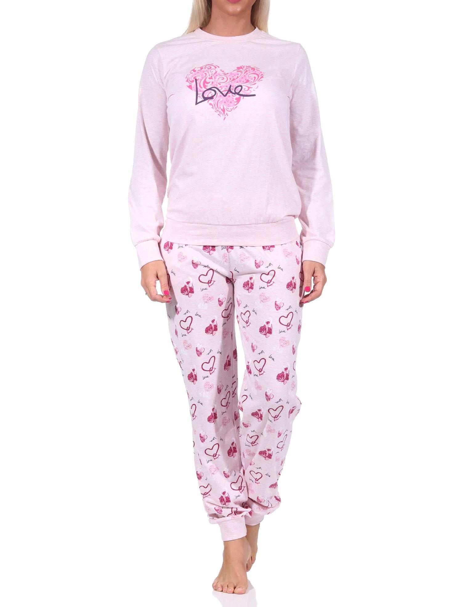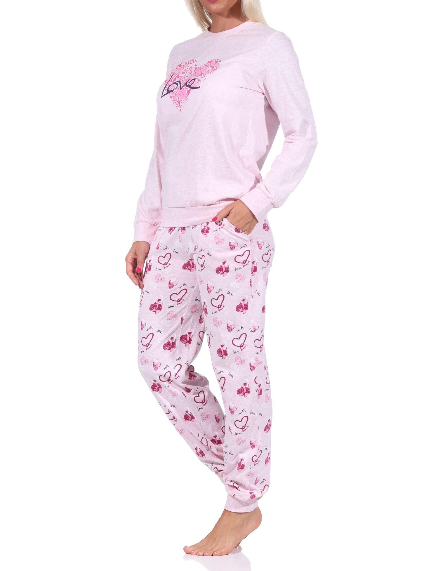 Damen Schlafanzug mit Bündchen in Herz Motiv Optik - auch in Übergrössen - 122 201 90 815