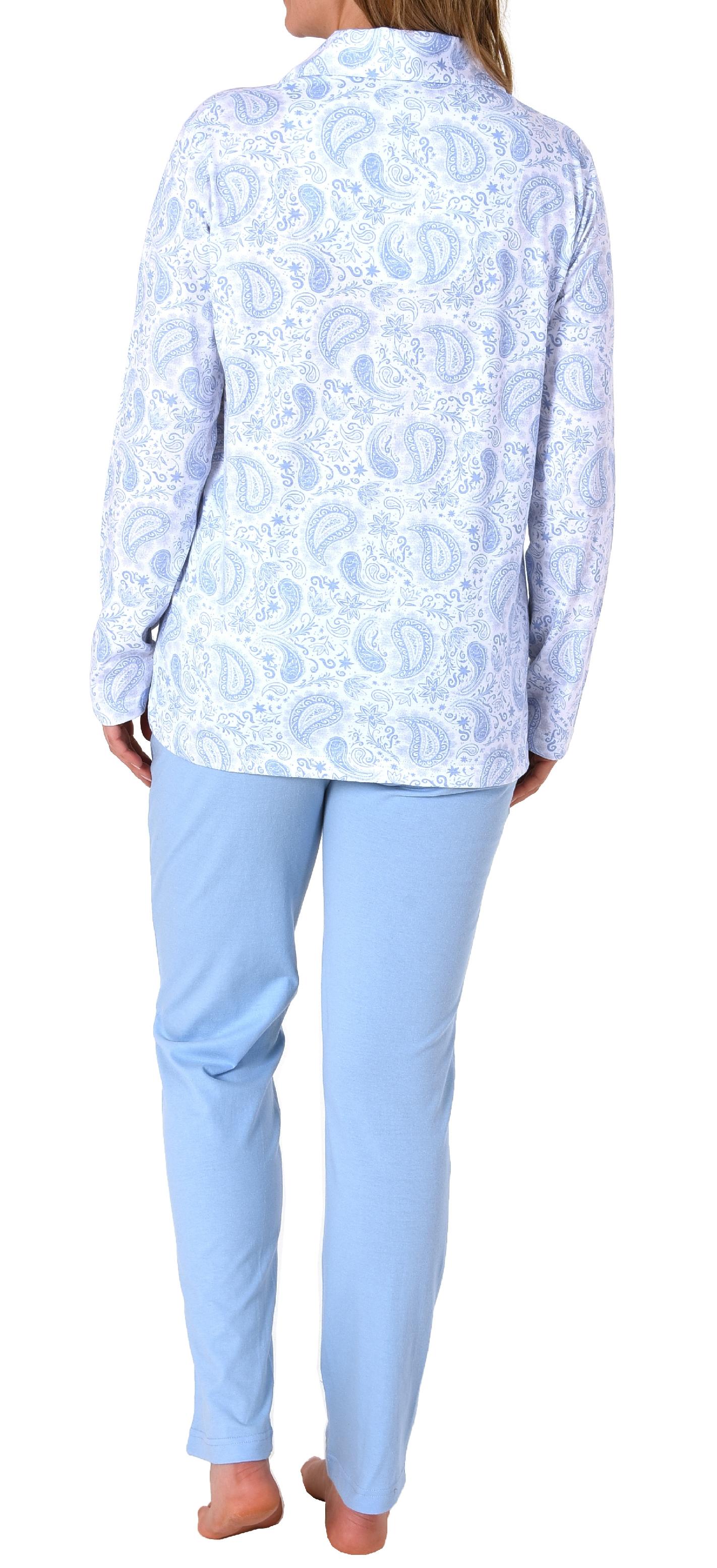Edler Damen Pyjama langarm Schlafanzug zum durchknöpfen in Single Jersey Qualität - 212 201 90 352