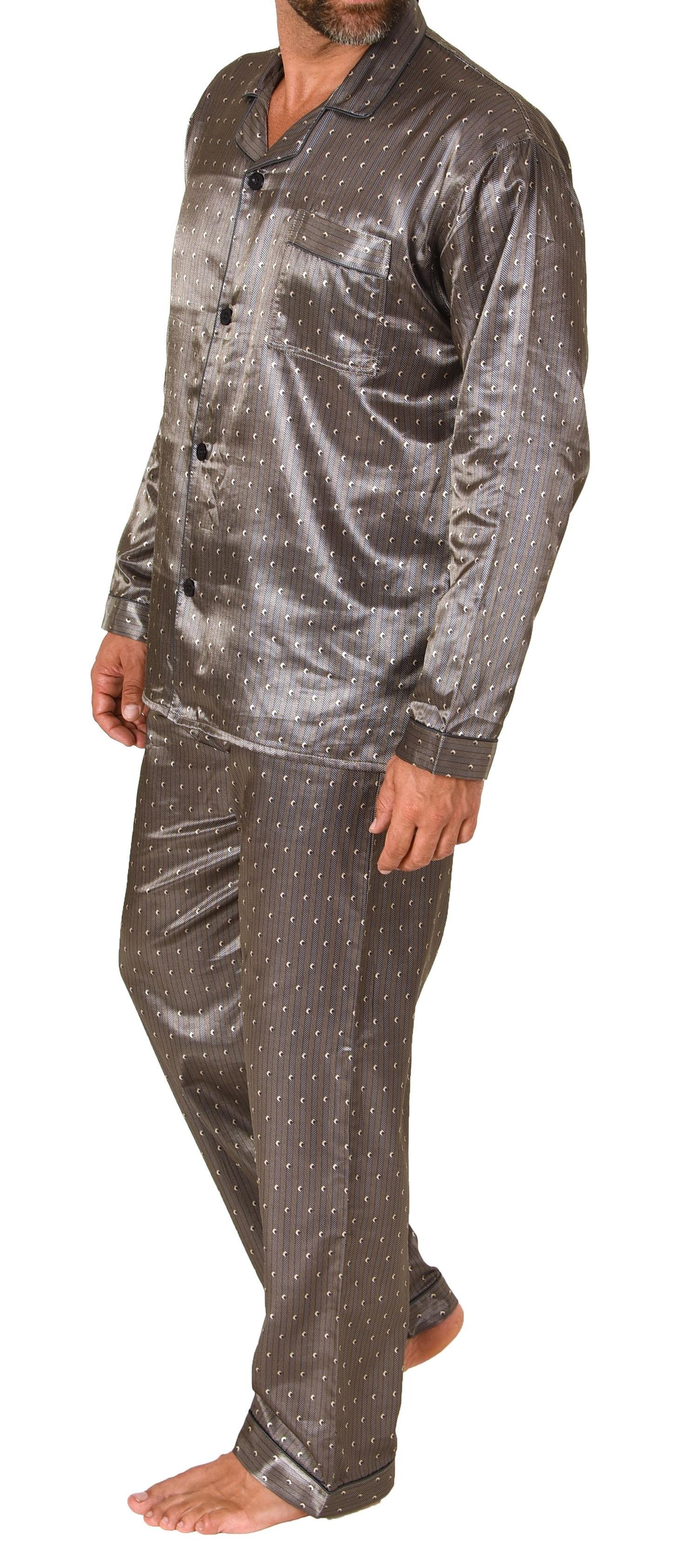 Edler Herren Satin Pyjama, durchknöpfbarer Schlafanzug in Minimal-Optik - 222 101 94 001