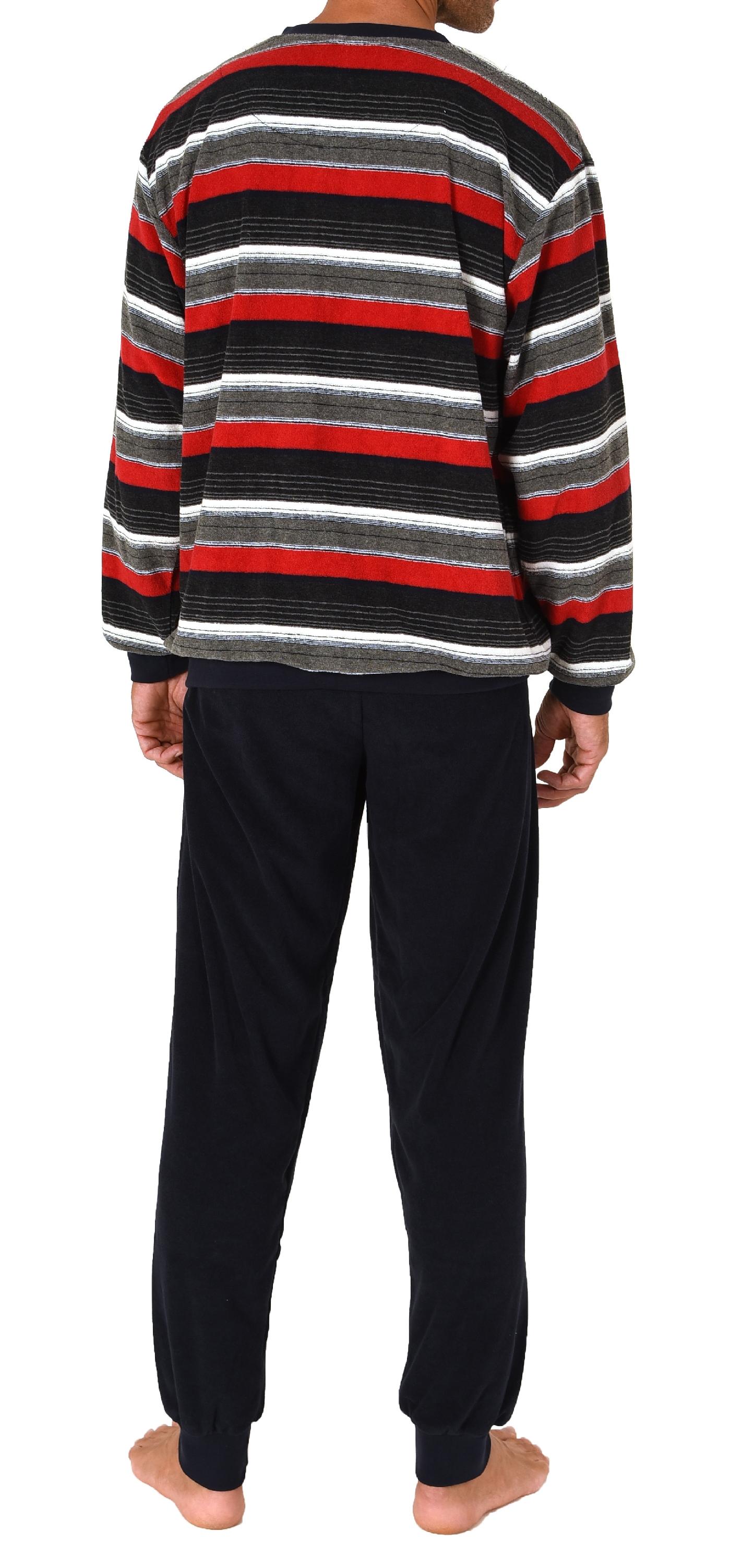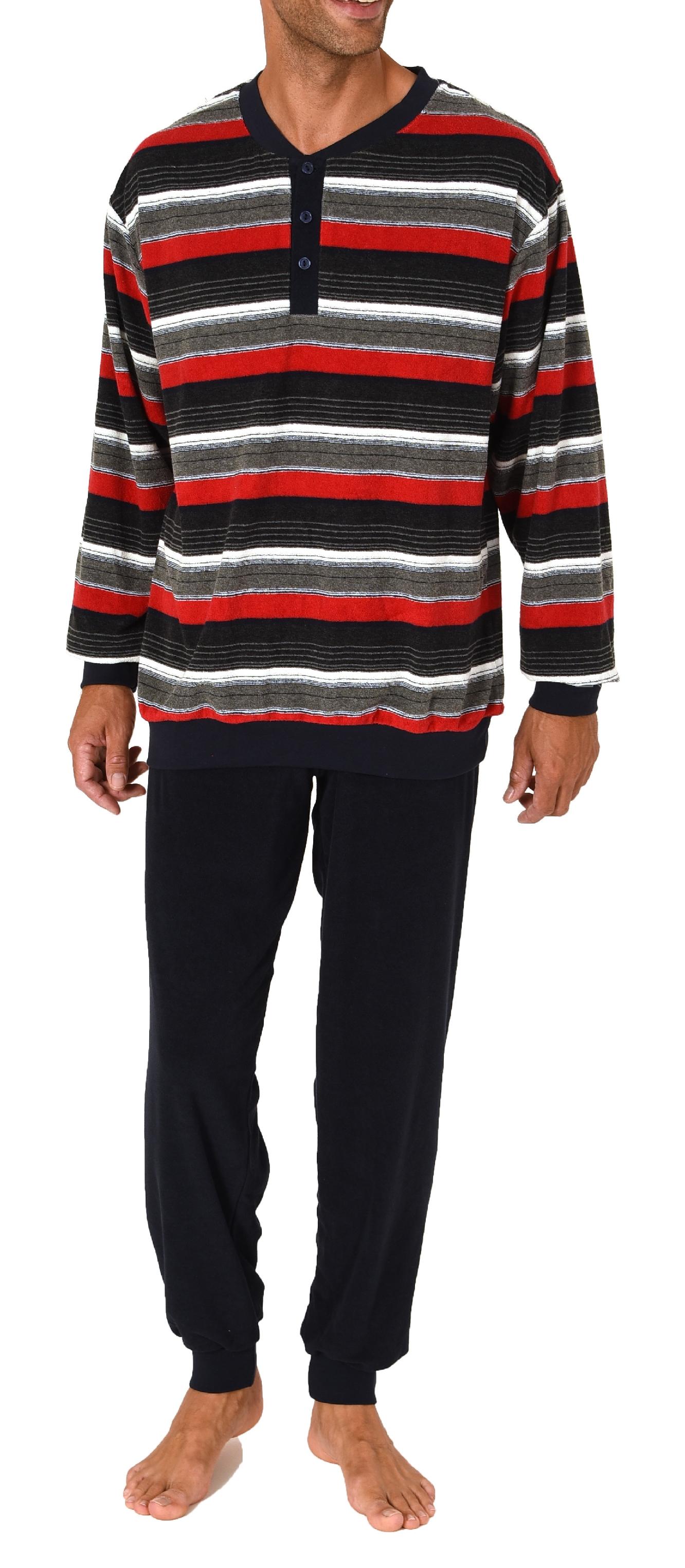 Eleganter Herren Frottee Pyjama langarm Schlafanzug mit Bündchen und Knopfleiste am Hals - 222 101 93 538