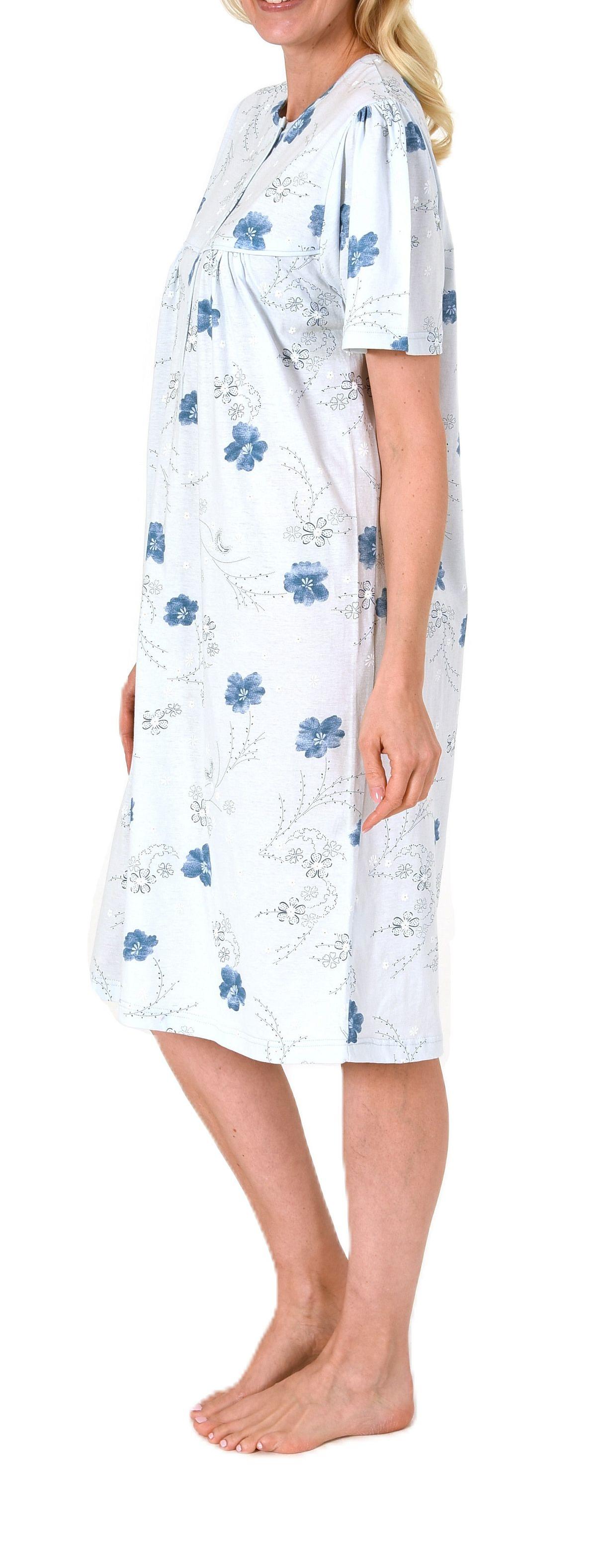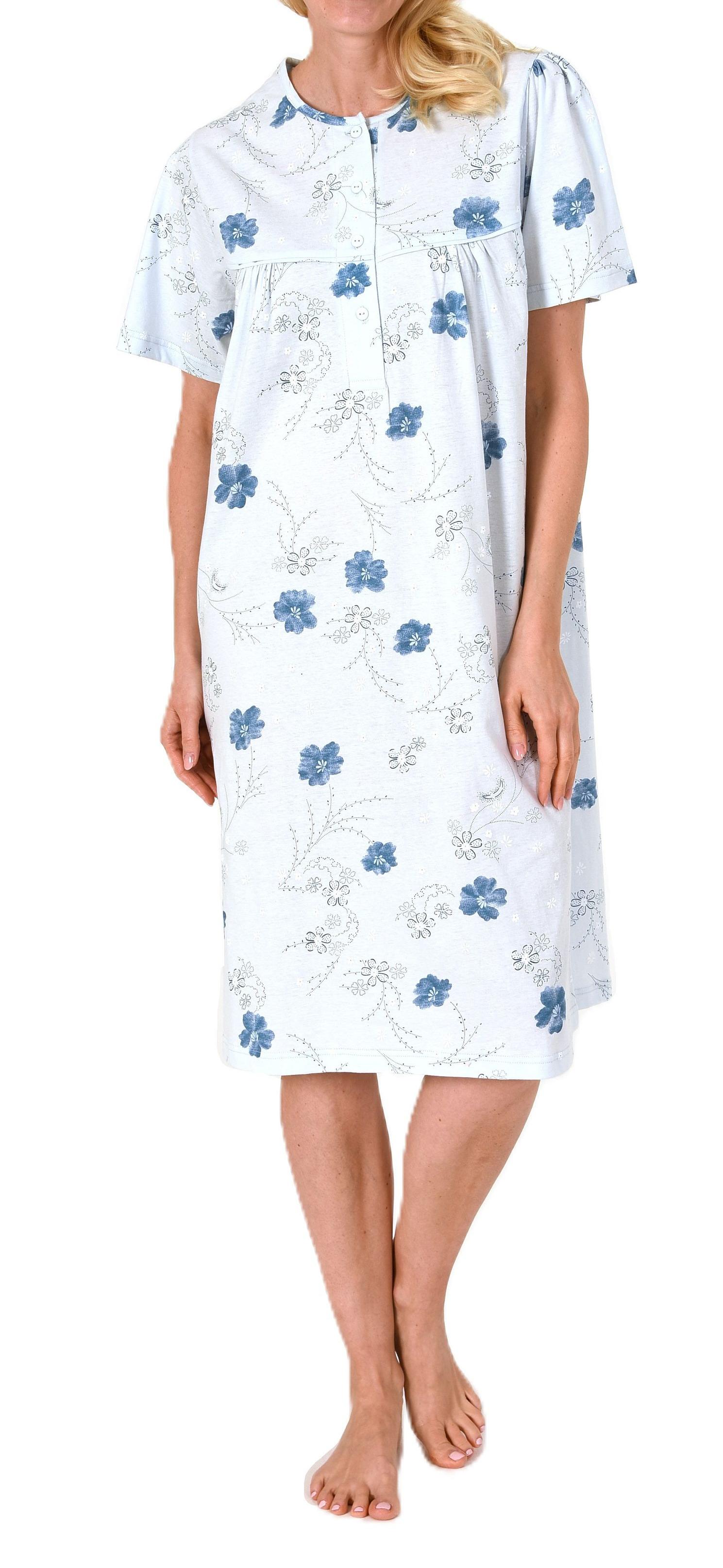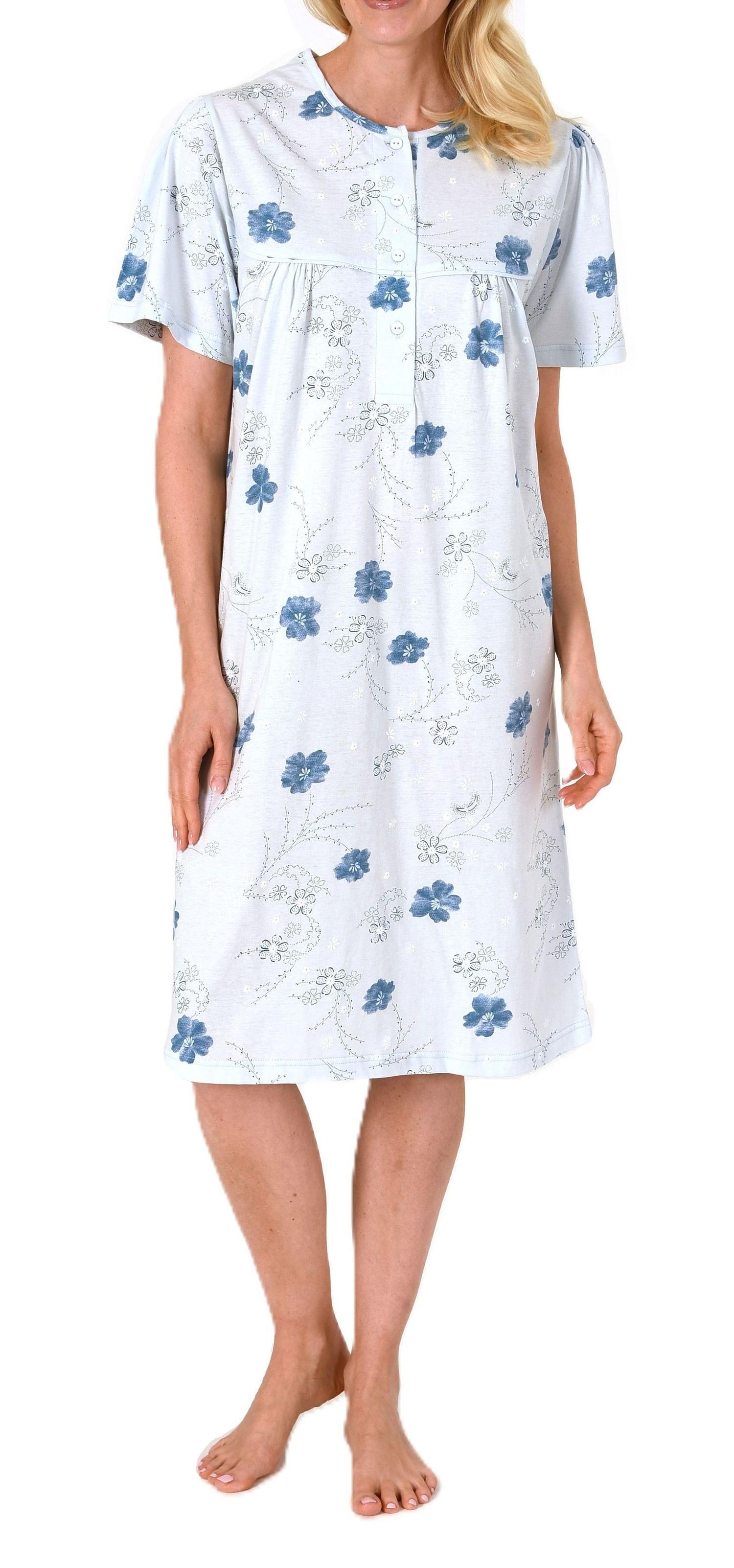 Frauliches kurzarm Damen Nachthemd in klassischer Optik,105 cm Länge, Knopfleiste am Hals