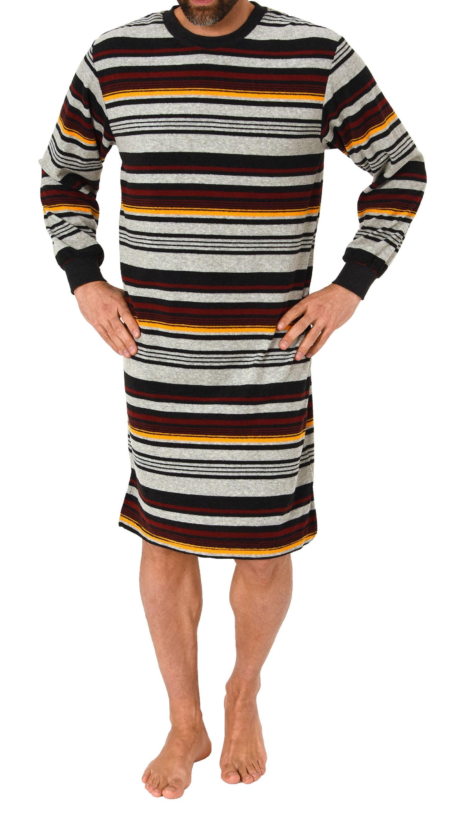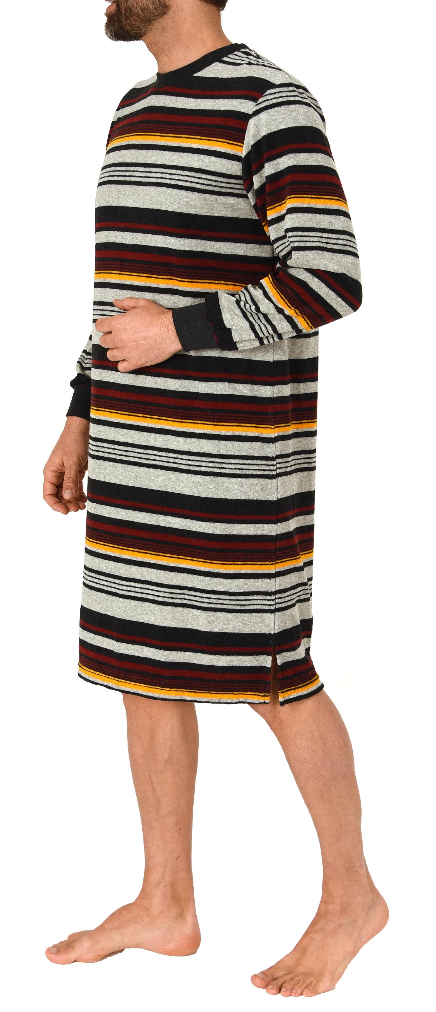 Herren Frottee Nachthemd langarm mit Bündchen in gestreifter Optik - auch in Übergrößen
