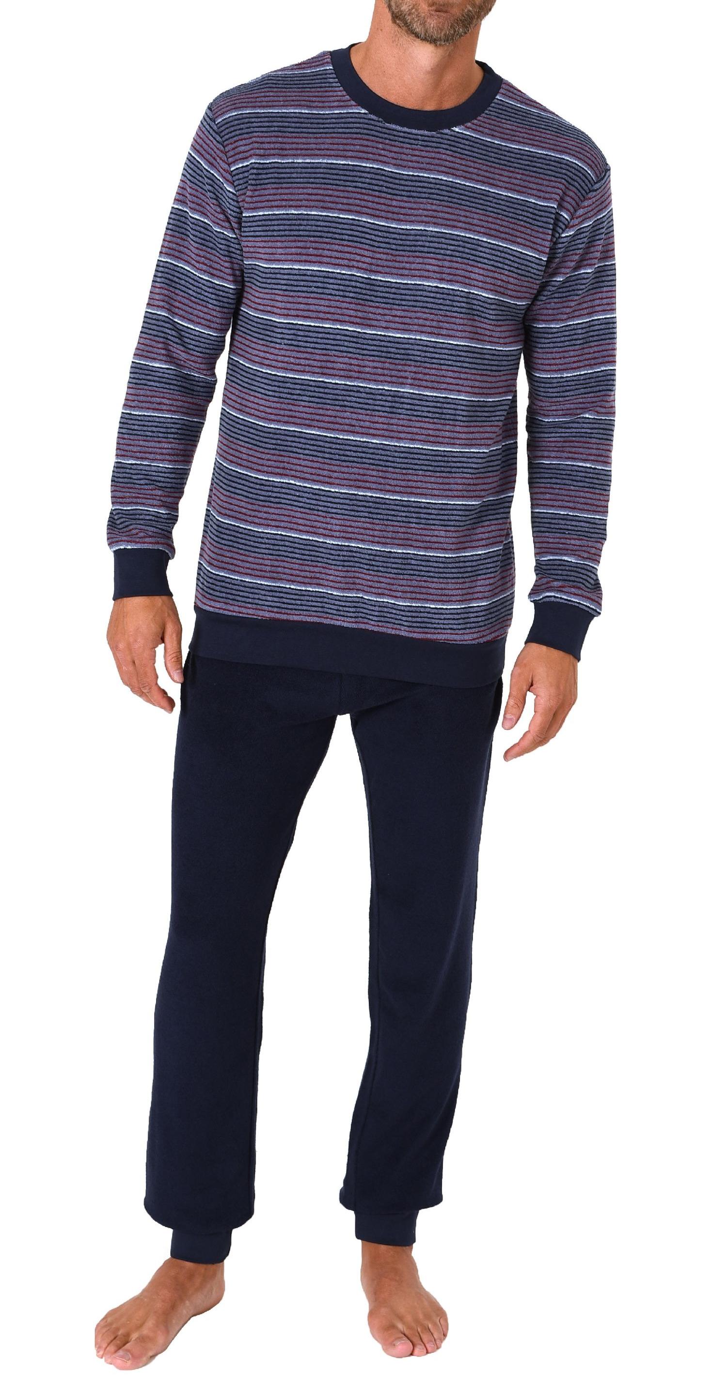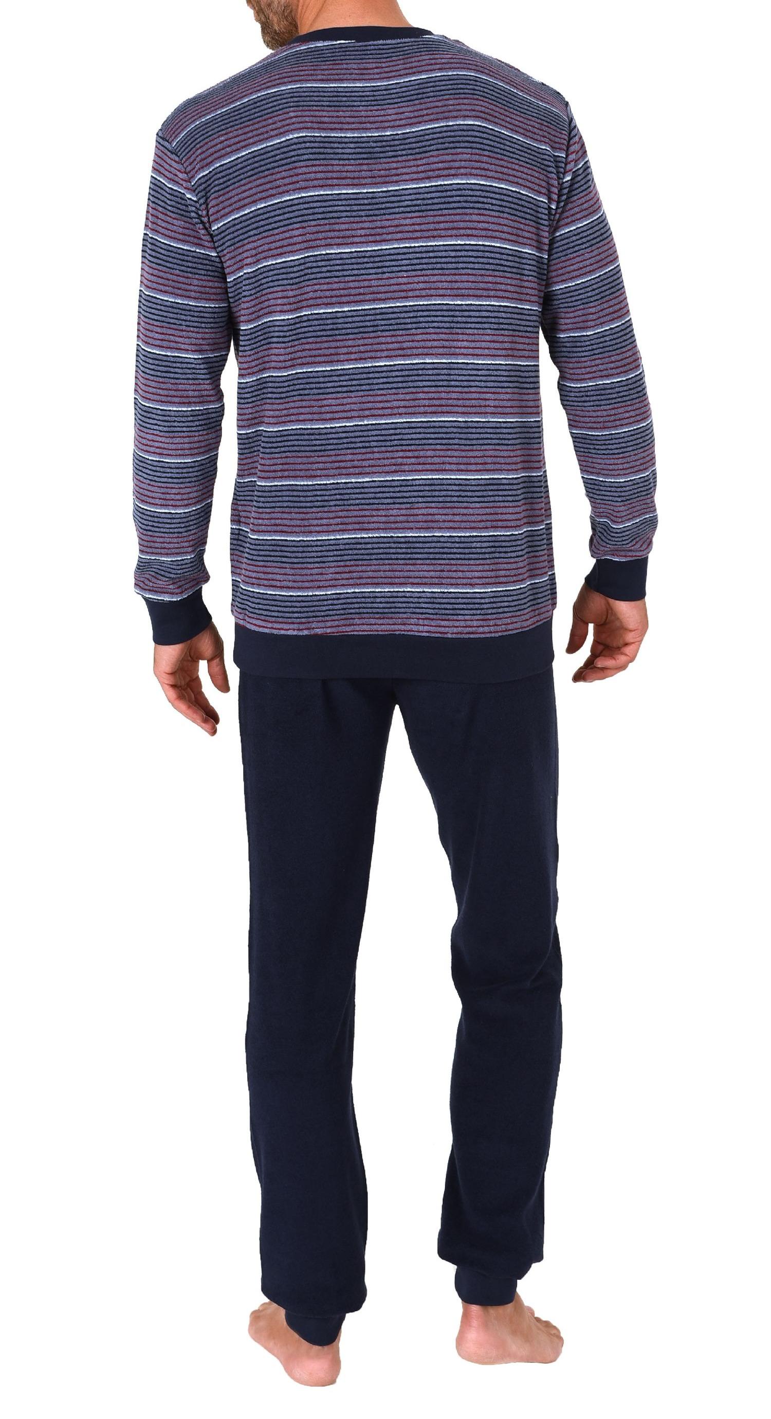Herren Frottee Pyjama Schlafanzug lang mit Bündchen in Streifenoptik - auch in Übergrössen - 222 101 13 851