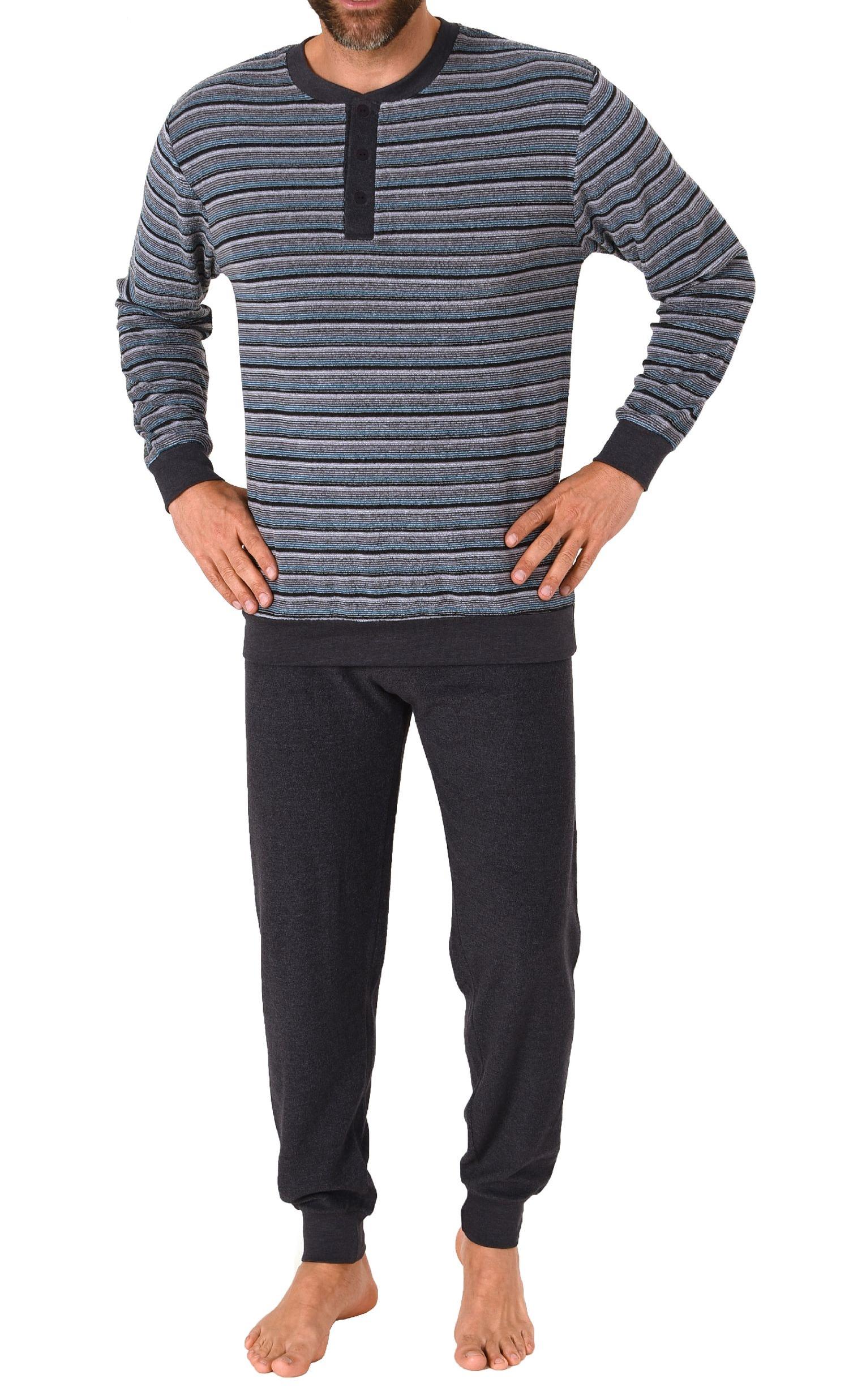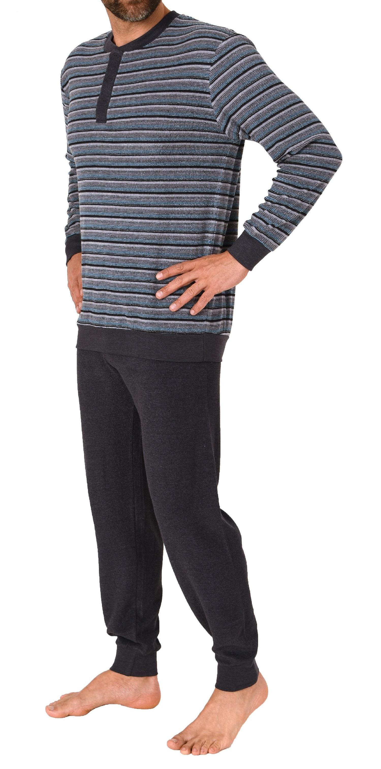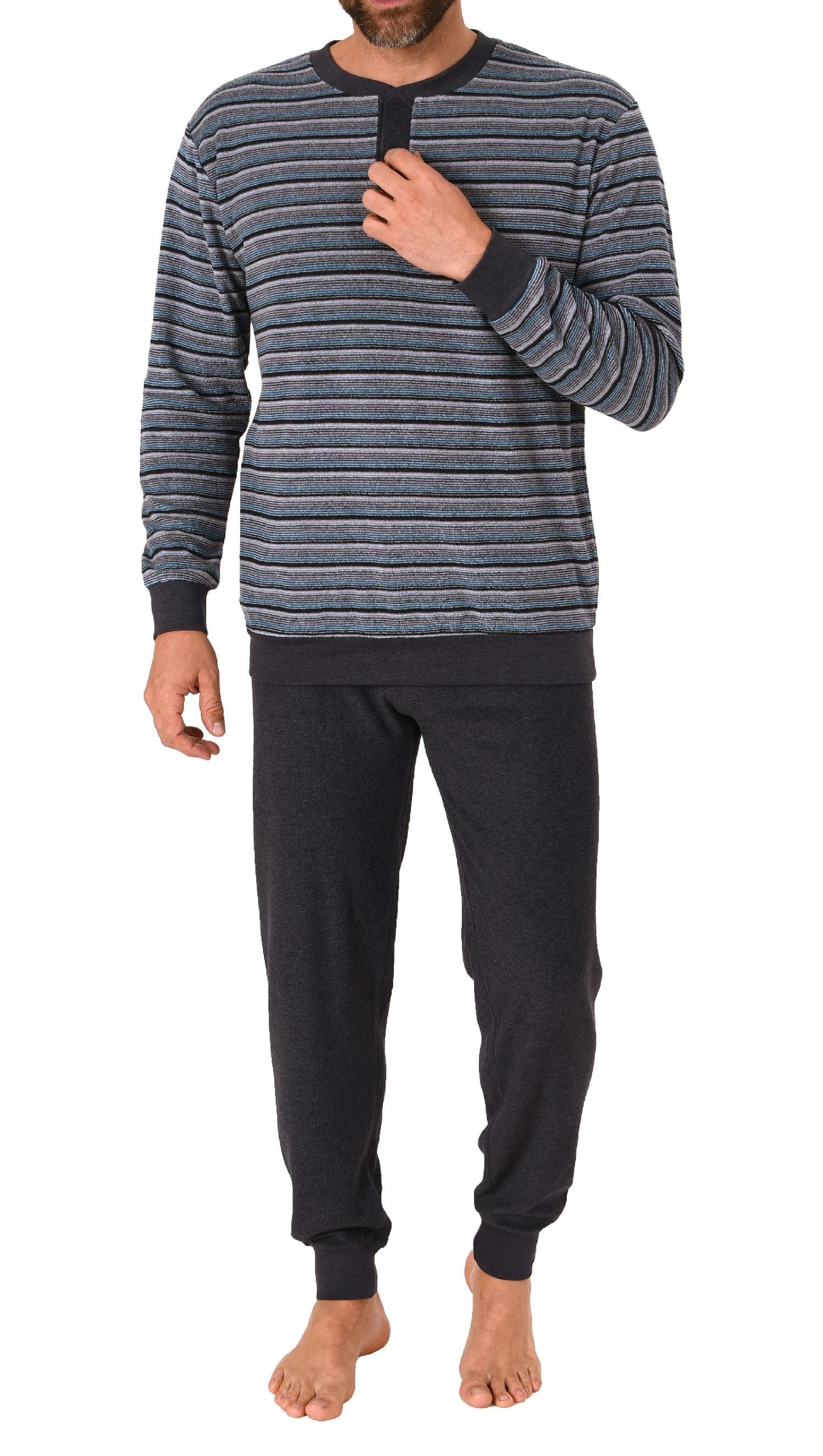 Herren Frottee Pyjama Schlafanzug mit Bündchen in eleganter Streifenoptik - auch in Übergrössen - 212 101 13 706