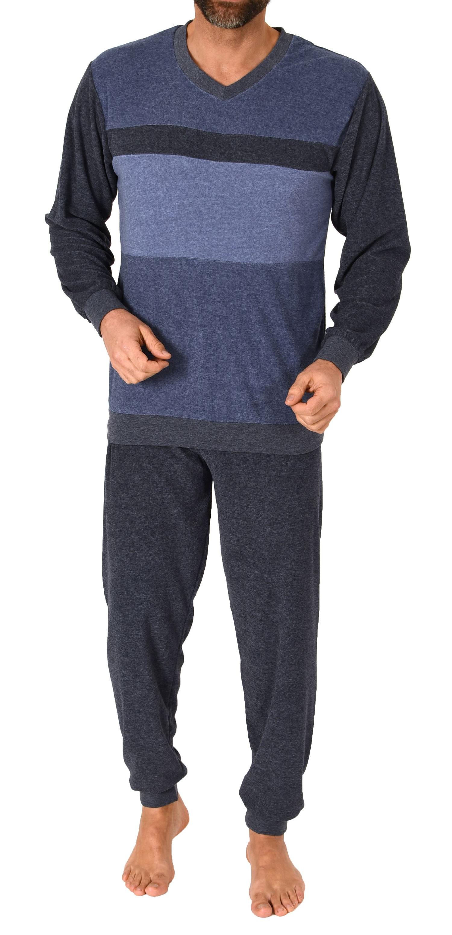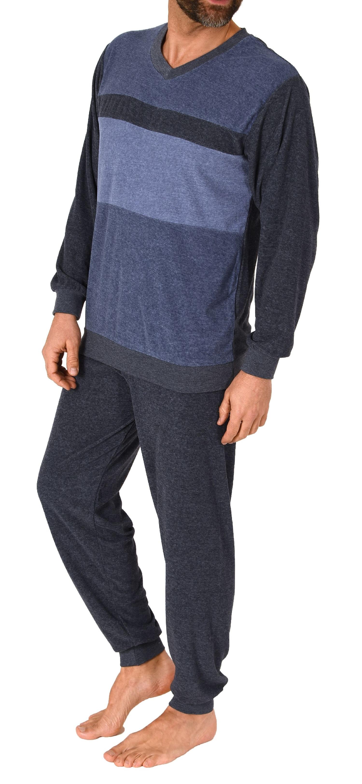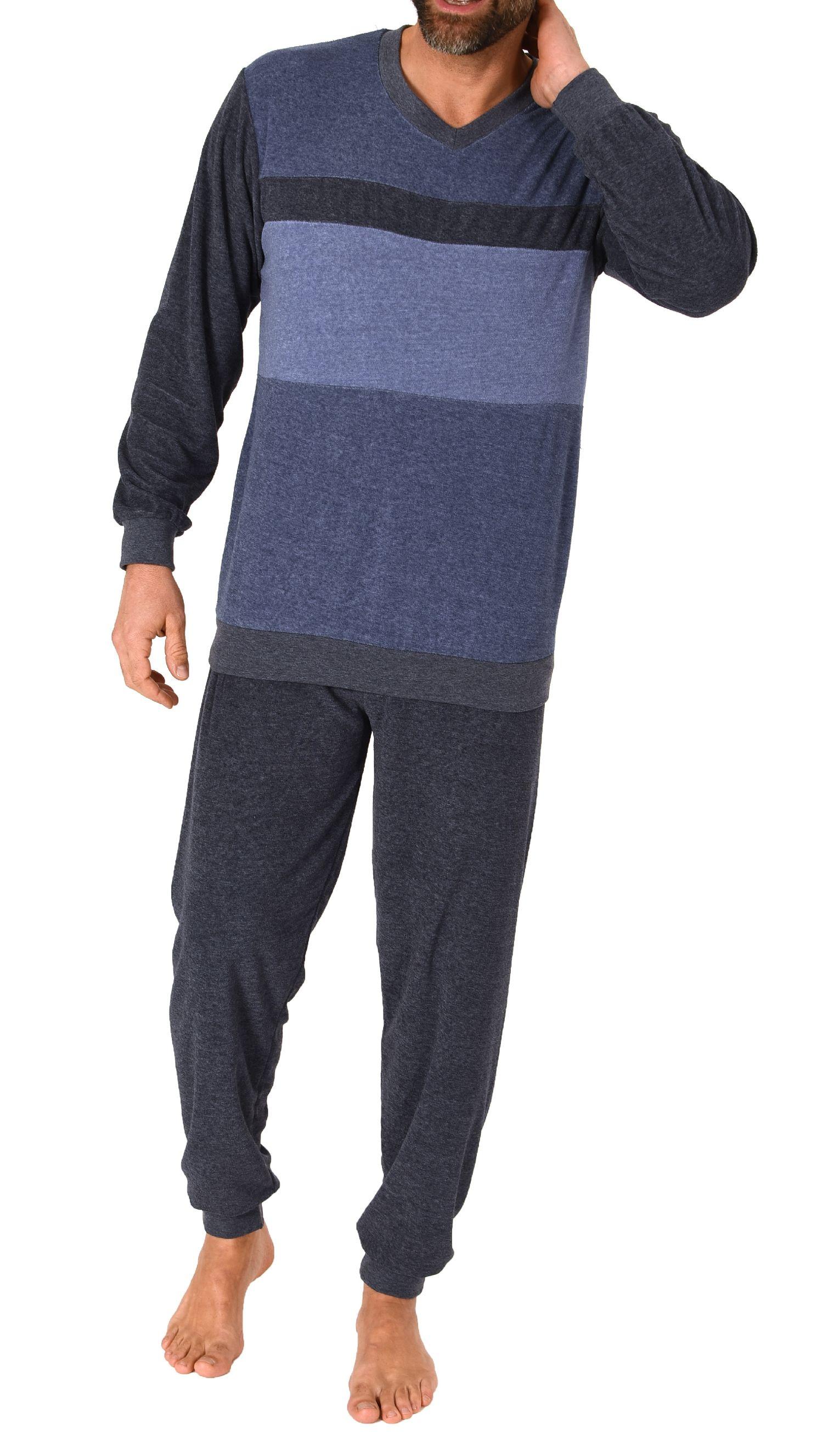 Herren Frottee Schlafanzug langarm mit Bündchen in Blockstreifenoptik - auch in Übergrößen - 222 101 93 486