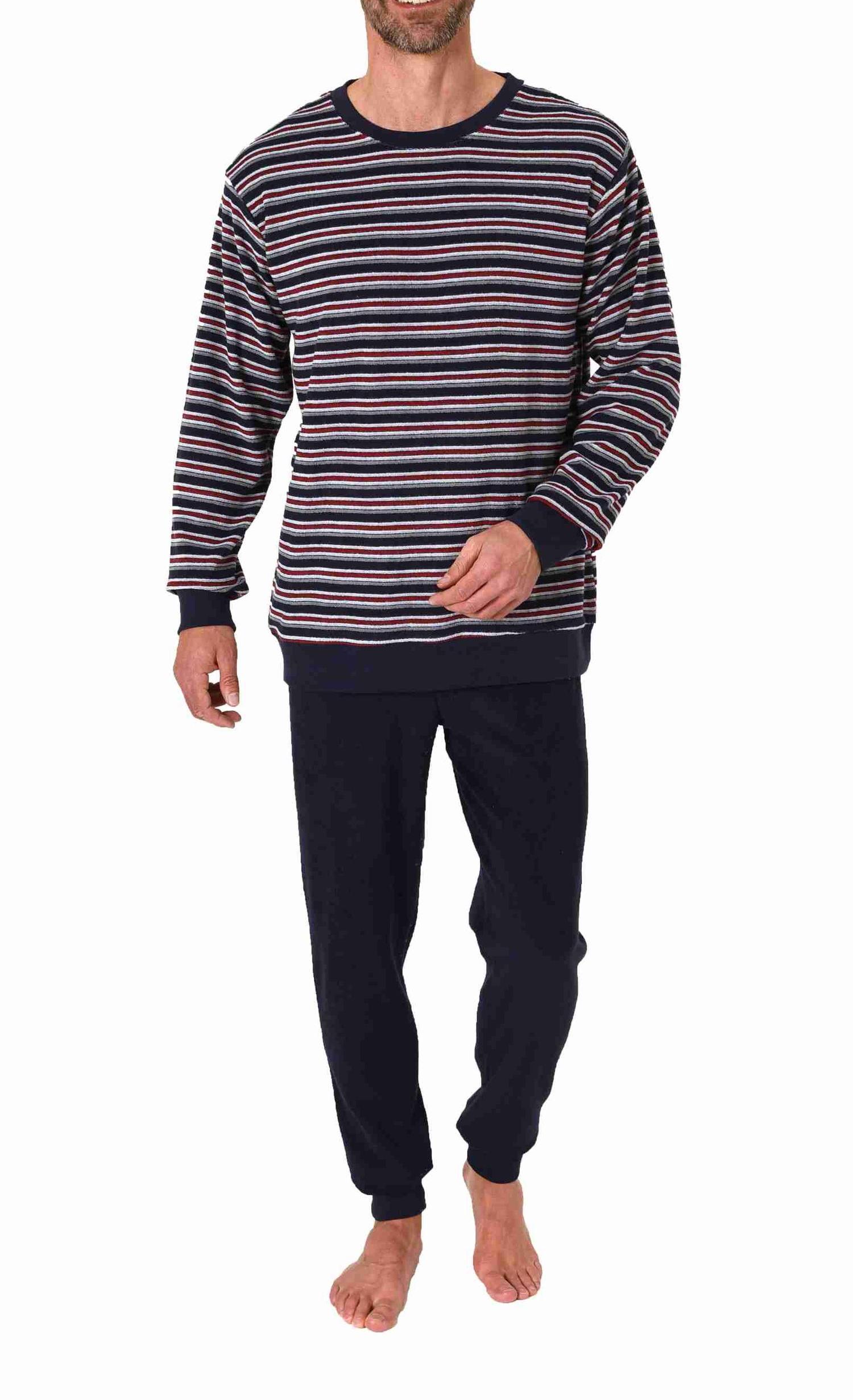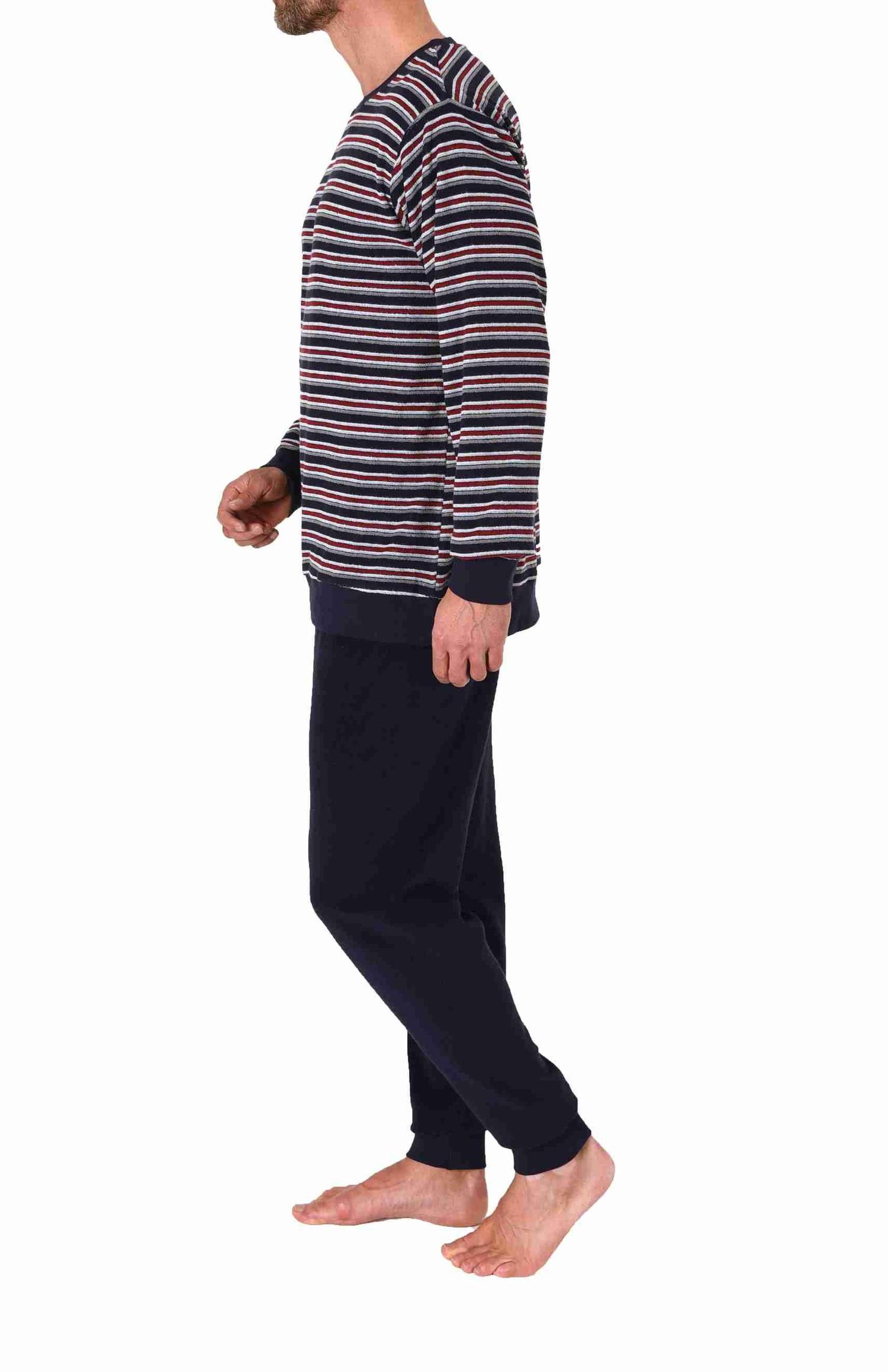 Herren Frottee Schlafanzug langarm mit Bündchen in gestreifter Optik - auch in Übergrößen