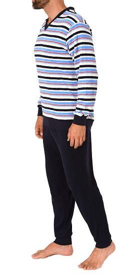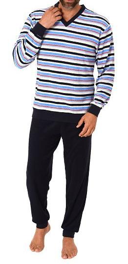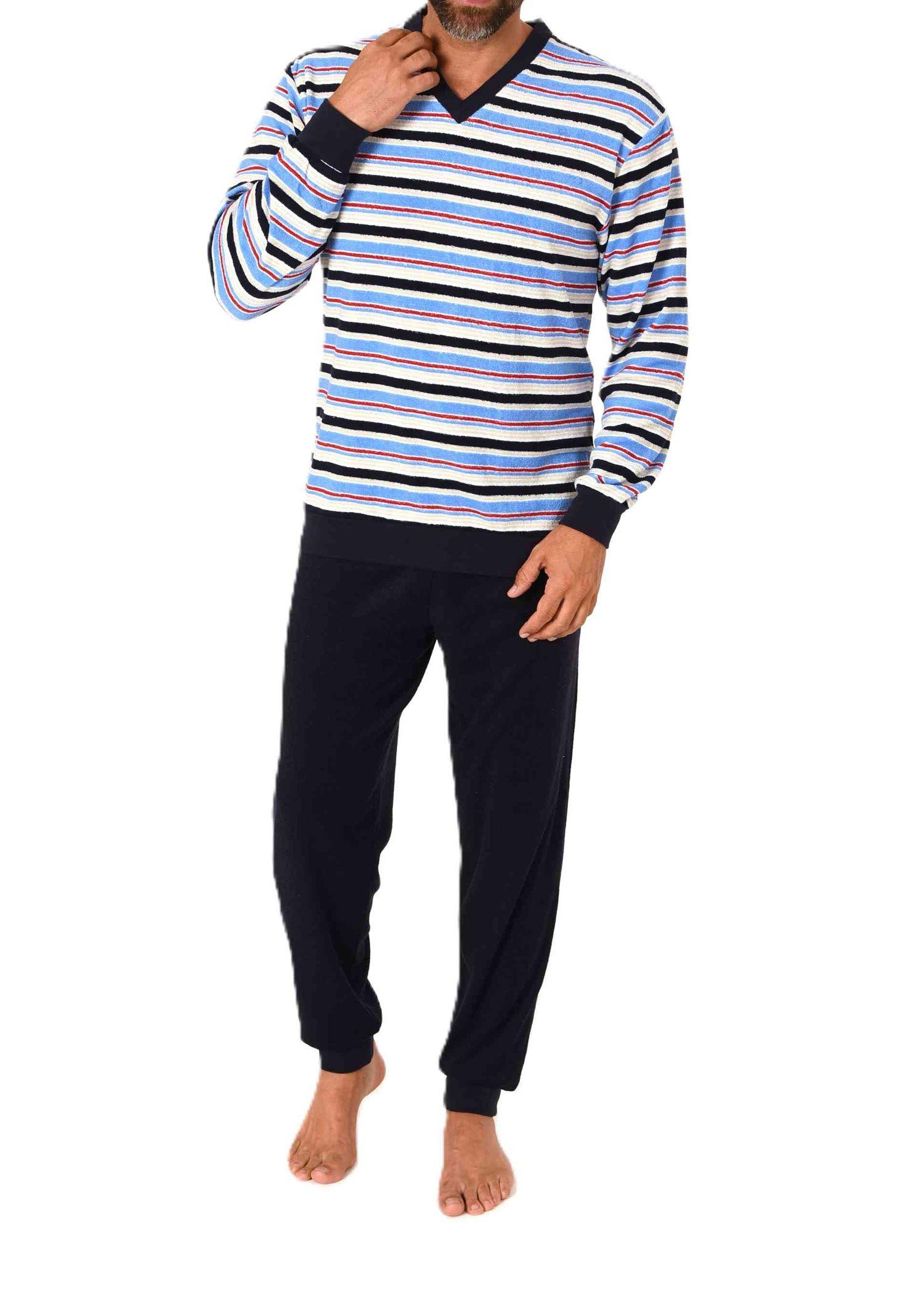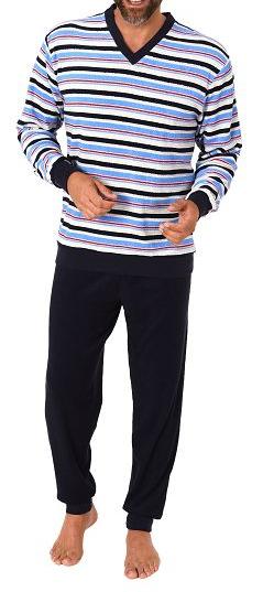 Herren Frottee Schlafanzug langarm mit Bündchen in gestreifter Optik - auch in Übergrößen