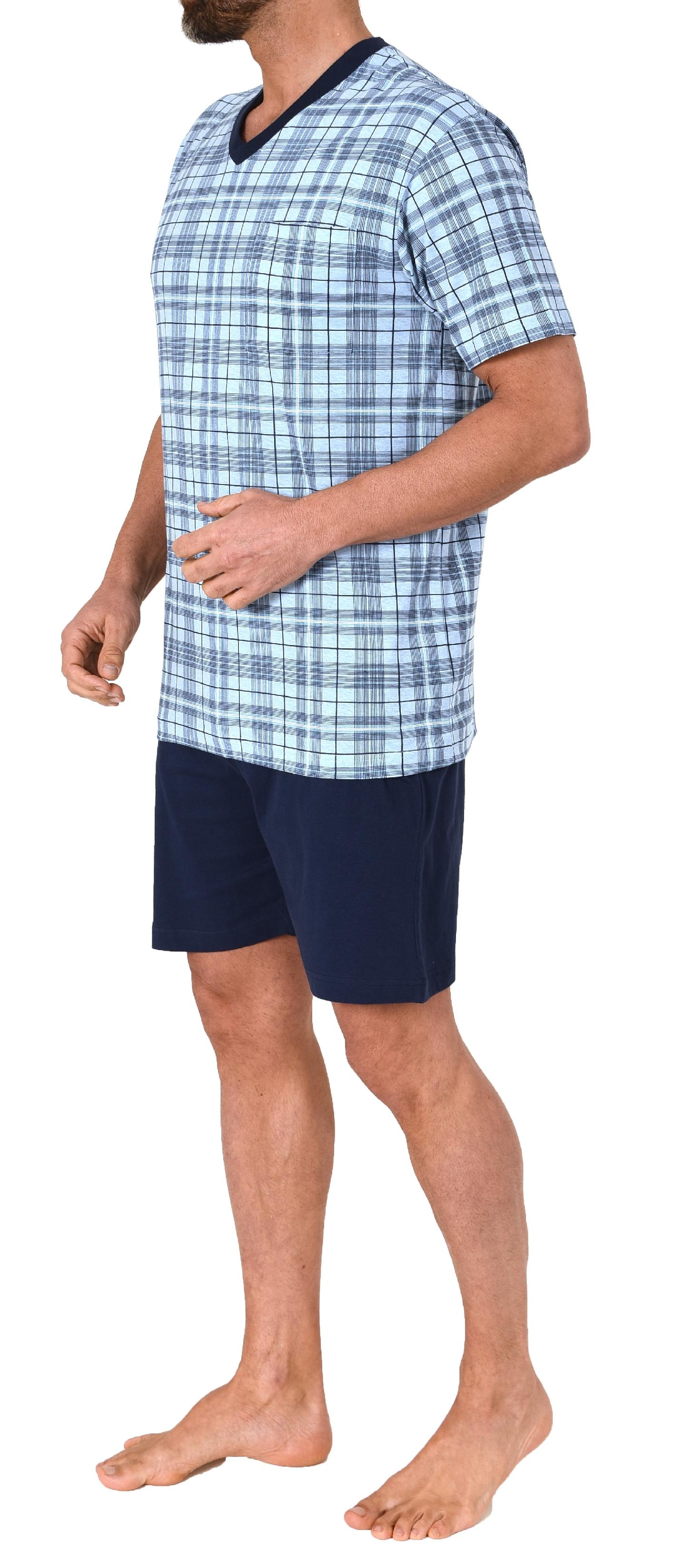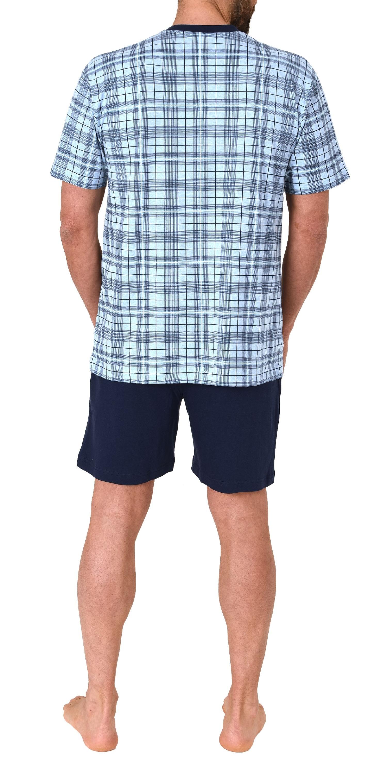 Herren kurzarm Schlafanzug Shorty Pyjama aus softem Jersey und karierten Pyjama Oberteil - 123 105 90 445