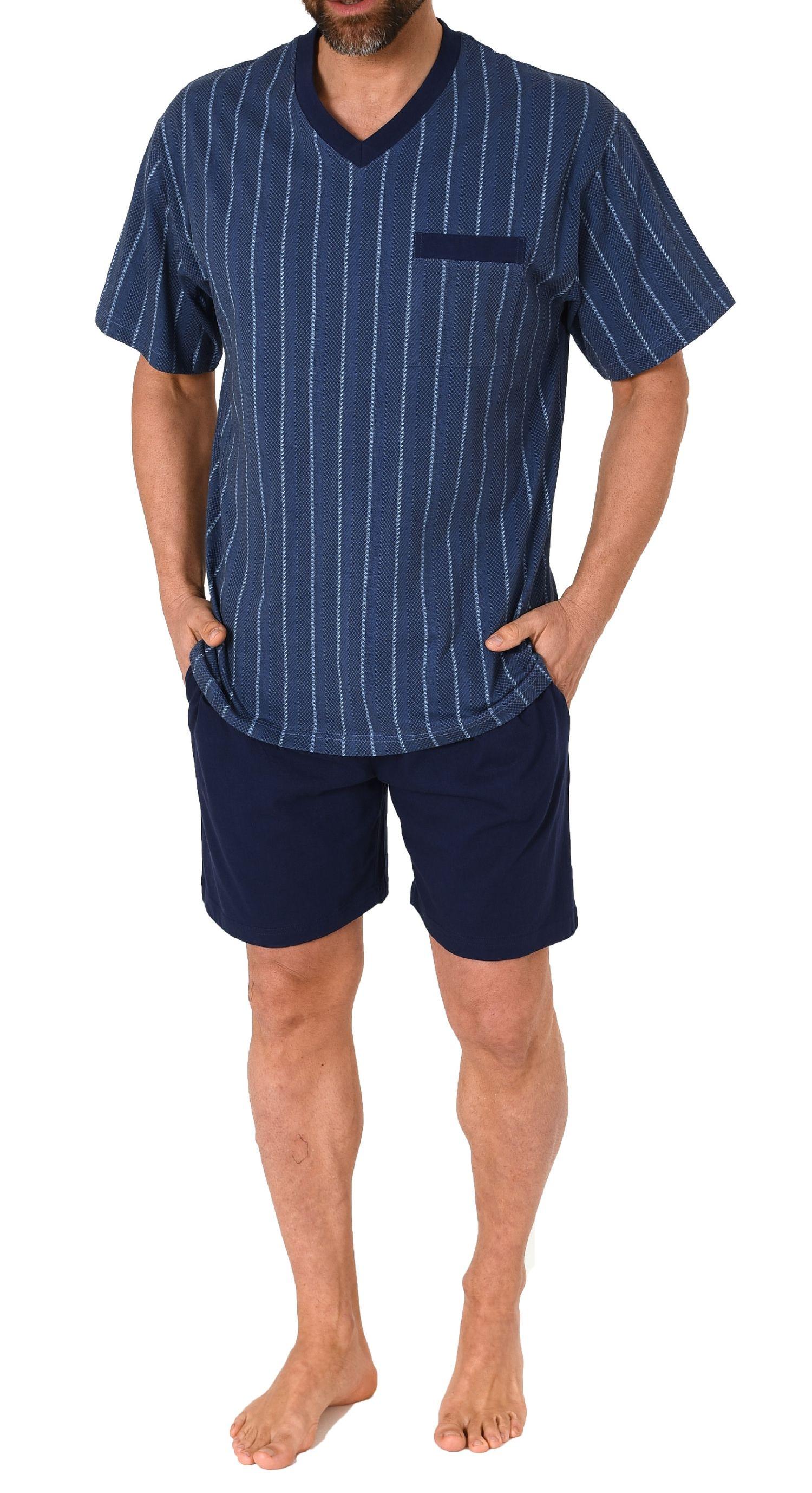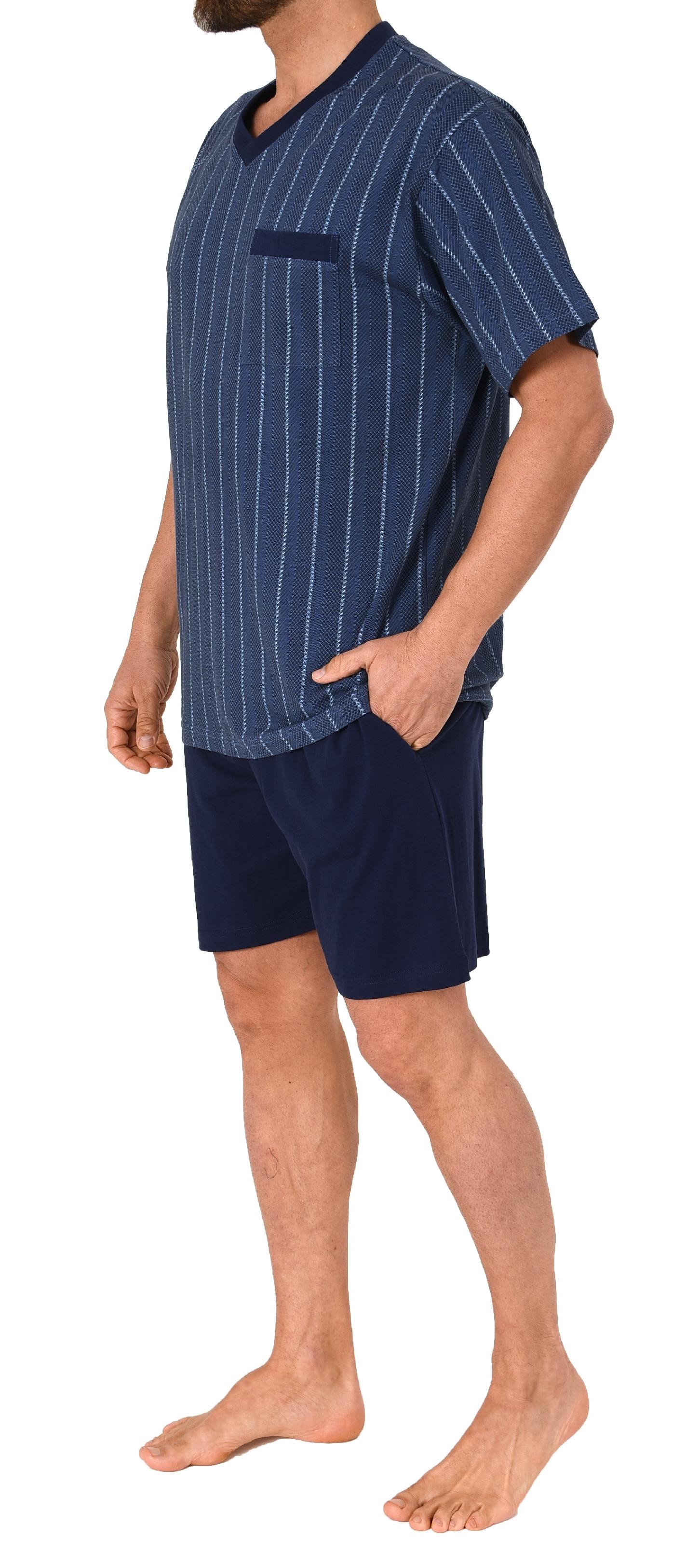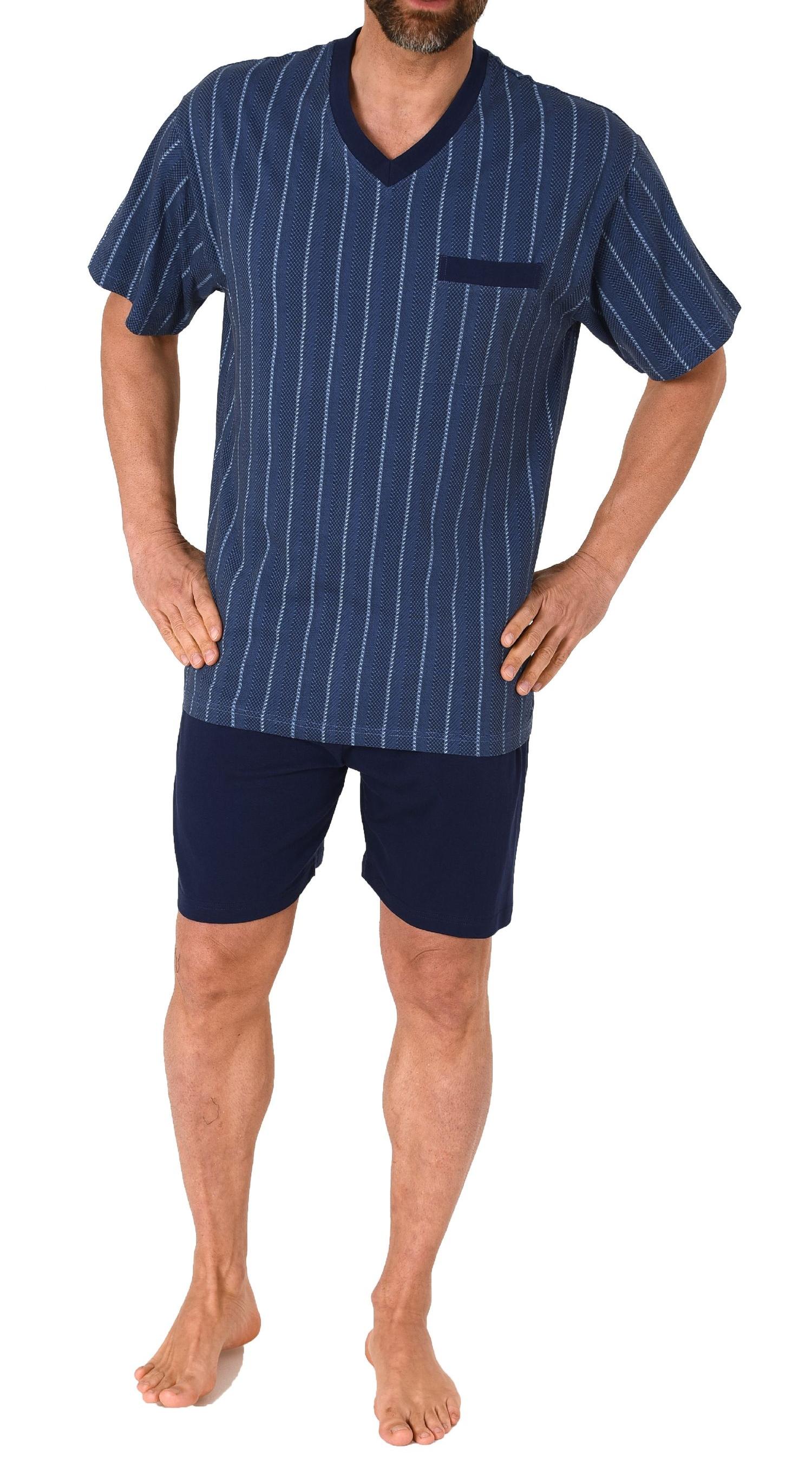 Herren kurzarm Schlafanzug Shorty Pyjama in Streifenoptik - auch in Übergrössen - 122 105 90 518