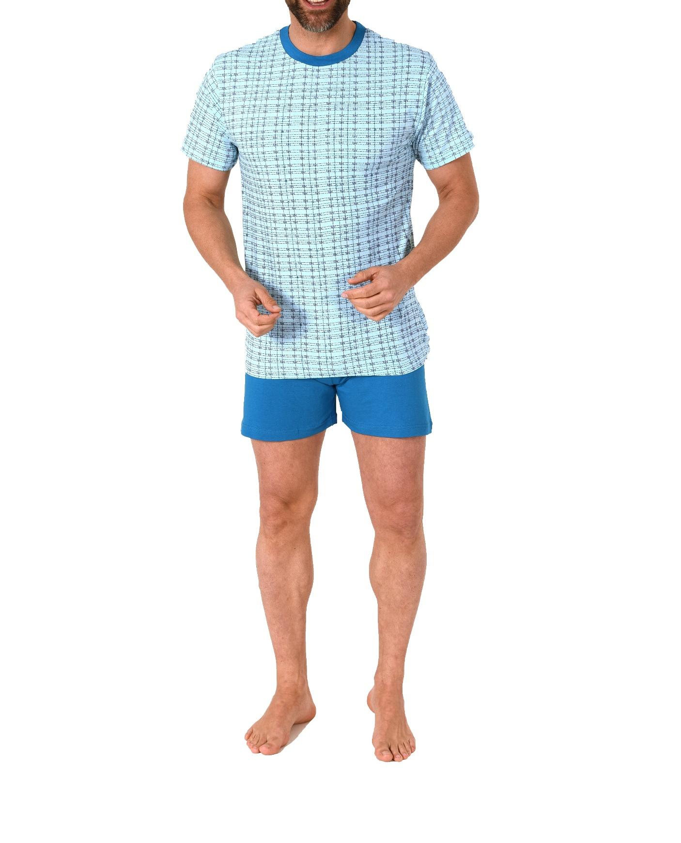 Herren kurzarm Schlafanzug Shorty Pyjama mit Rundhals in eleganter Optik - 122 105 10 811