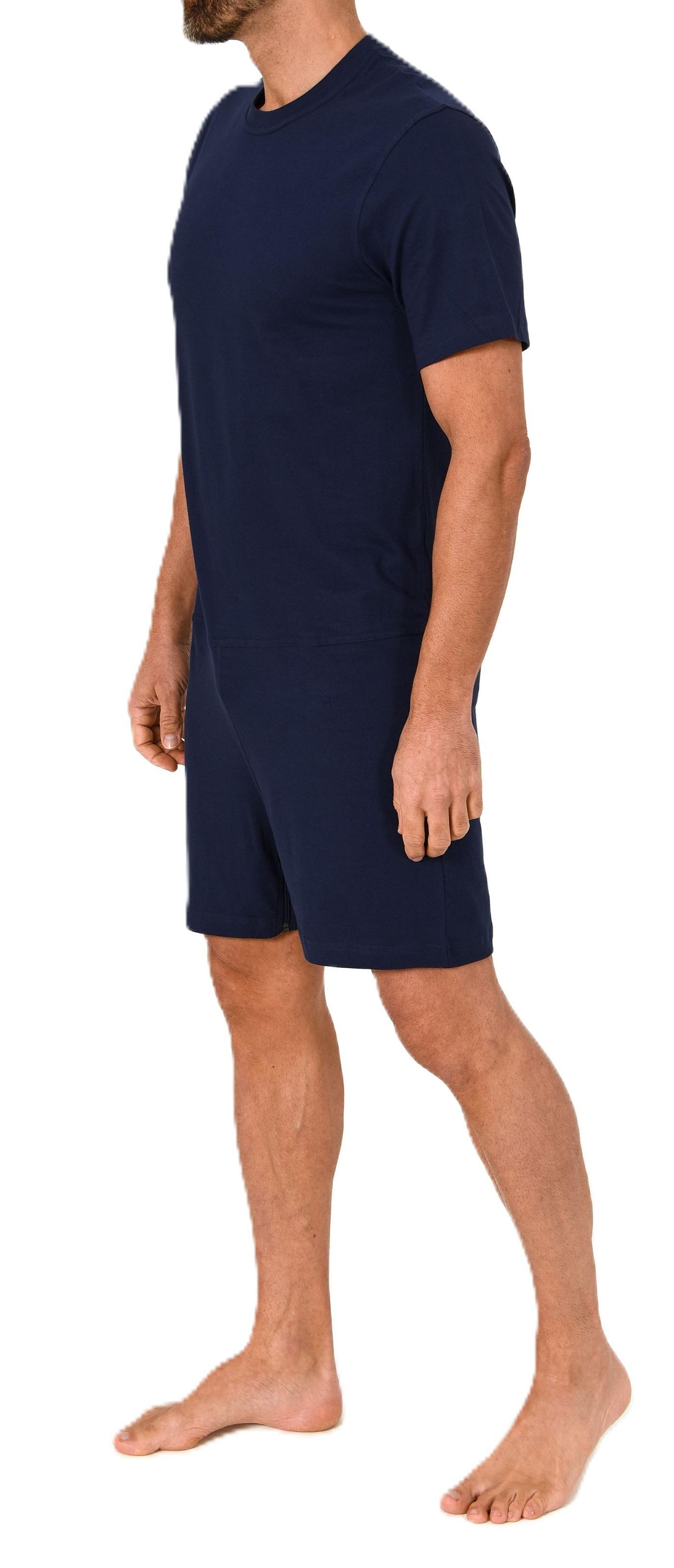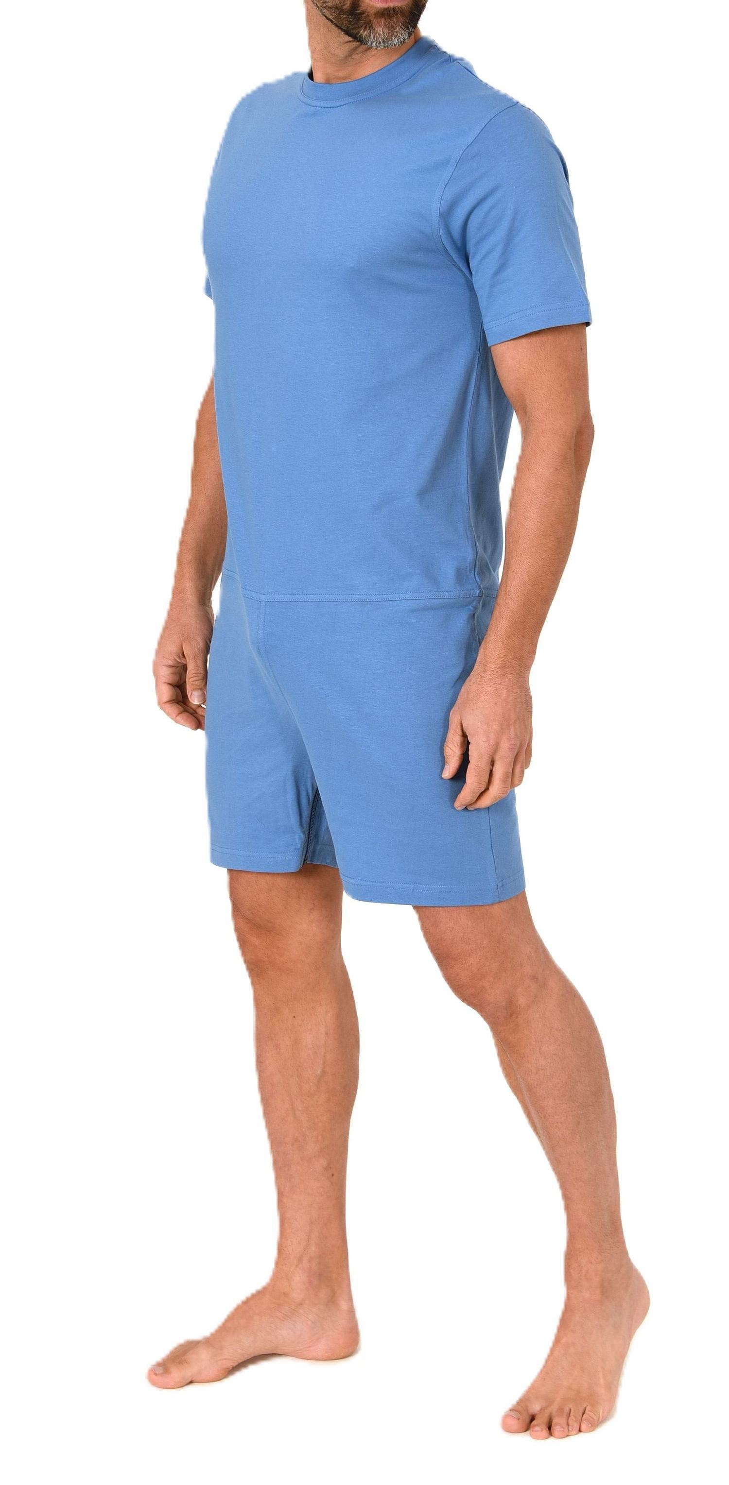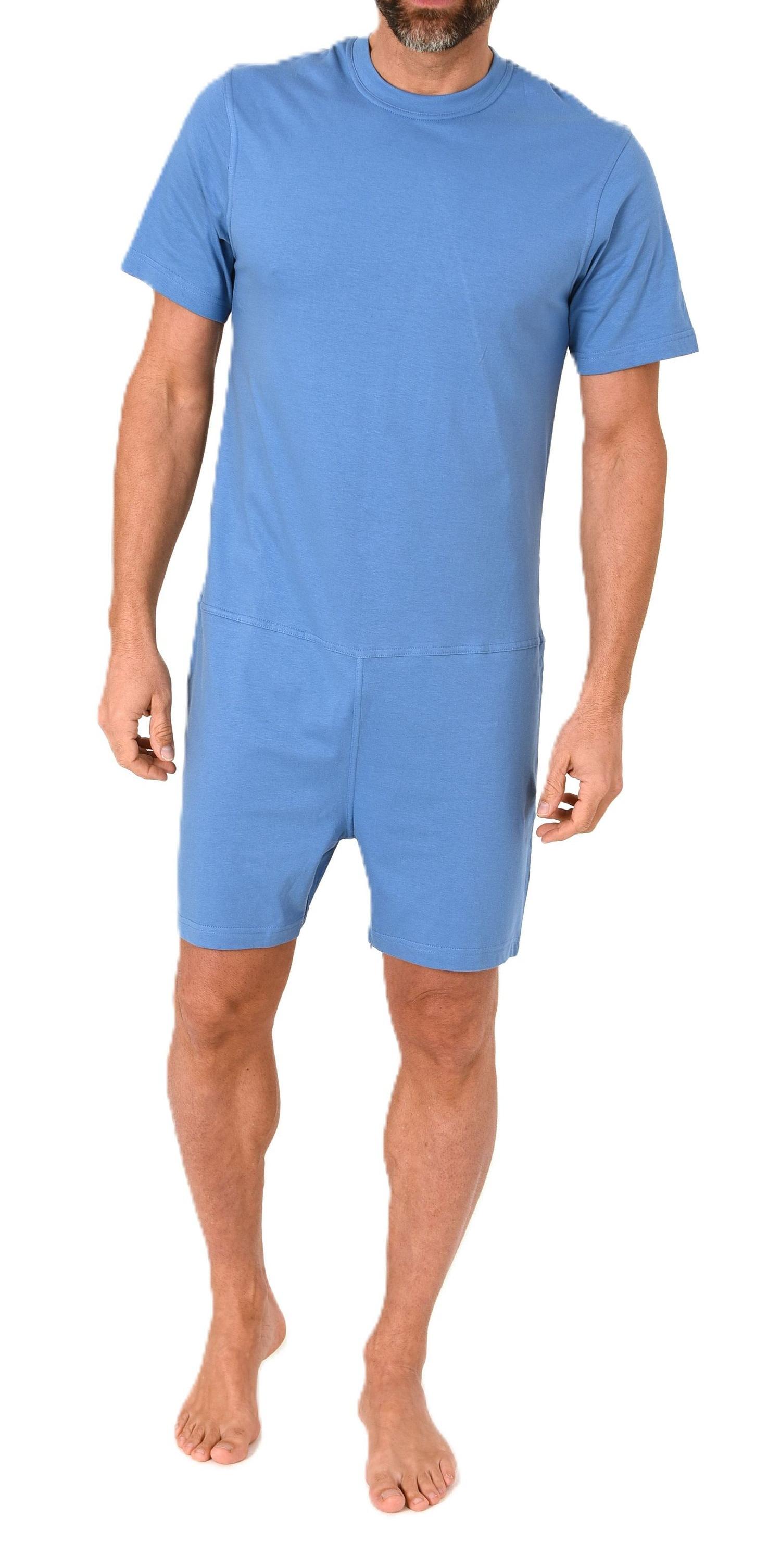 Herren Pflegeoverall kurzarm Einteiler Schlafanzug mit Reißverschluss am Bein