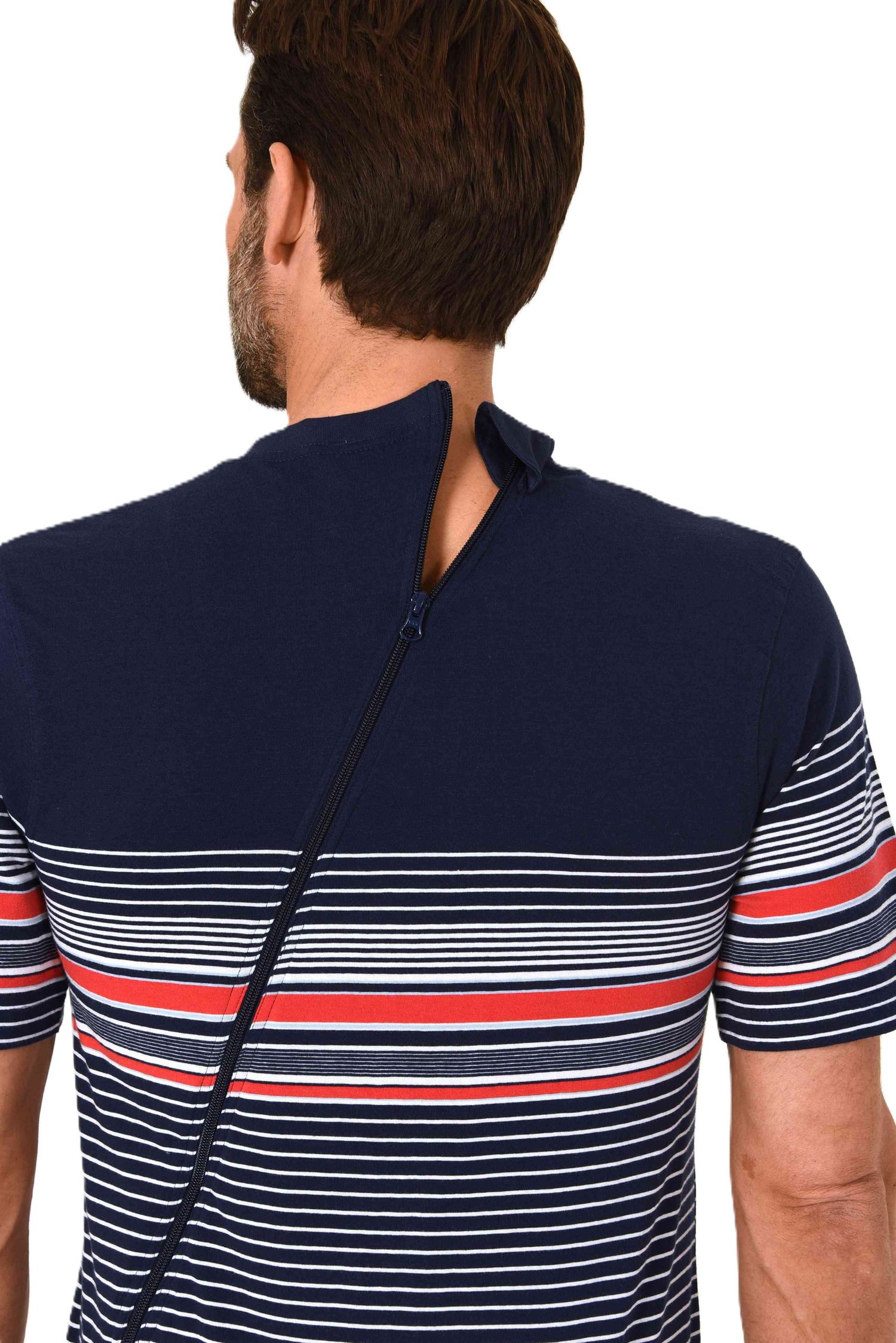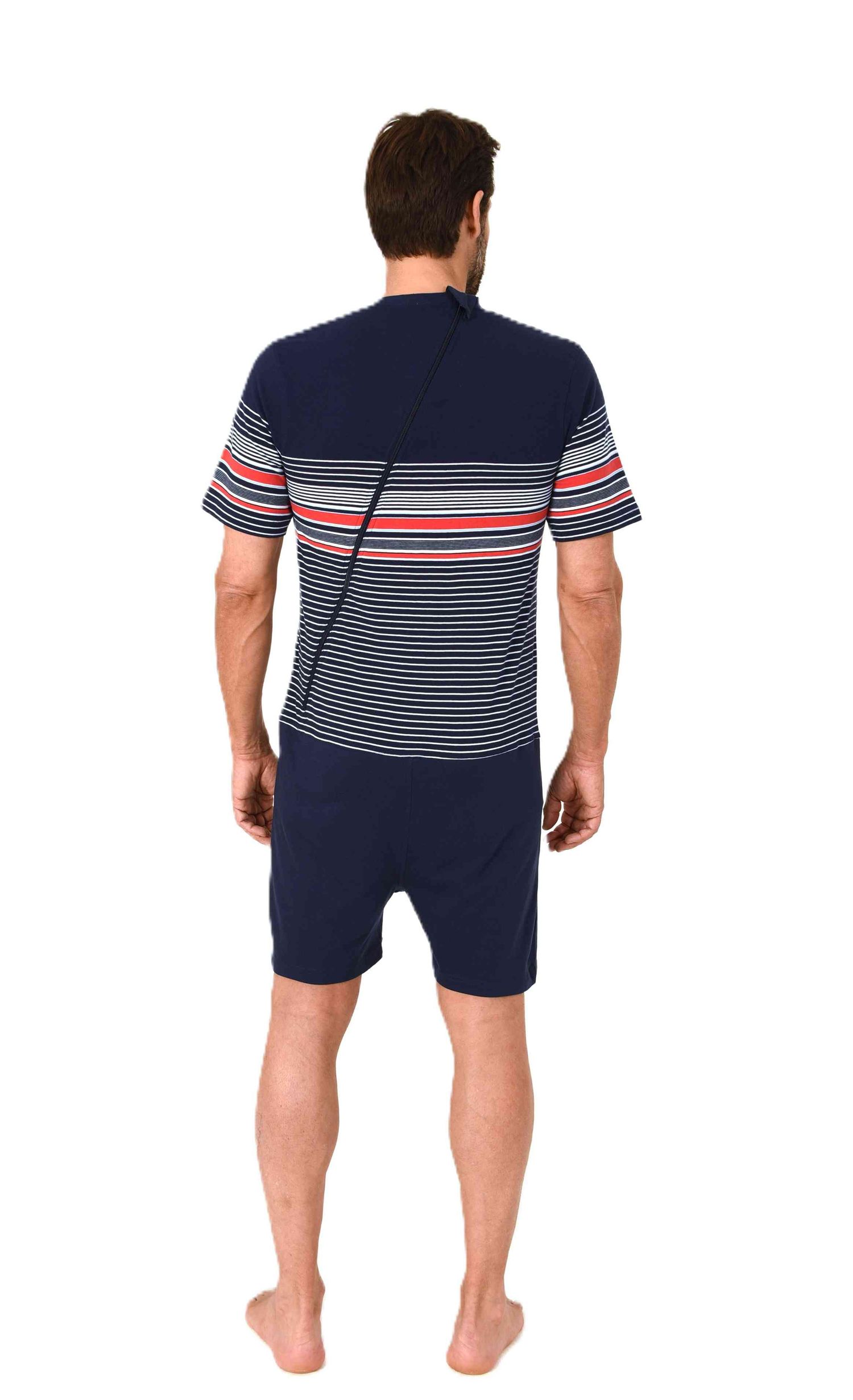 Herren Pflegeoverall kurzarm Einteiler Schlafanzug mit Reissverschluss am Rücken und Bein