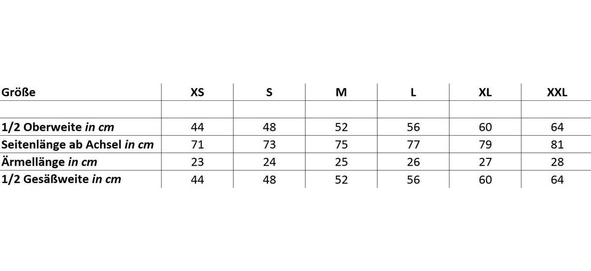 - PASSFORM: Overall ist etwas weiter geschnitten, im Zweifel lieber eine Grösse kleiner bestellen
