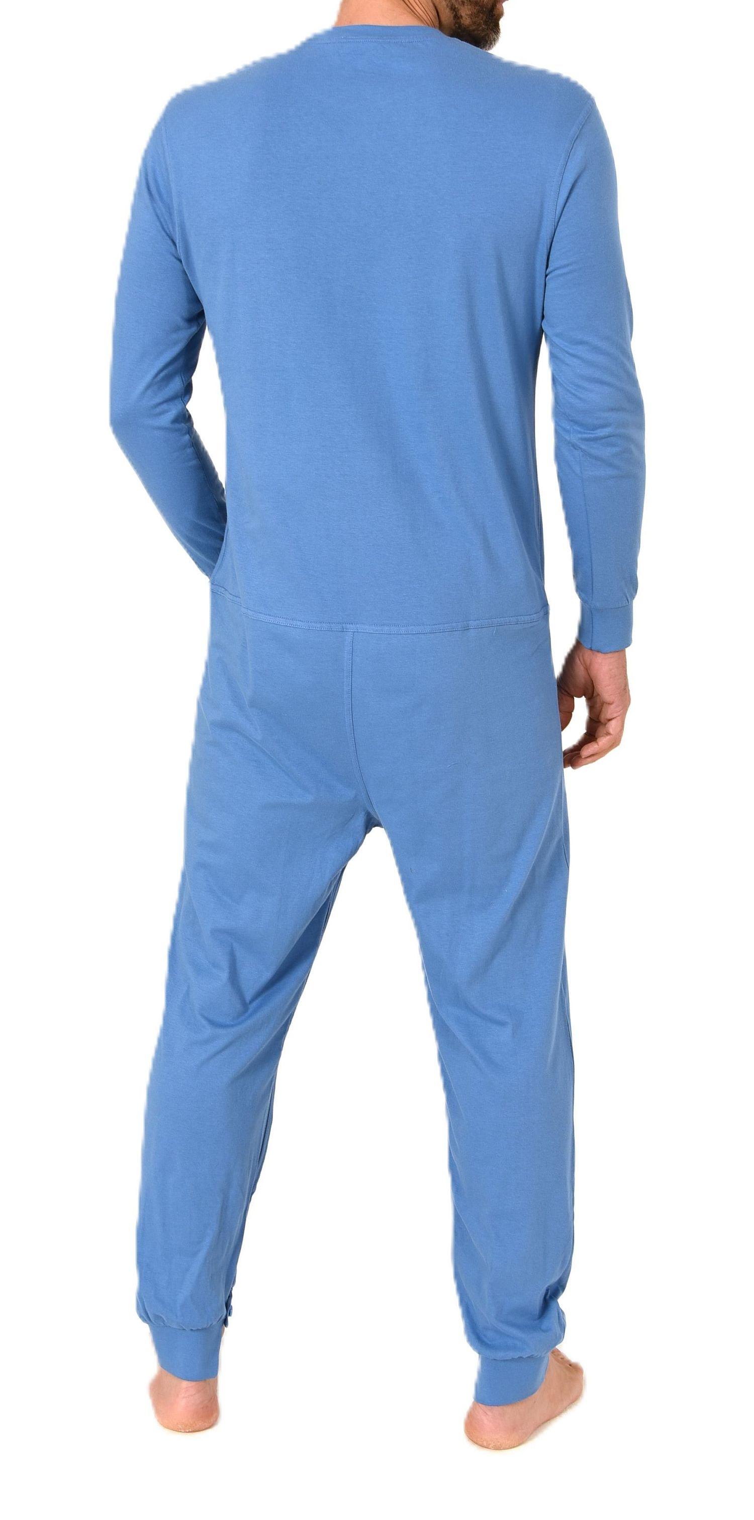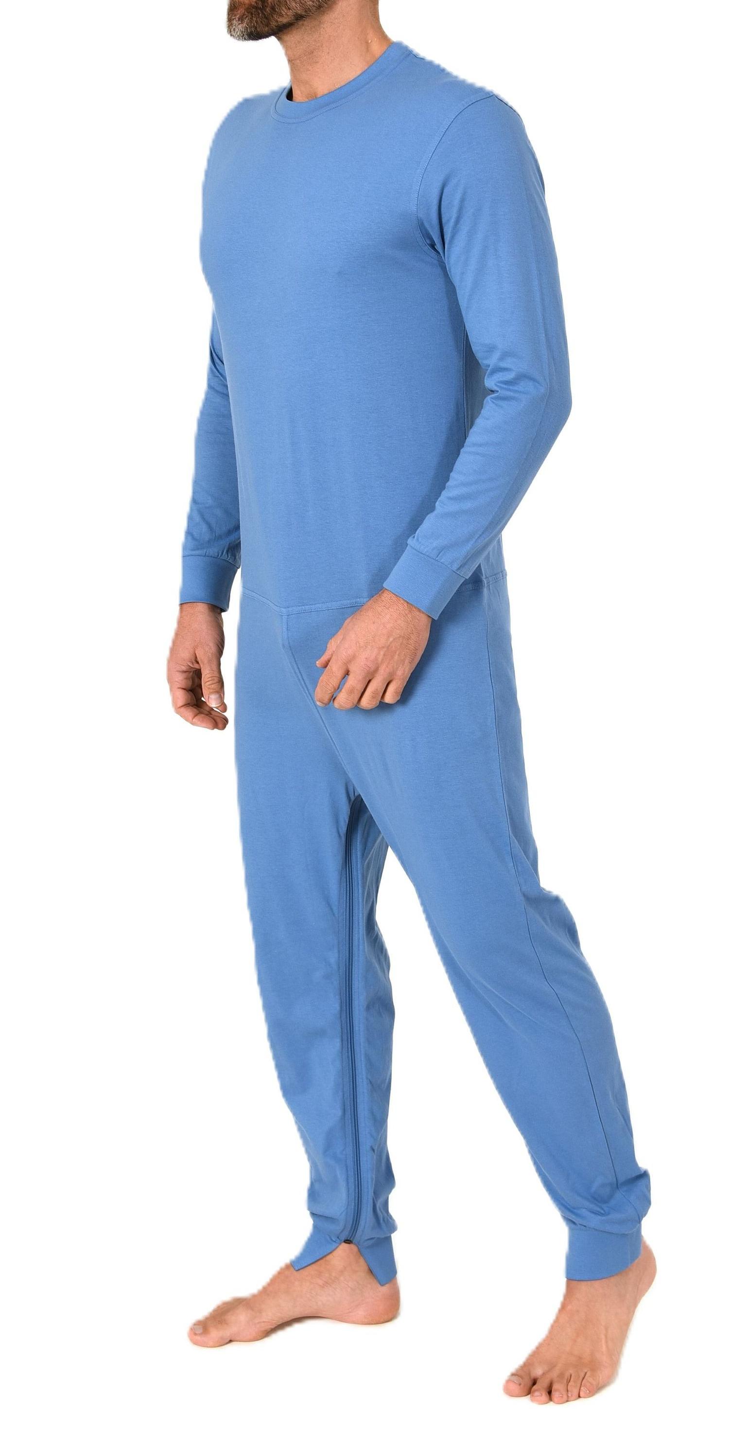 Herren Pflegeoverall langarm Einteiler Schlafanzug mit Reißverschluss am Bein