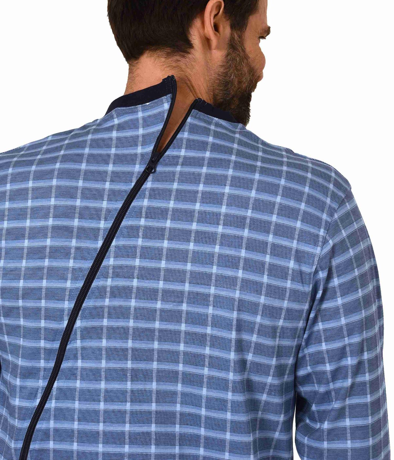 Herren Pflegeoverall langarm Einteiler Schlafanzug mit Reissverschluss am Rücken und Bein