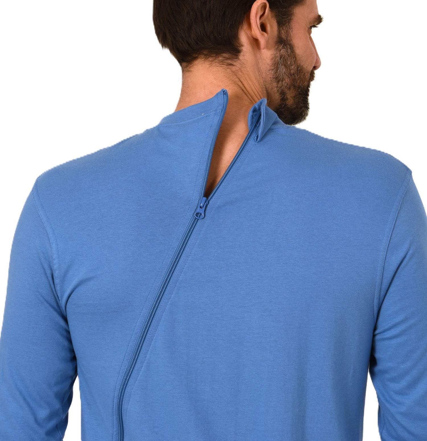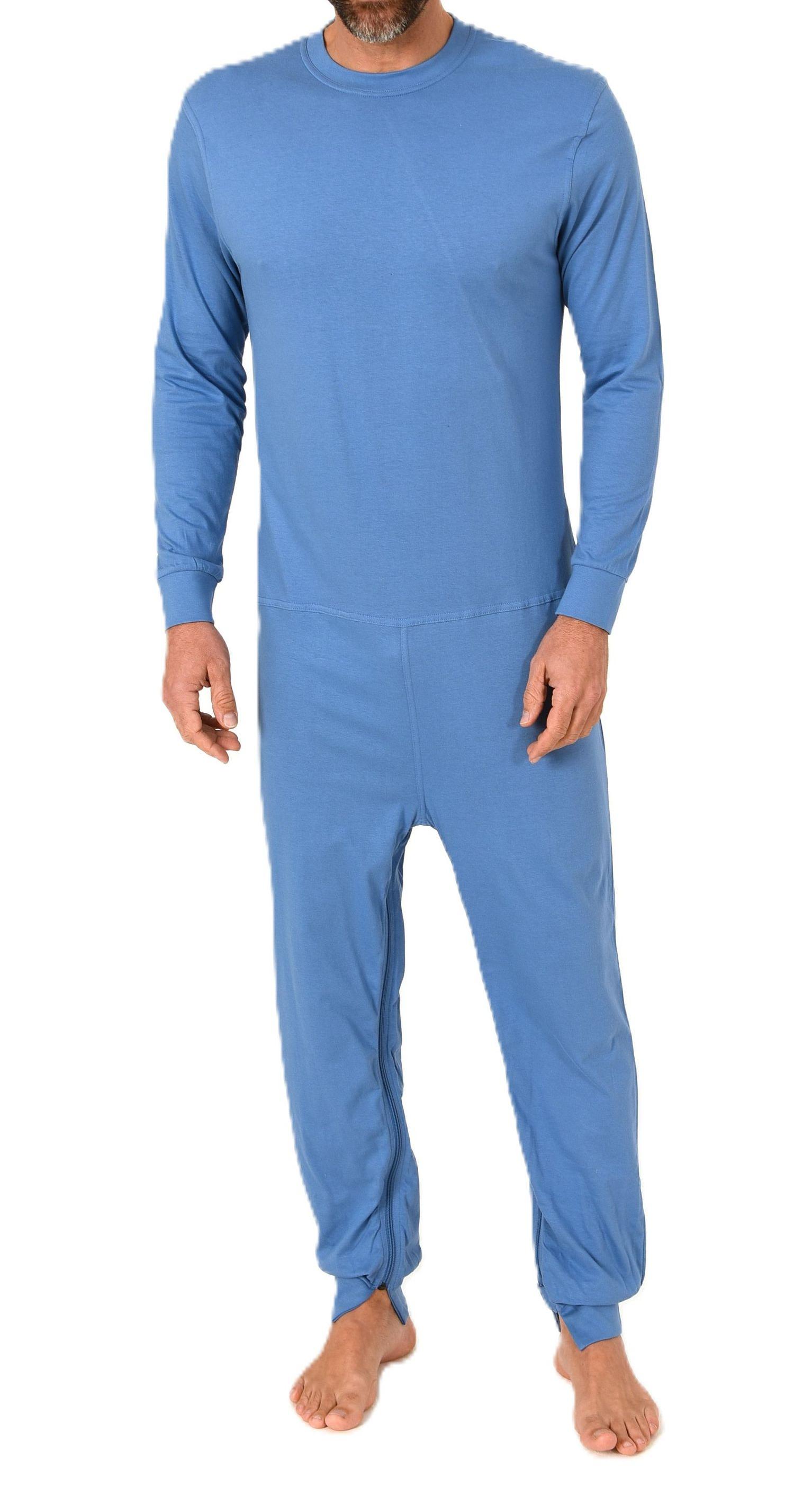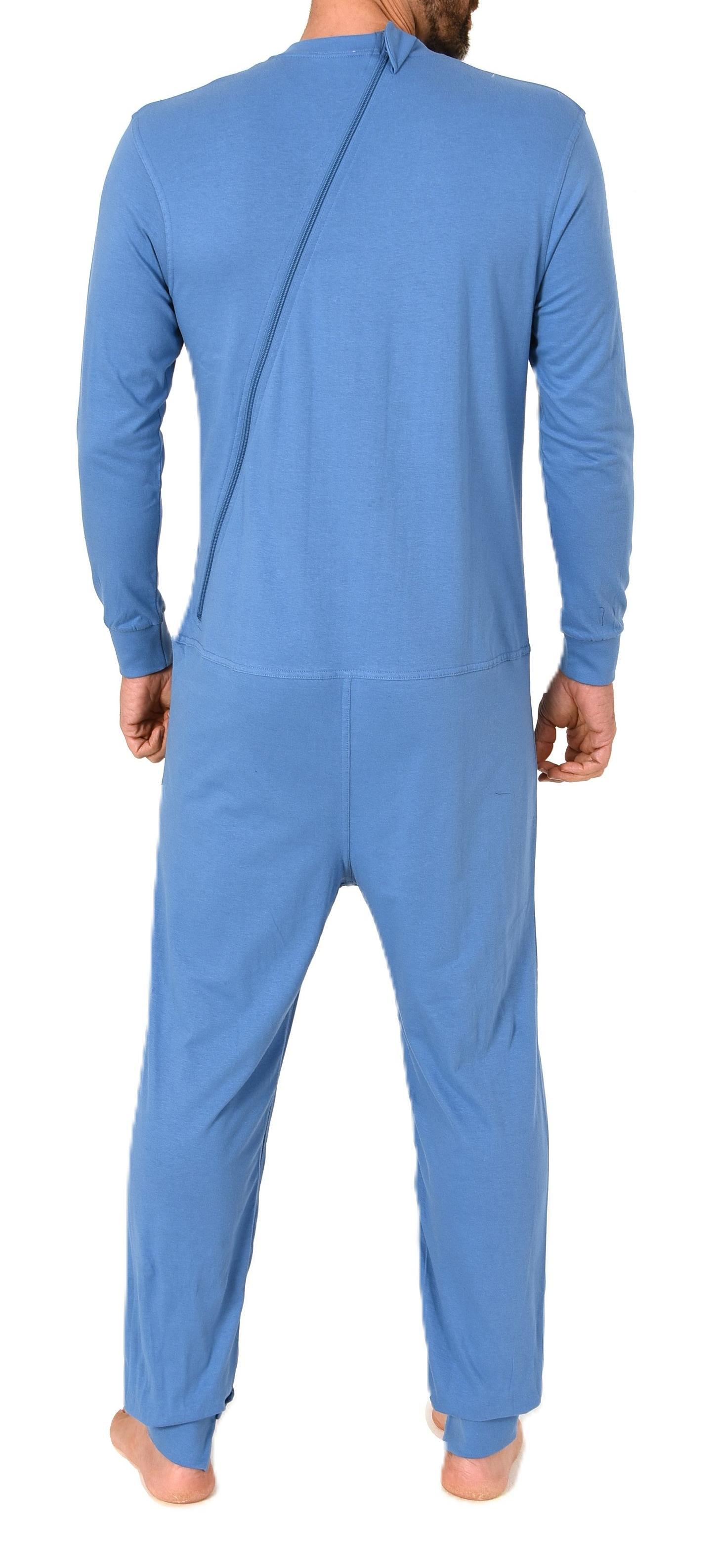 Herren Pflegeoverall langarm Einteiler Schlafanzug mit Reissverschluss am Rücken und Bein