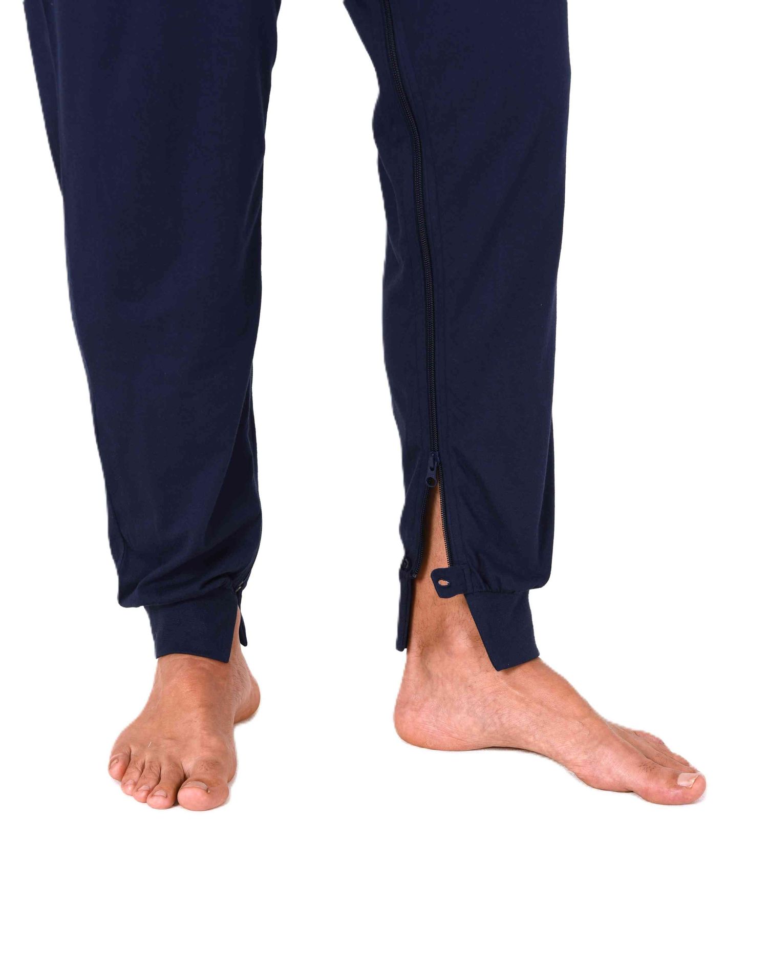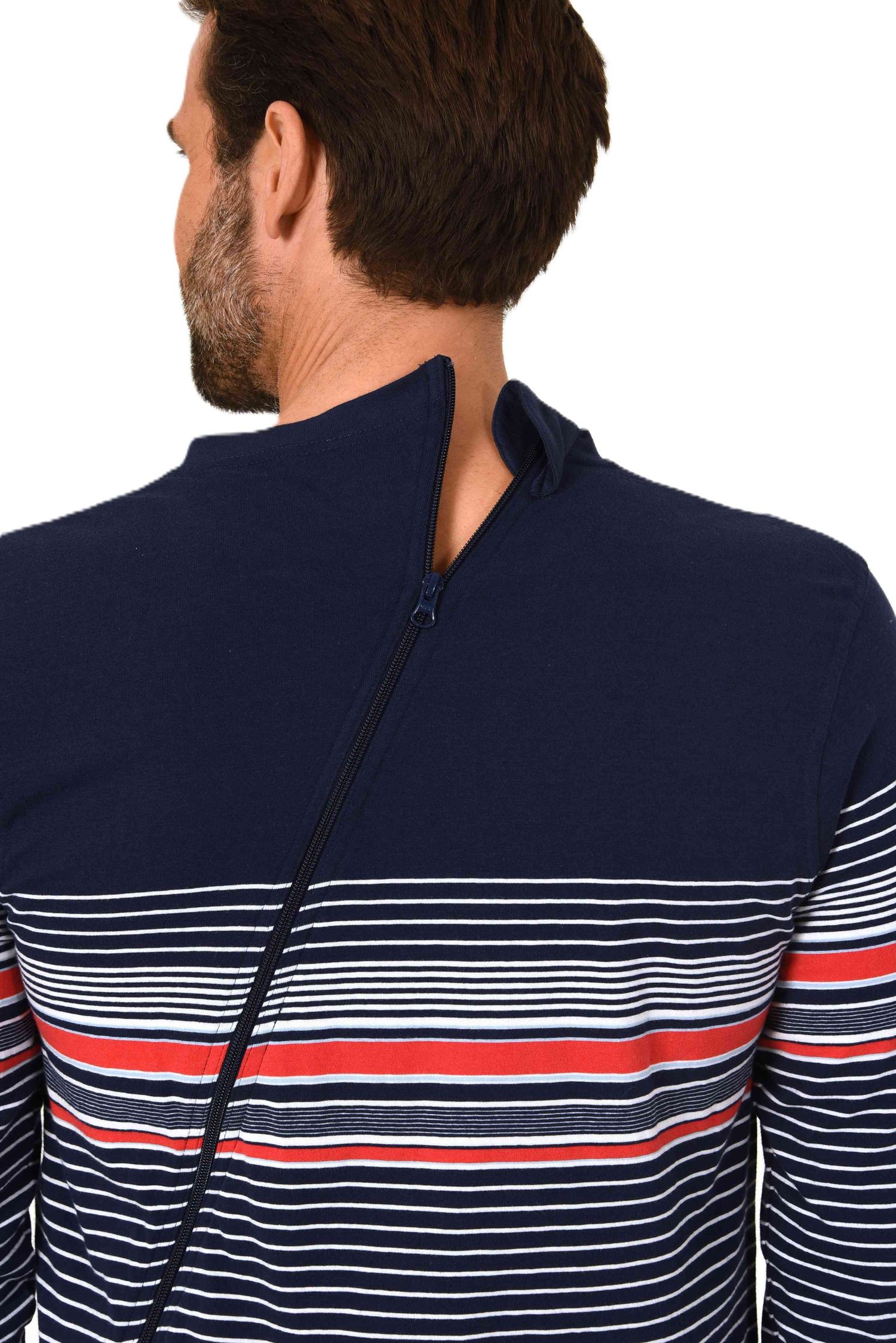 Herren Pflegeoverall langarm Einteiler Schlafanzug mit Reissverschluss am Rücken und Bein