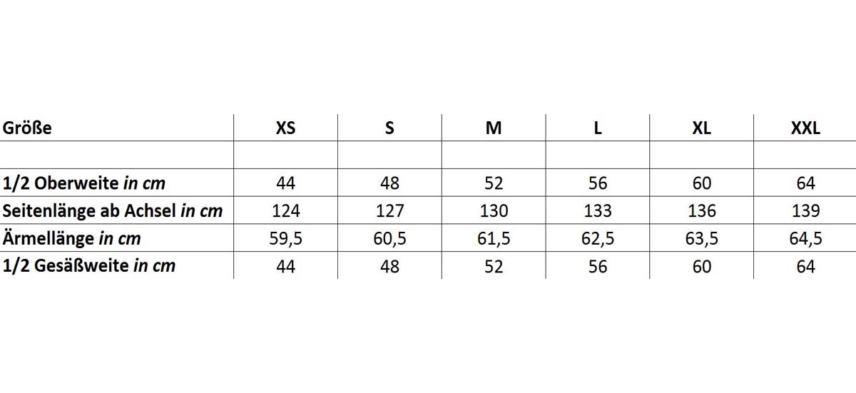 - PASSFORM: Overall ist etwas weiter geschnitten, im Zweifel lieber eine Grösse kleiner bestellen
